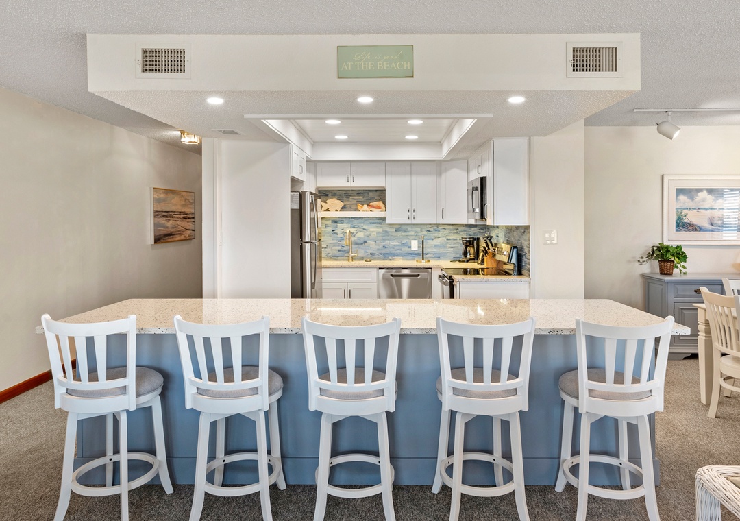 Heron Cove 204S was beautifully appointed throughout, and the new wall-to-wall carpeting was a nice touch. Owner might consider rearranging the living room furniture and adding another couch to afford more seating around the television on rainy days. A chaise lounge on the beachfront deck would be nice. Other than the A/C being too strong in the master bedroom and much too weak in the living room (we called about this, and a Freon shot didn`t seem to resolve the issue), this Unit was perfect for us! Thanks for allowing us to share it with you!- Reviewed On: 7/11/2023