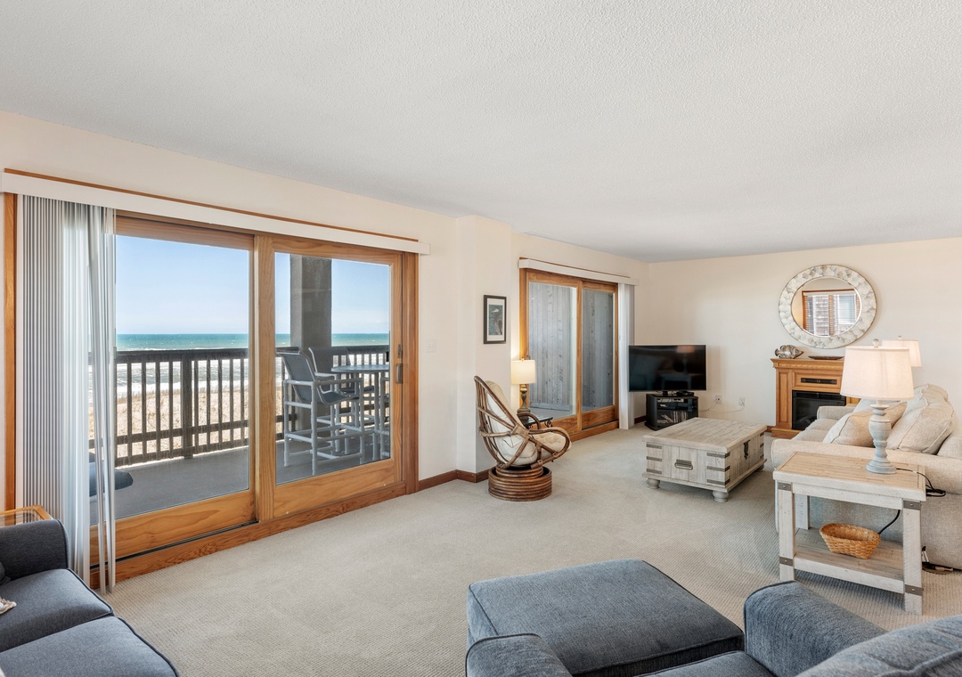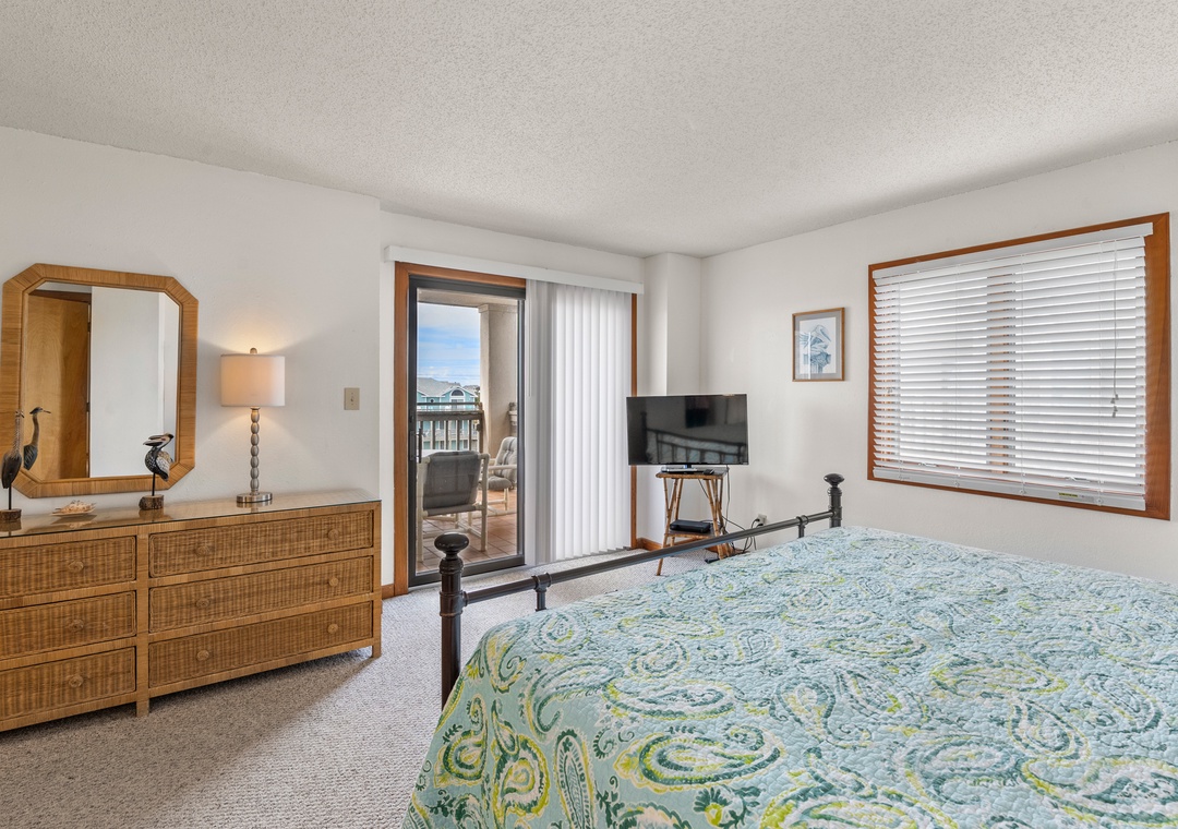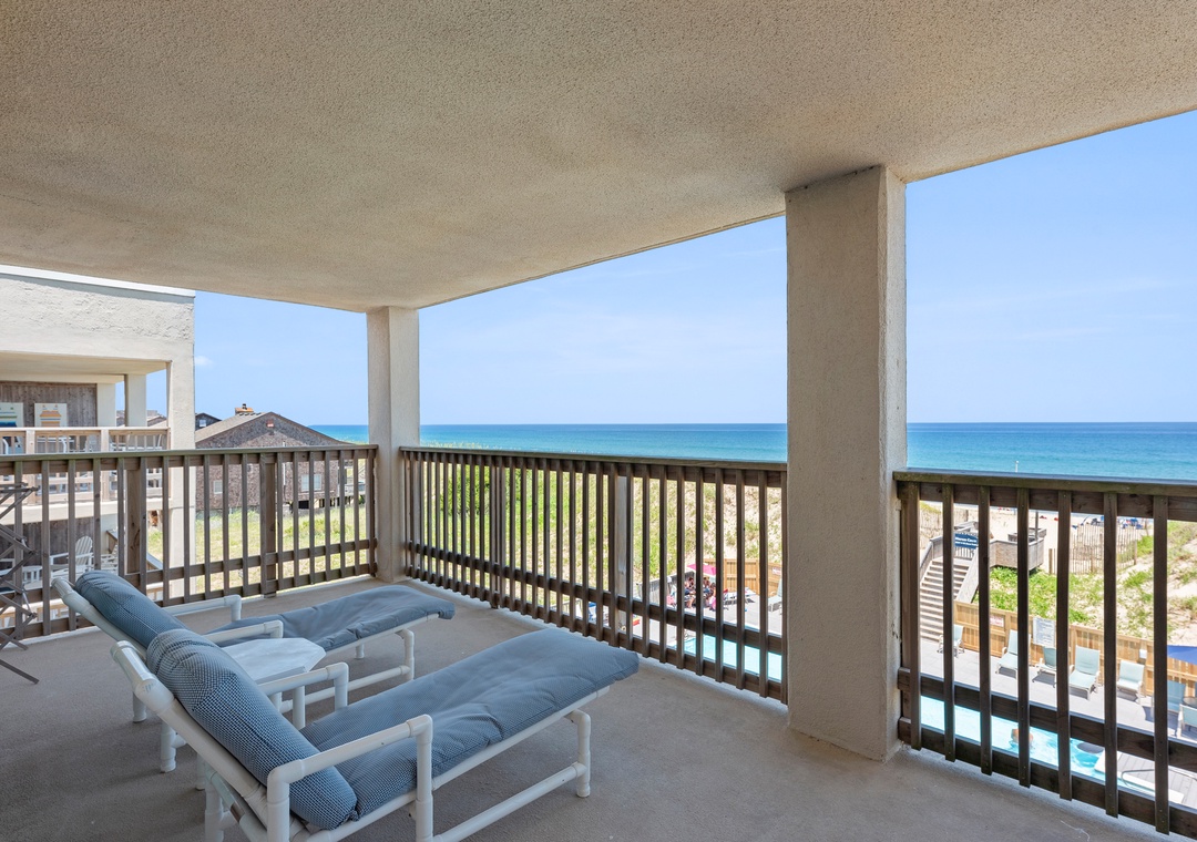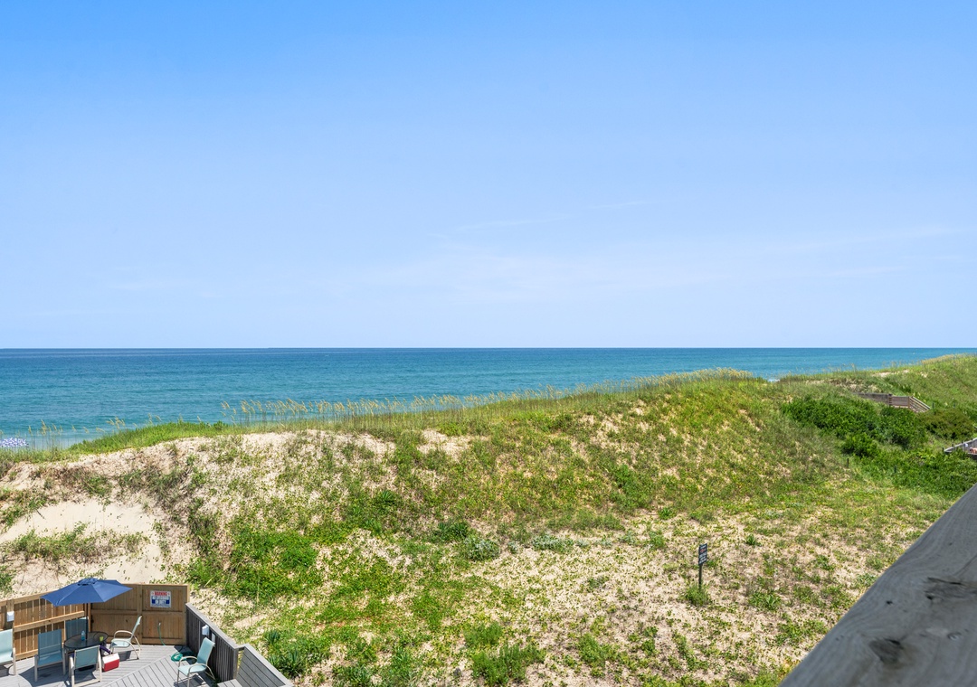 This spacious and comfortably furnished 3rd-floor end unit offers outstanding ocean views and breezes from each room. The master suite boasts a deck with a spectacular view of sunsets over Roanoke Sound, a whirlpool-shower and a TV for ultimate privacy!