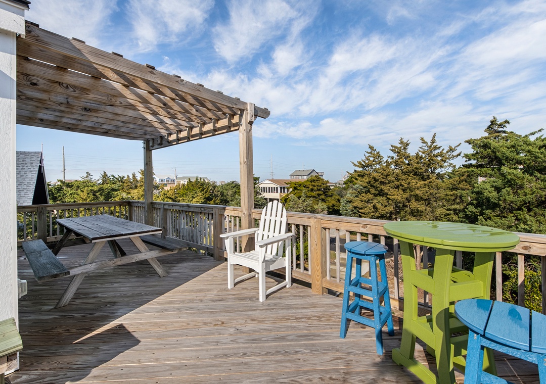 New to the Village Realty program for 2025! Make your way to Crab Walk, a well-maintained oceanside home in laid-back Avon. Crab Walk is situated in the sought-after Oceanfront Estates community, where you can take a stroll or bike ride to the beach access at the end of the street. After a fun-filled day of sun, sand and waves, come home and unwind in the comfortably furnished, open-concept great room or get dinner started in the fully stocked kitchen. The living area leads out to an expansive sun deck with plenty of outdoor seating and a picnic table. All three bedrooms are conveniently located together on the mid-level. Bed and bath linens are always included at no extra charge, and the beds will be made with fresh sheets and pillowcases prior to your arrival.