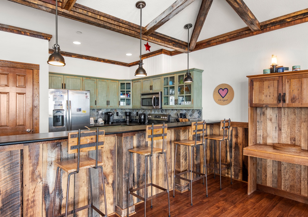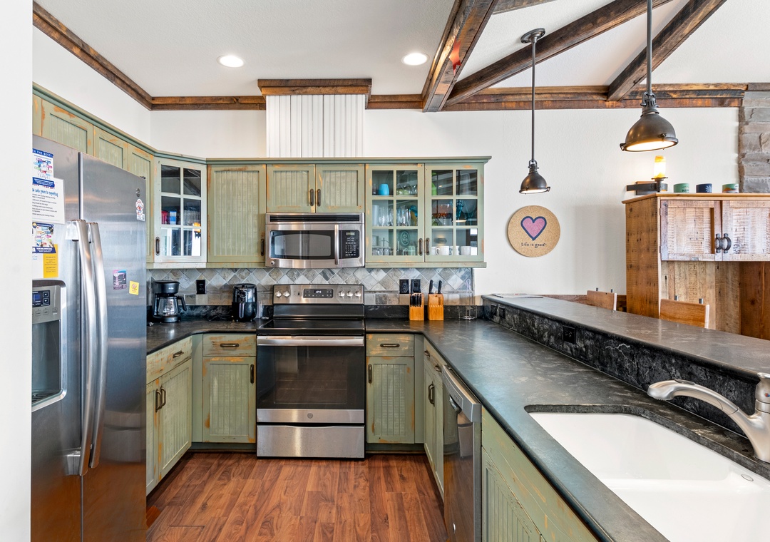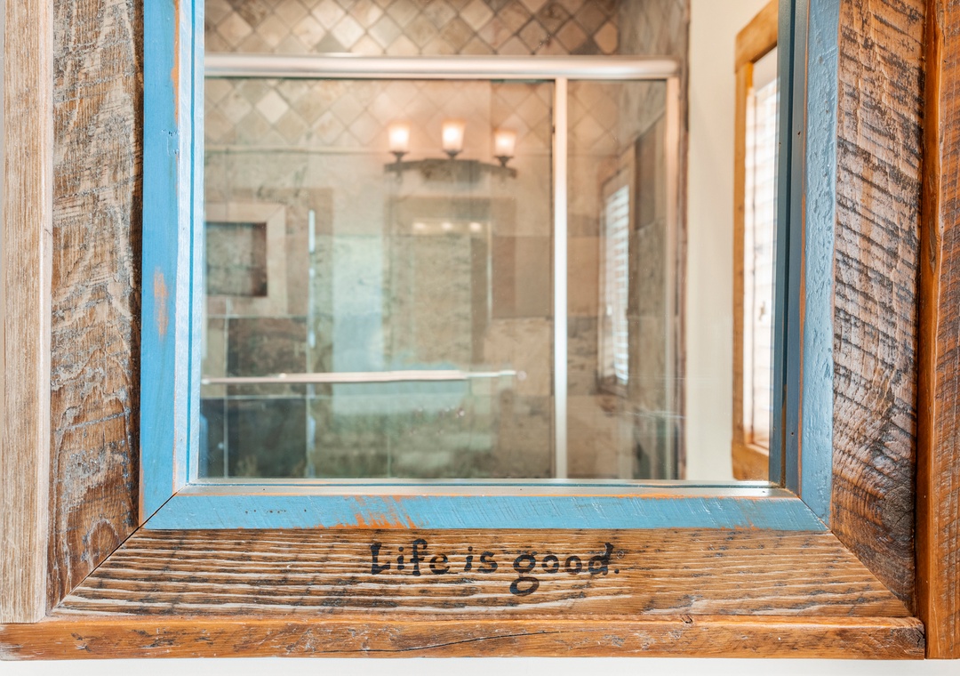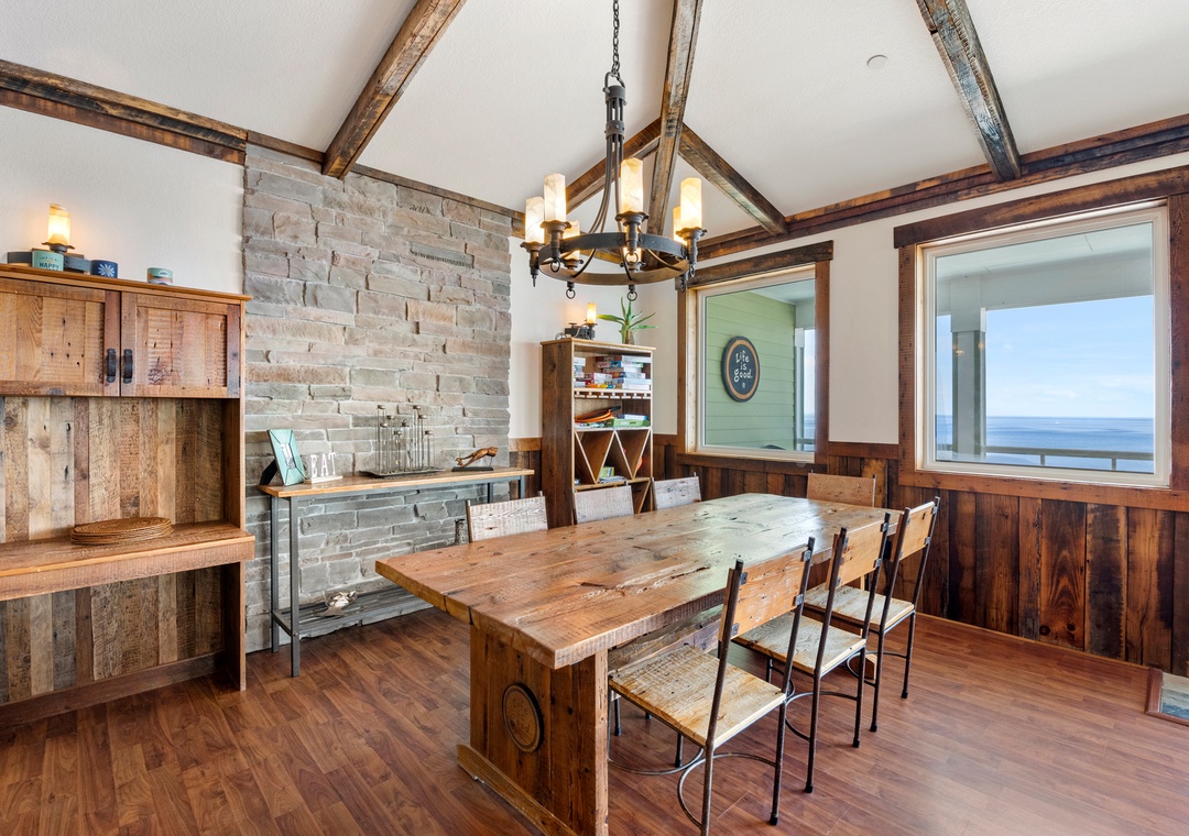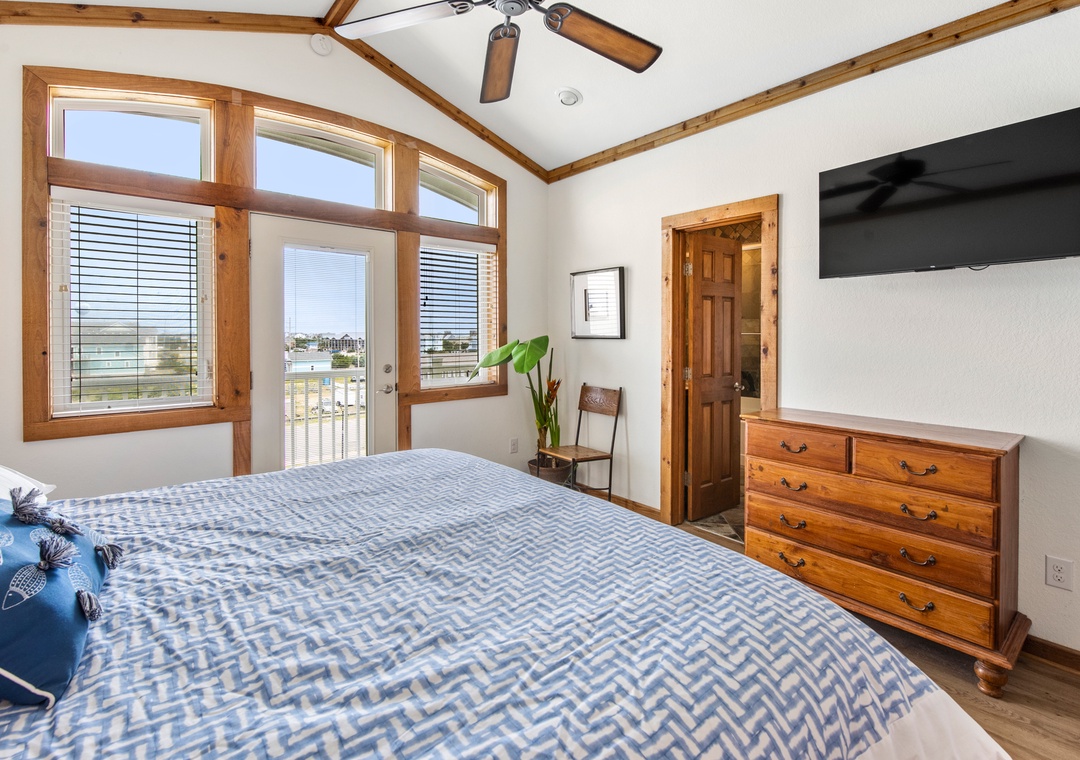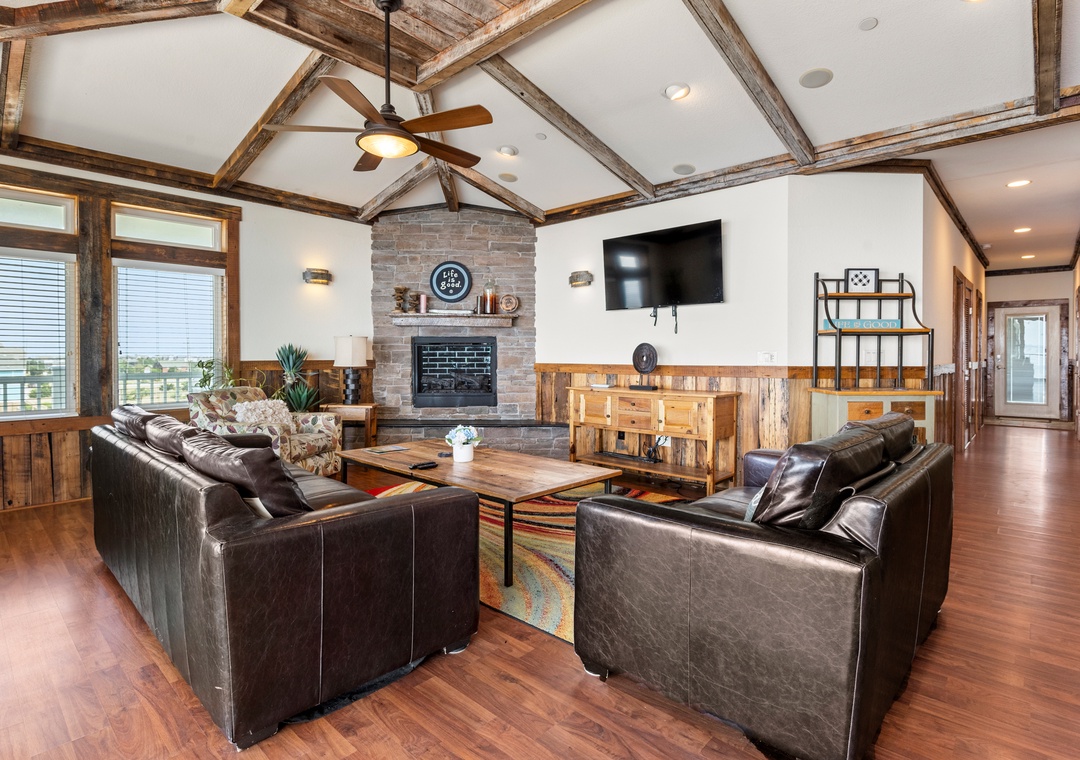 For your next Outer Banks vacation, embrace the "Life is Good" mentality and find out why water enthusiasts from all over the world escape to Rodanthe. This penthouse condo is a corner unit, offering more privacy and panoramic sound views. Life Is Good was thoughtfully furnished by Bert and John Jacobs, founders of the popular lifestyle brand Life Is Good. Exquisite finishes and high-end details create an atmosphere of coastal luxury. Wood laminate flooring flows throughout the entire condo, and the soaring vaulted ceilings boast exposed beams that were milled from a 200-year-old barn in Asheville, North Carolina. An open-concept layout in the great room makes the most of the fabulous views and opens up onto a private waterfront terrace with hot tub. It's the perfect place to end the day with a drink in hand while watching the sunset. Back inside, get dinner started in the gourmet kitchen with stainless steel appliance and gorgeous soapstone countertops.