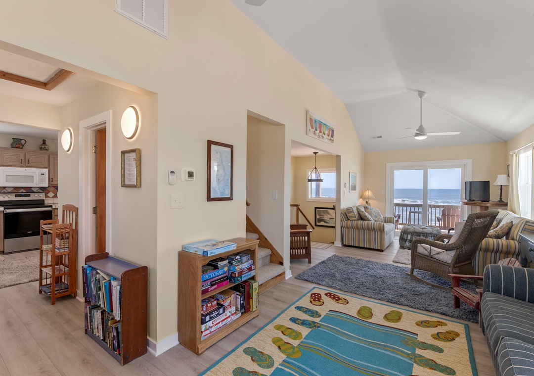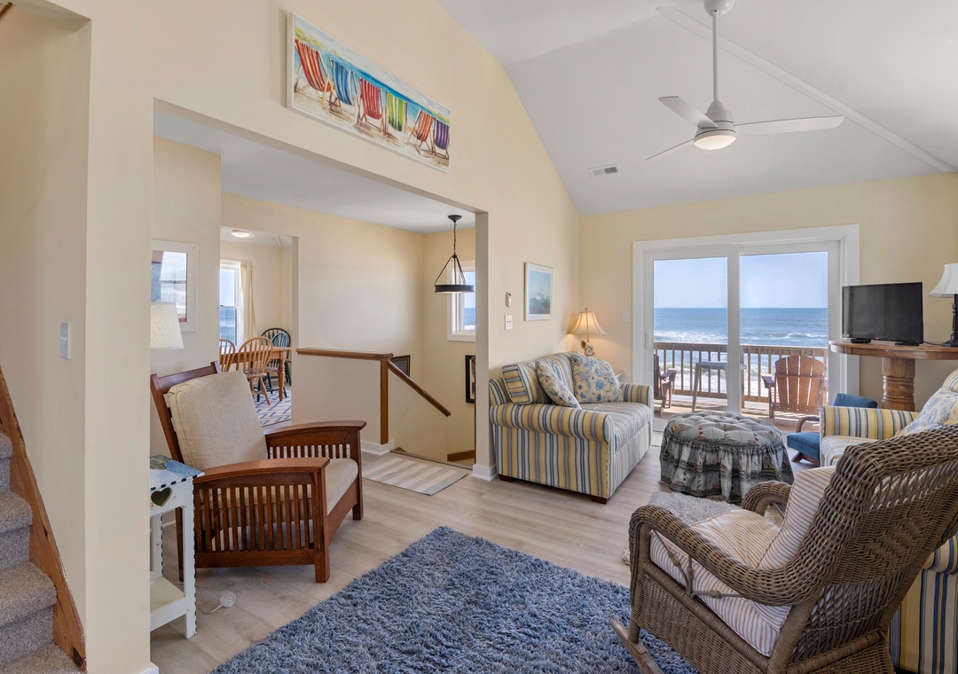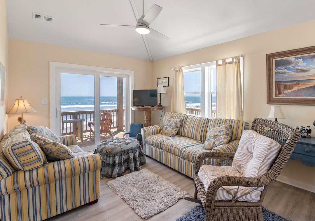 Everlasting Moon is a charming home situated right on the ocean for incredible views and direct access to the beach. Renovated inside and out, this classic cottage has been transformed into an updated coastal haven. The main living area is located on the top level so everyone can enjoy the spectacular views of the Atlantic. It leads out to an oceanfront deck overlooking the pristine dune line of the Cape Hatteras National Seashore. Head up to the loft and the rooftop deck for an an even better view! All four bedrooms are located together on the mid-level, and the two queen rooms provide deck access for waking up to the sunrise. Bed and bath linens are always included at no extra charge, and the beds will be made with fresh sheets and pillowcases prior to your arrival. Everlasting Moon is pet-friendly, so you won't have to leave your furry family members behind.
