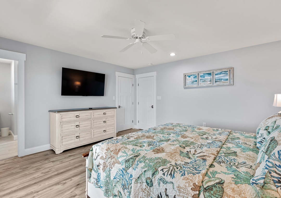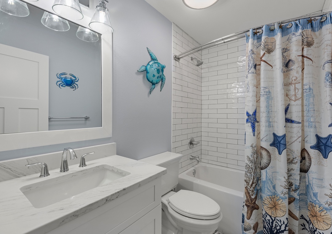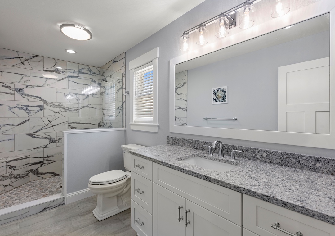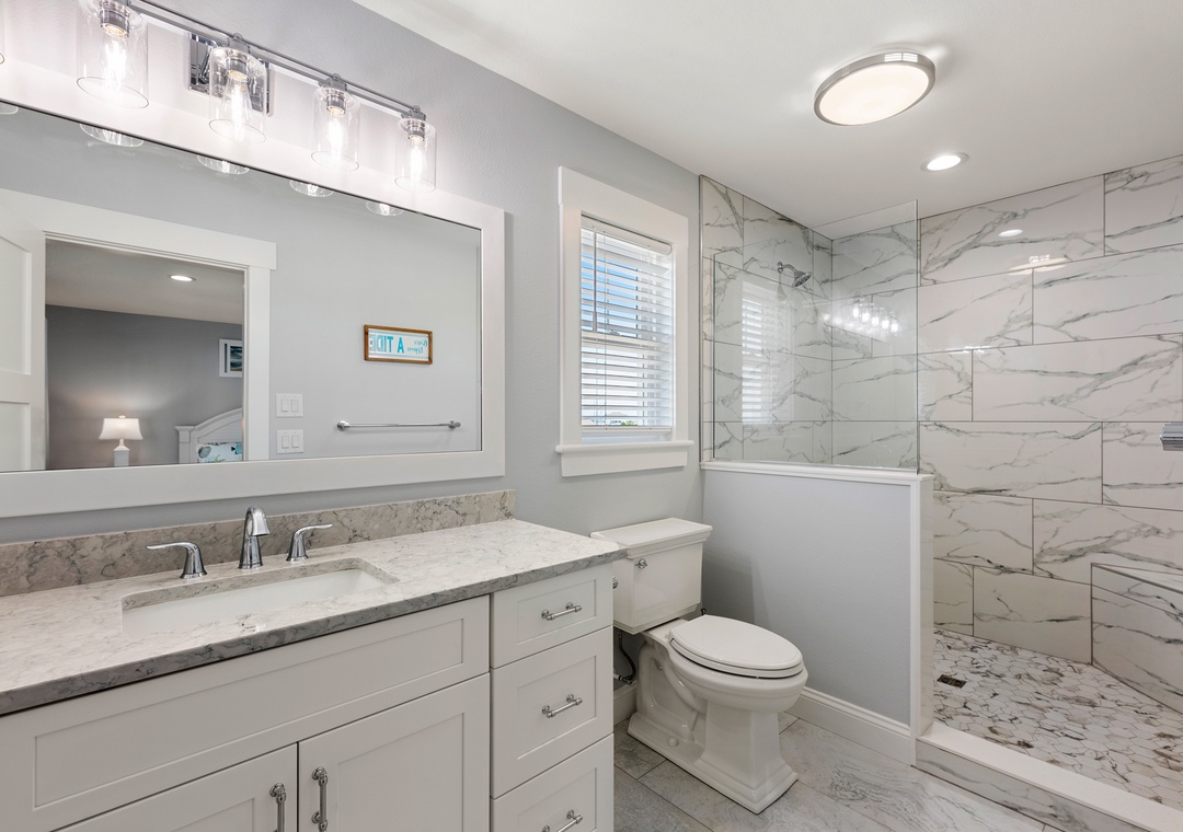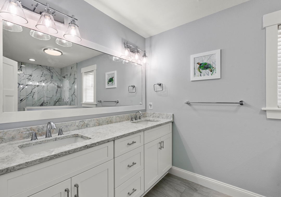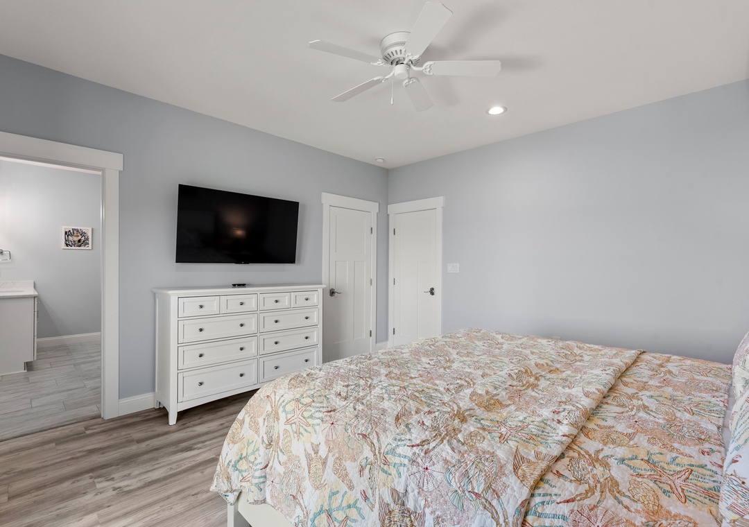 The good times continue downstairs in the rec space where you can show off your skills on the billiard table. For more laid-back entertainment, watch a movie or the big game in the theater room with recliner seating. A wet bar and full-size fridge in the rec room is perfect for grabbing a beverage while shooting pool or refilling your concessions during movie night. Livin' the Dream is equipped with an elevator, ideal for guests with mobility needs. Skip the stairs and use it to send luggage and groceries to the upper levels. Guests who need to stay caught up with work or school remotely can use the designated office on the third level. Outside, the fabulous soundfront backyard features a refreshing private pool, bubbly hot tub and plenty of space for lounging in the sun. The pool can be heated certain times of the year, perfect for Spring and Fall getaways. Parking won't be an issue, with three carports that provide covered parking for six vehicles, along with four additional parking spaces in the driveway.