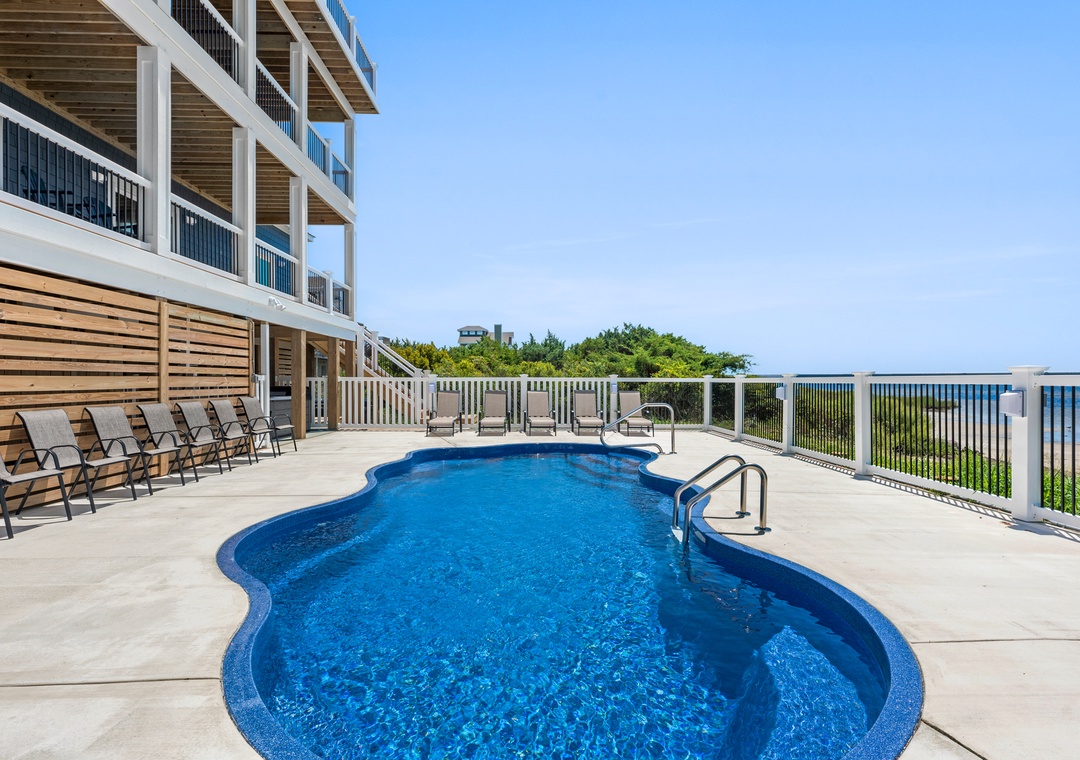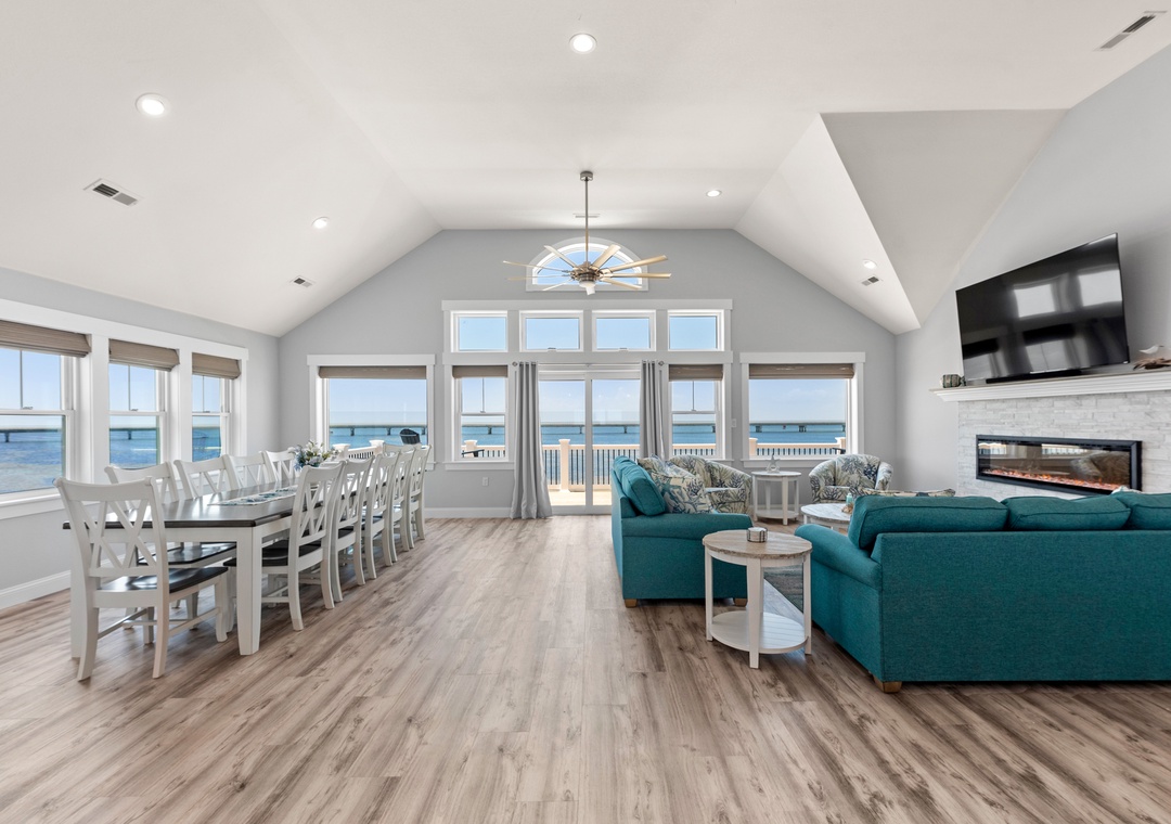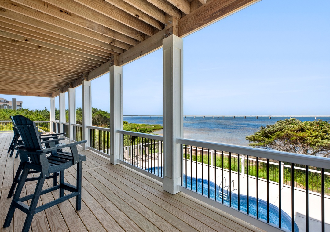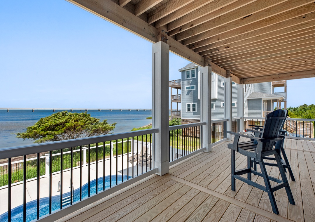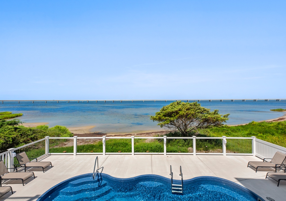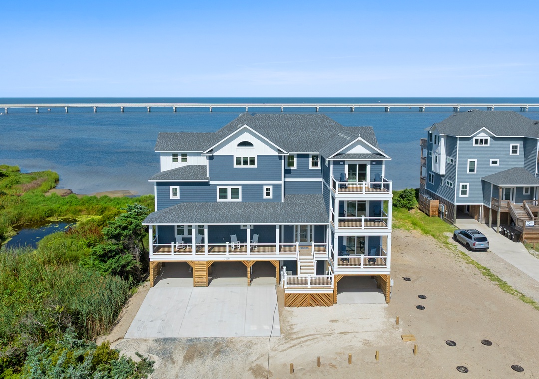 You'll truly be Livin' The Dream during your stay at this magnificent 10-bedroom waterfront home with private pool, hot tub, rec room and theater room. Livin' the Dream is situated on 3/4 of an acre, one of the largest soundfront lots in Rodanthe, and features a private beach and direct access to the water for kayaking, paddleboarding, fishing and crabbing. Enjoy the best of both worlds with a prime location that puts you right on the Pamlico Sound while still being less than 1,000 feet from the sparkling Atlantic Ocean. With over 6,100 square feet of living space, Livin' the Dream is perfect for multiple groups, extended families, reunions and retreats. All ten bedrooms include ensuite baths for plenty of privacy. Three levels of west-facing decks provide plenty of outdoor living space where you can take in the water views and breathtaking sunsets.