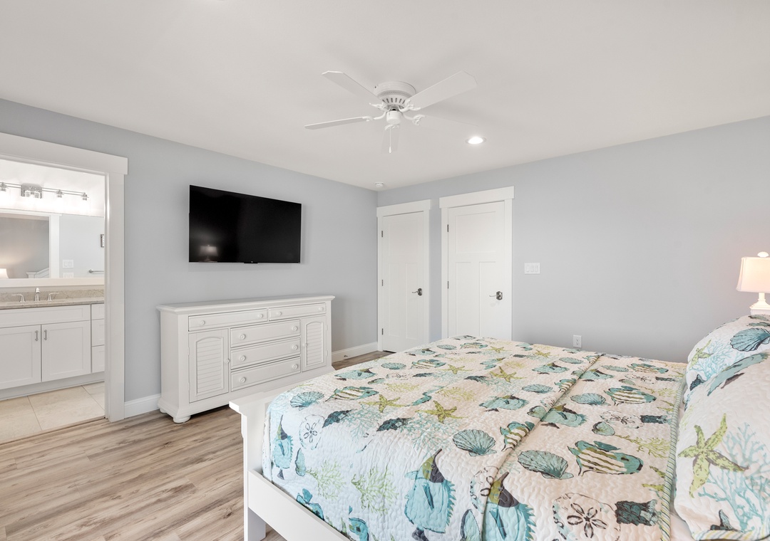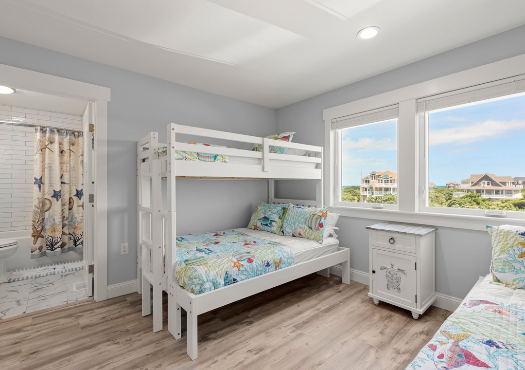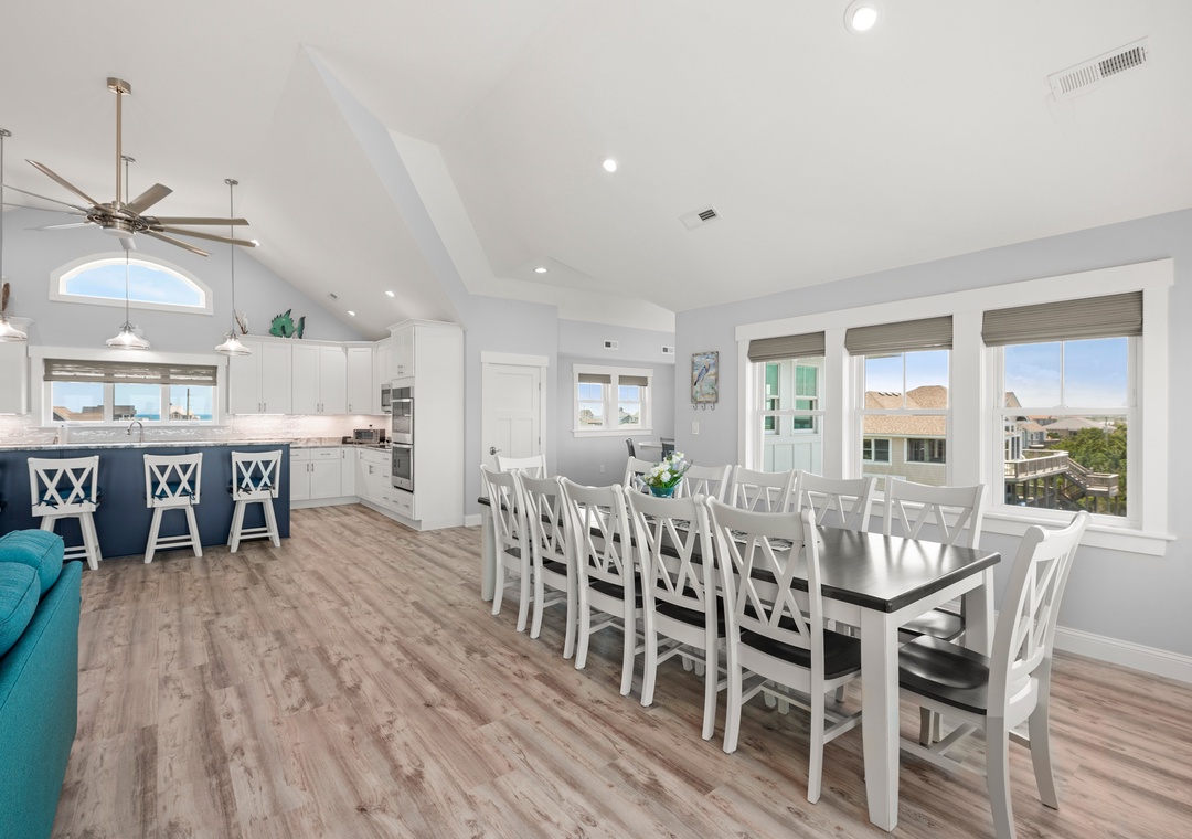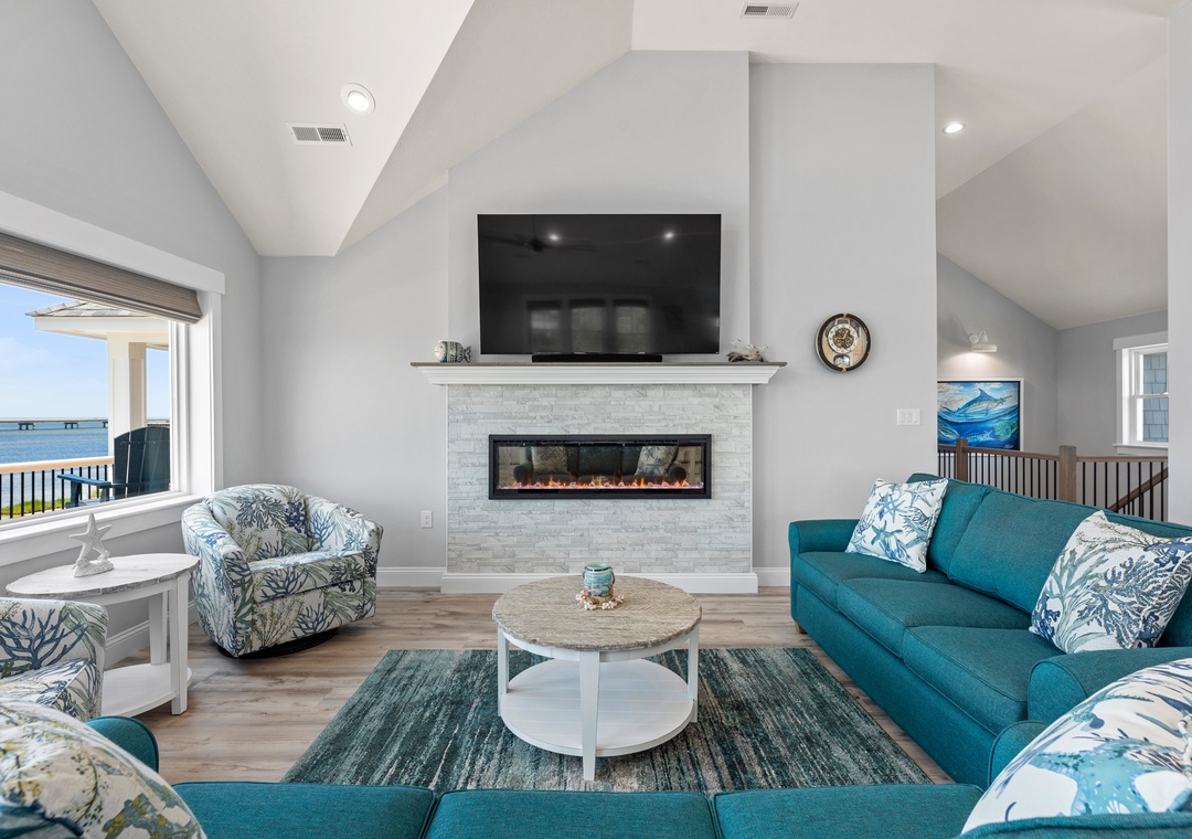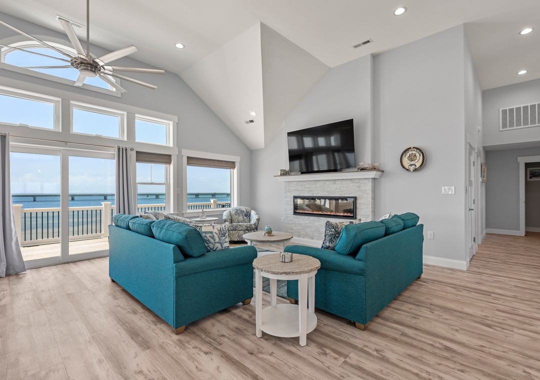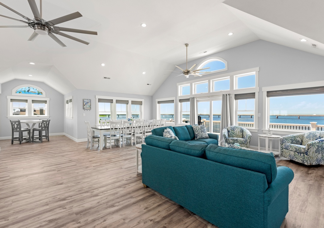 You'll truly be Livin' The Dream during your stay at this magnificent 10-bedroom waterfront home with private pool, hot tub, rec room and theater room. Livin' the Dream is situated on 3/4 of an acre, one of the largest soundfront lots in Rodanthe, and features a private beach and direct access to the water for kayaking, paddleboarding, fishing and crabbing. Enjoy the best of both worlds with a prime location that puts you right on the Pamlico Sound while still being less than 1,000 feet from the sparkling Atlantic Ocean. With over 6,100 square feet of living space, Livin' the Dream is perfect for multiple groups, extended families, reunions and retreats. All ten bedrooms include ensuite baths for plenty of privacy. Three levels of west-facing decks provide plenty of outdoor living space where you can take in the water views and breathtaking sunsets.