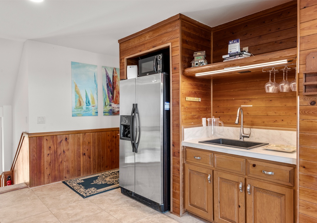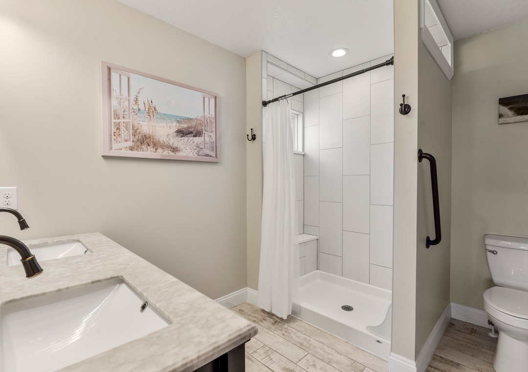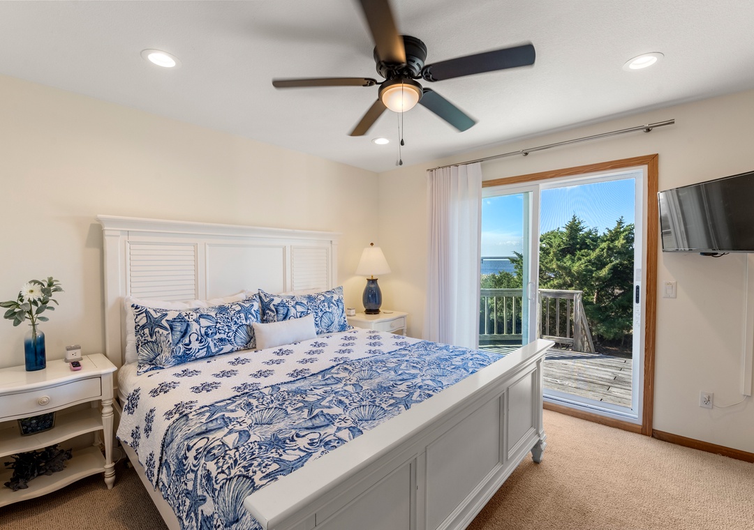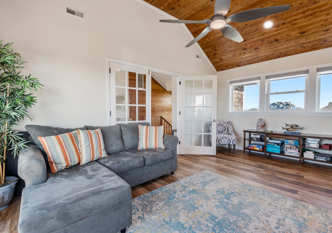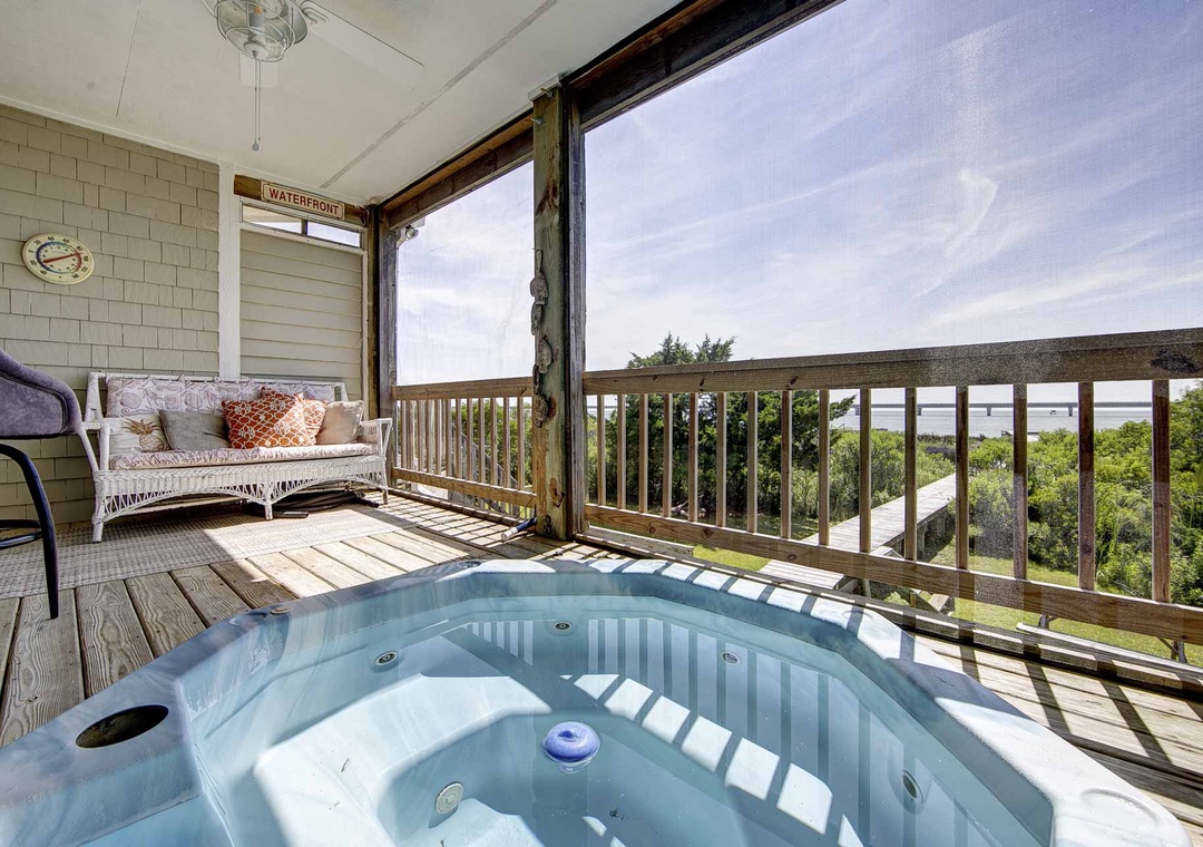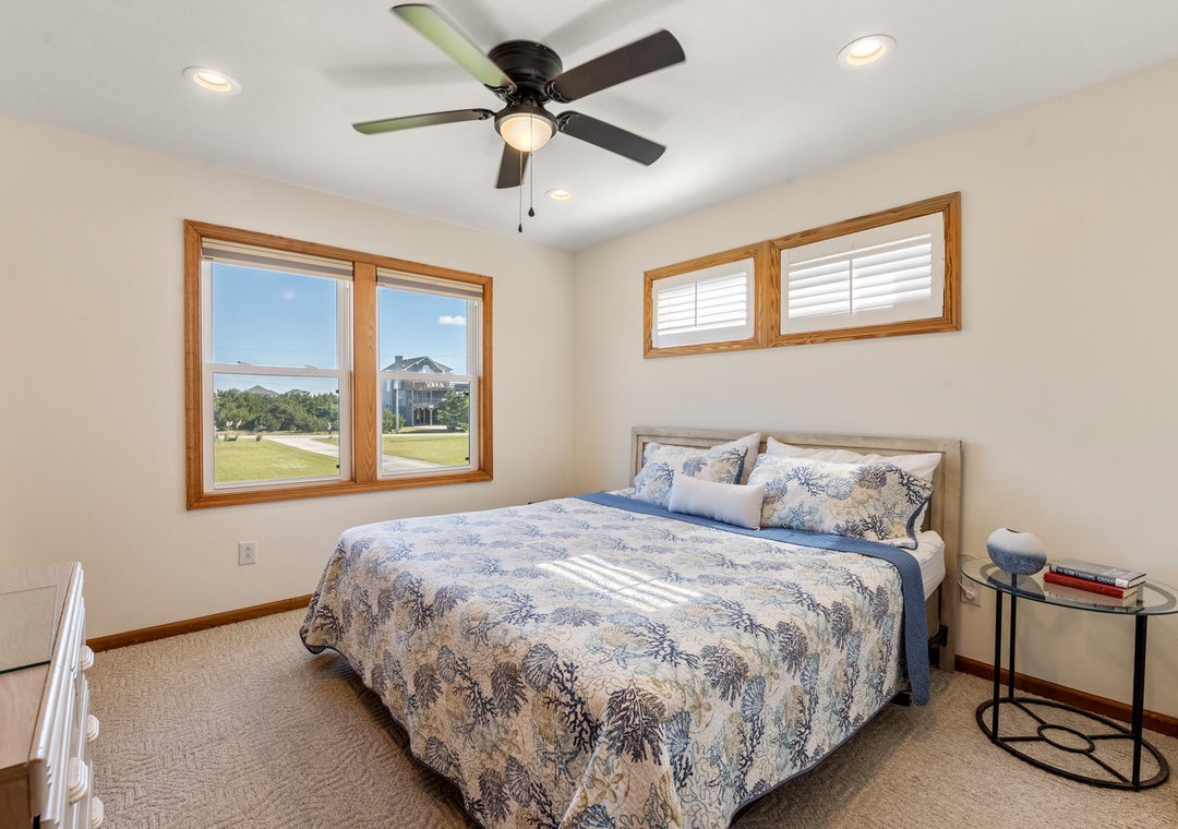 Your soundfront experience begins with your very own private pier, which includes a dock for launching craft into the Pamlico Sound. A grassy area in the backyard and covered storage space on the ground level offer plenty of room for watersports gear and beach toys. The ground level also includes an outdoor kitchen with stovetop, microwave, sink, gas grill and table with seating for effortless al fresco dining.