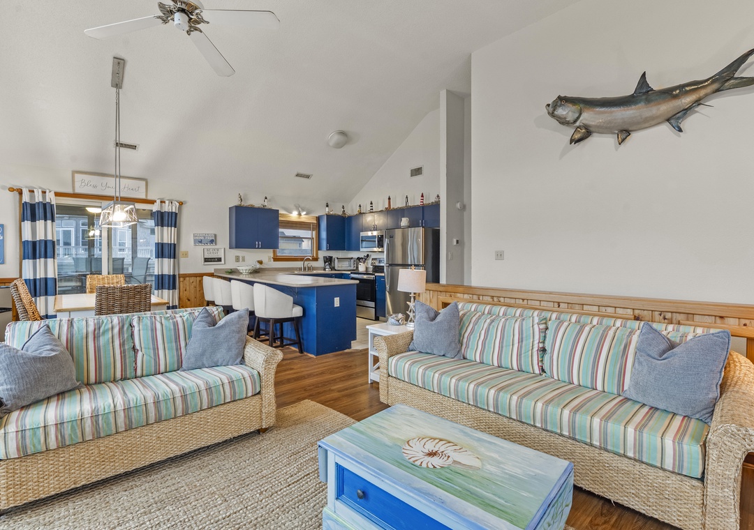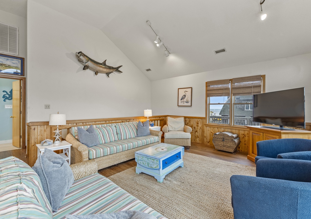 Your dreamy coastal escape awaits at this stunning four-bedroom semi-oceanfront gem nestled in the heart of Rodanthe. From the moment you step inside, you’ll be greeted by a cheerful bunk room featuring two twin bunks, perfect for kids or extra guests ready for beachside adventures.