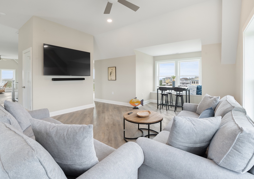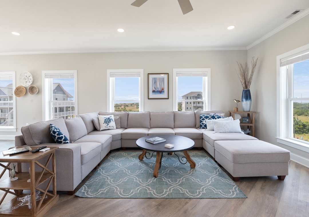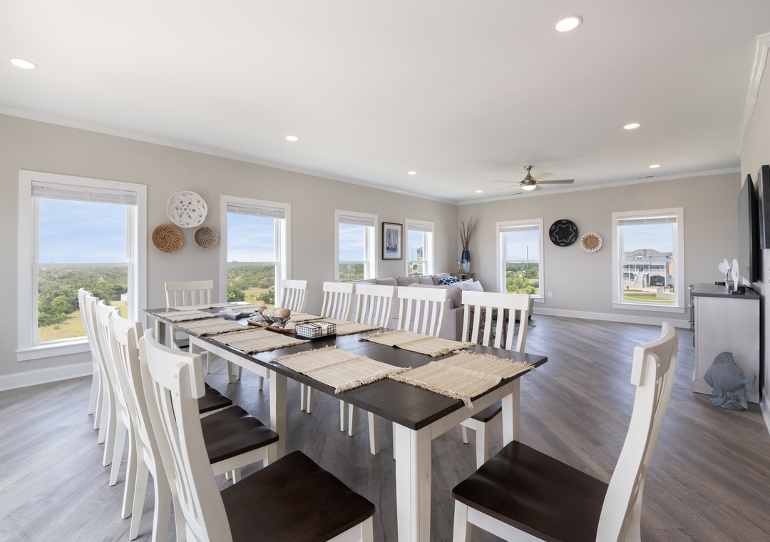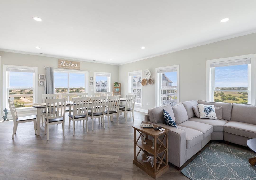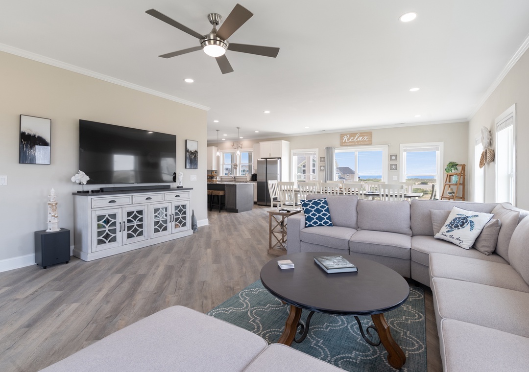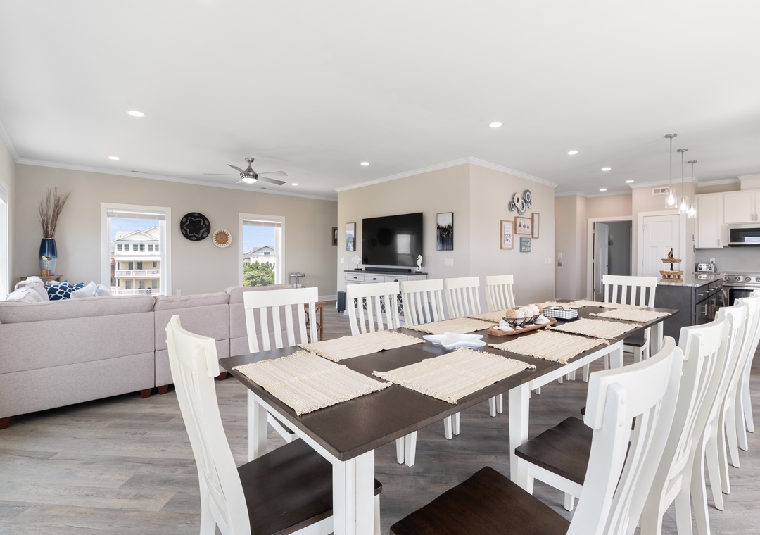 Inside, you'll have a whopping 6,400 square feet of living space - plenty of room for multiple or extended families to share. Eight bedrooms, each with ensuite baths, will give everyone in your group their own private retreat. When it's time to gather, choose from the main living area or massive rec room - there's certainly no shortage of opportunities to hang out and make memories. After a day at the beach or exploring Hatteras Island, come home and relax in the open-concept great room with panoramic views of the ocean. Meal prep can be a family affair in the brand new kitchen featuring stainless steel appliances, including a Thor range.