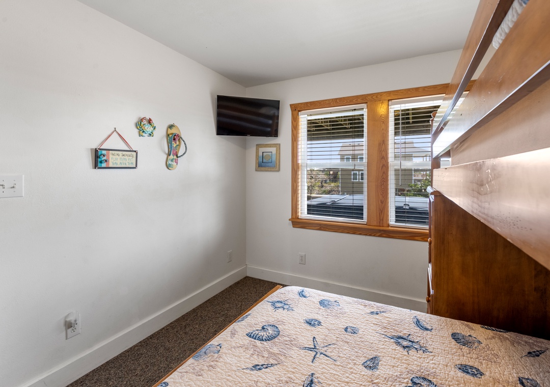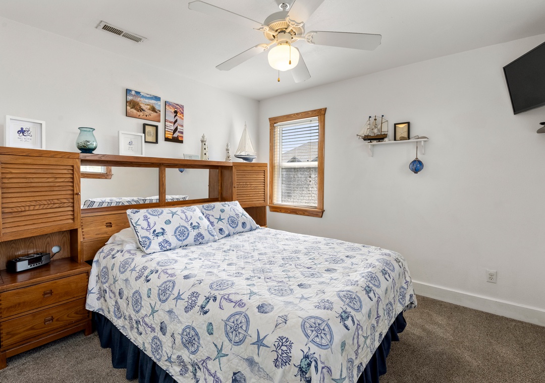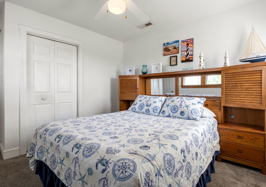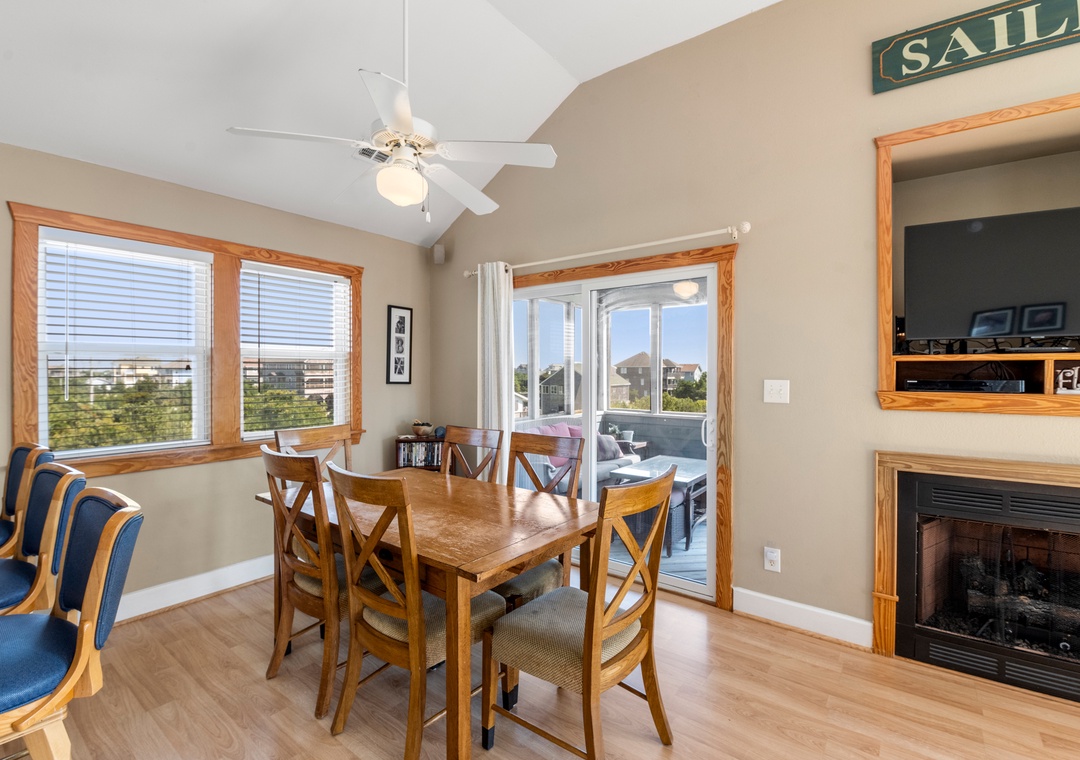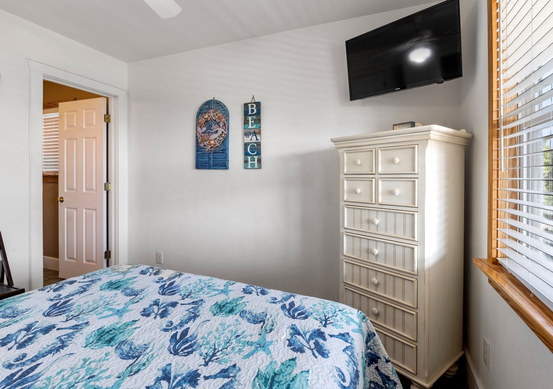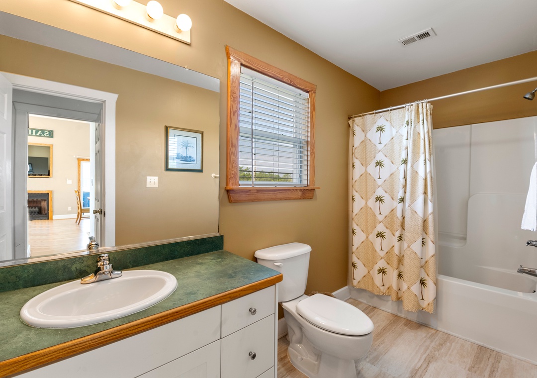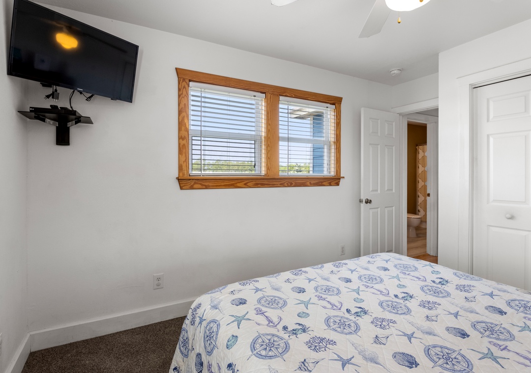Sea Breeze Blue features a reverse floor plan with an open-concept living, dining and kitchen area on the top level. Watch a family movie on the TV with surround sound or snuggle up in front of the gas fireplace on cool spring or autumn nights. In warmer weather, sip a glass of sweet tea on the screened porch while listening to the ocean waves. The great room leads directly out to an east-facing sun deck, perfect for watching the sunrise. This level also includes the primary bedroom where you'll wake up and start each exciting day of your vacation. Downstairs, you'll find the second queen ensuite with a jetted tub, along with two other bedrooms for comfortably accommodating family and friends. Bed and bath linens are always included at no extra charge, and the beds will be made with fresh sheets and pillowcases prior to your arrival.