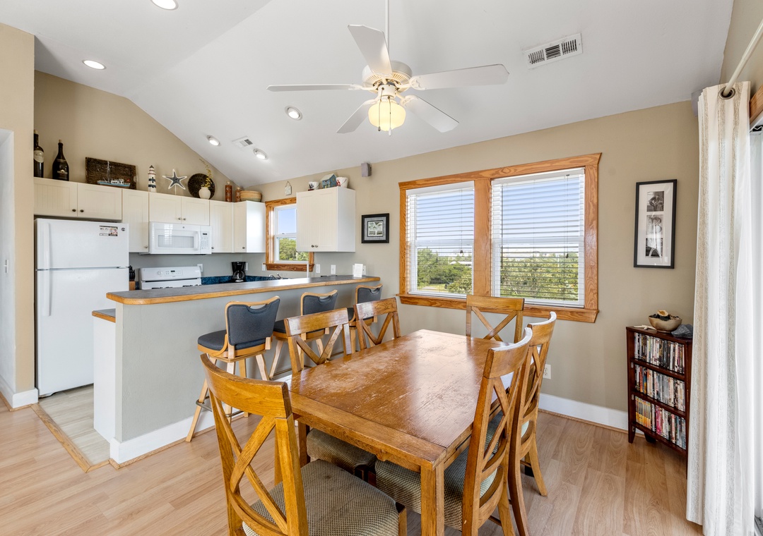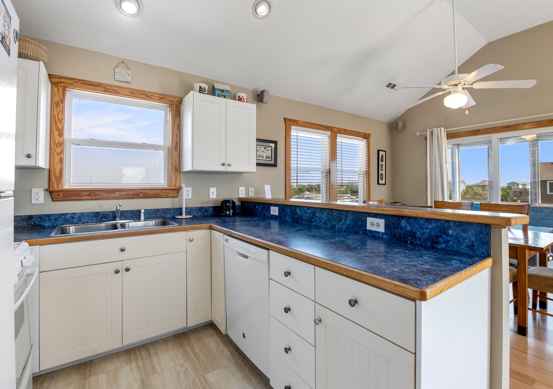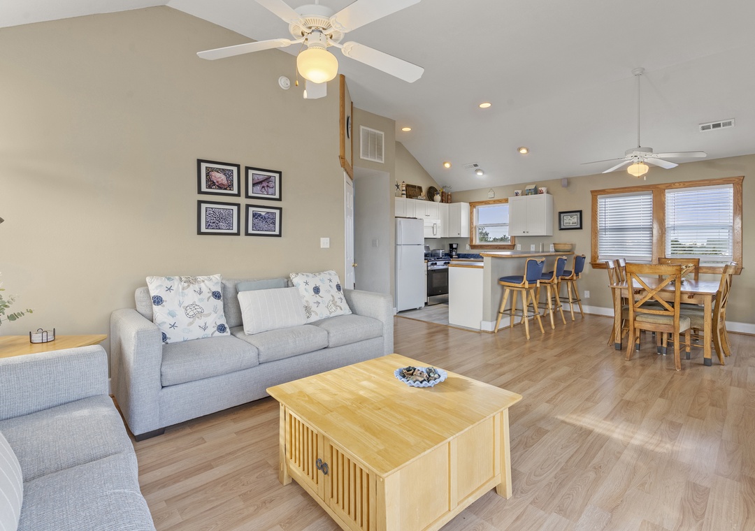 Sea Breeze Blue is an oceanside home in Salvo that has everything you need for a sun-filled vacation. Enjoy a smooth check-in with covered parking and a dry entry under the house. With a Friday turn day, you can avoid the beach crowds on check-in and check-out days. The ocean is just a short walk away using one of the five community beach access paths. Sea Breeze Blue welcomes dogs, so your fur babies can join you on the pet-friendly beaches of the beautiful National Seashore.