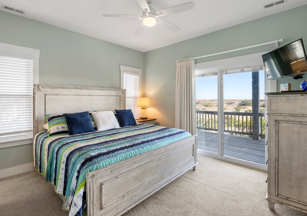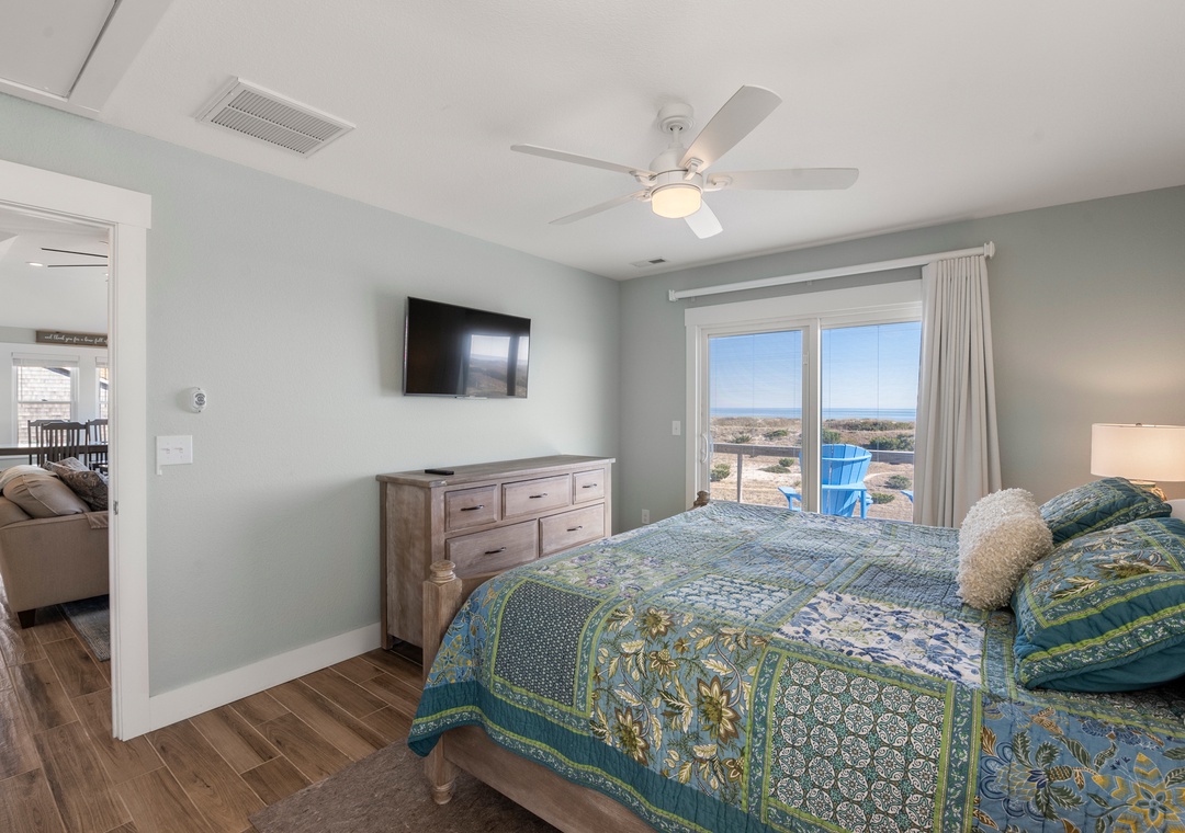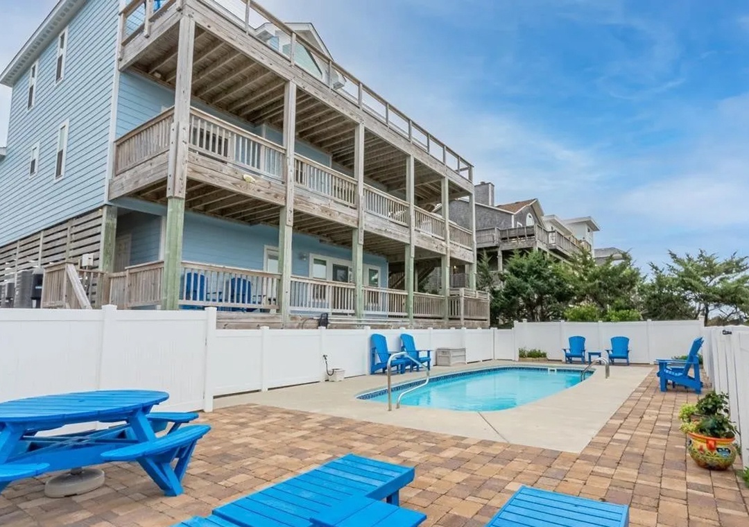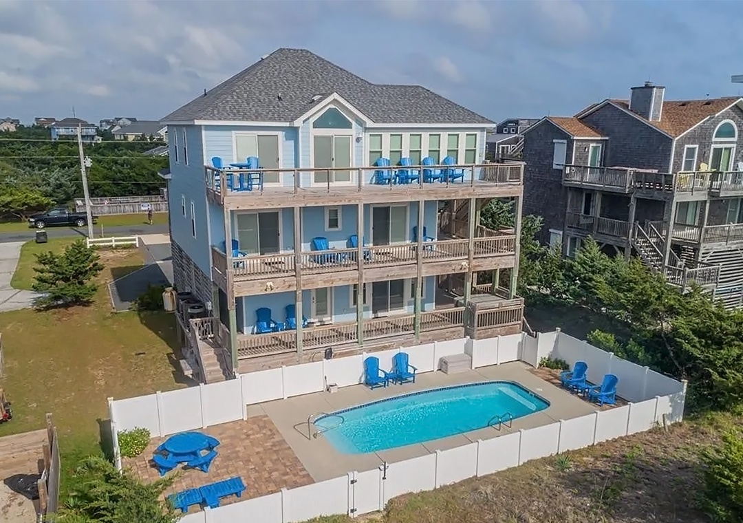The primary king bedroom is also located on the top level and offers an equally stunning ocean view and deck access. An attached private bath features dual vanities and a spa-like walk-in shower. The mid-level consists of four more bedrooms, including two king ensuites with oceanfront deck access. Downstairs, you'll find the fourth king ensuite along with a media room that can serve as an additional hangout space. Gather family and friends for a movie night and use the Sonos surround sound speaker system for the ultimate cinematic experience. There's even a kitchenette for convenient drinks and snacks to enjoy during the movie or just outside by the pool. The fabulous private pool can be heated certain times of the year for endless summer vibes during off-season getaways.