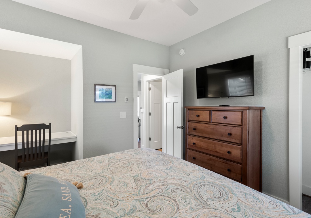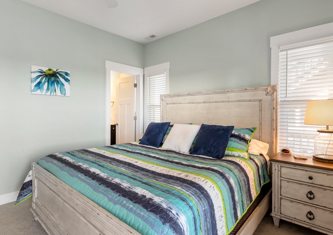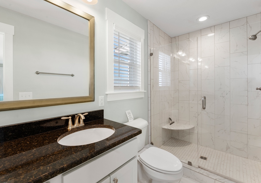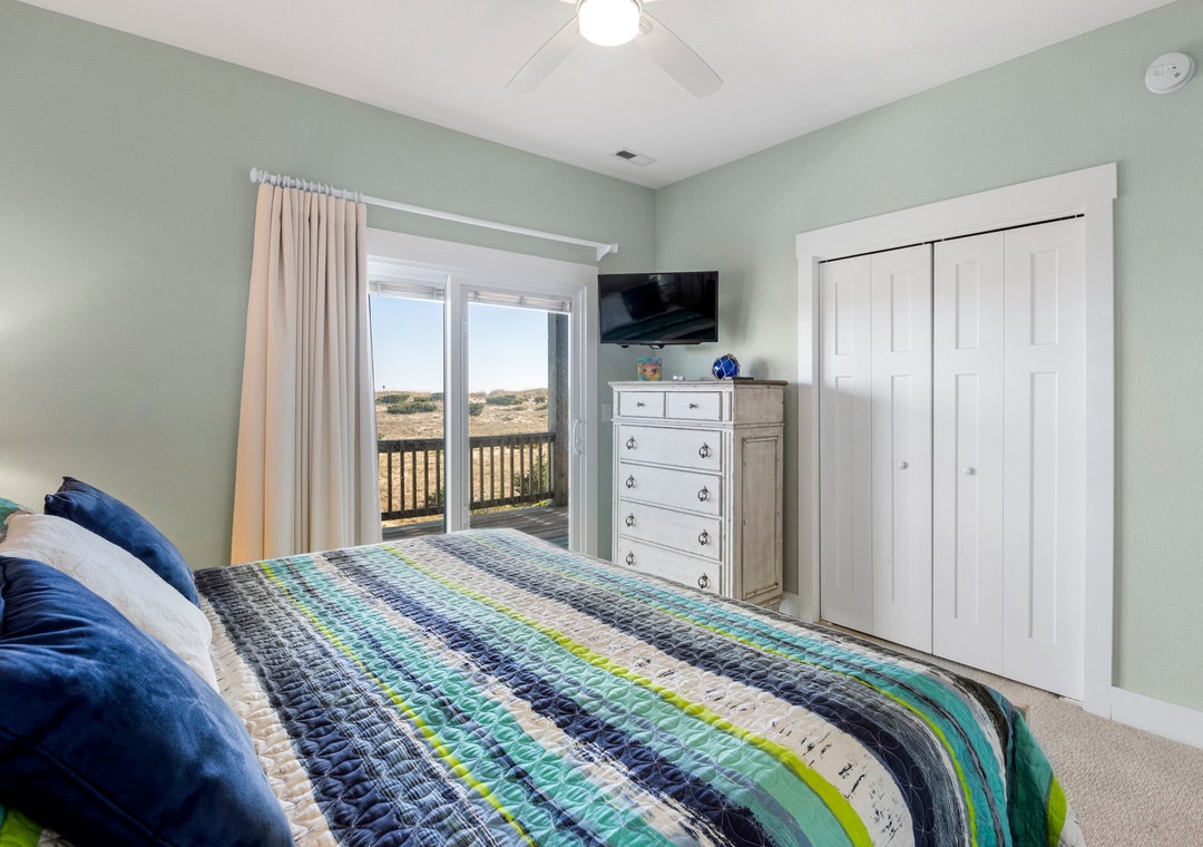 The primary king bedroom is also located on the top level and offers an equally stunning ocean view and deck access. An attached private bath features dual vanities and a spa-like walk-in shower. The mid-level consists of four more bedrooms, including two king ensuites with oceanfront deck access. Downstairs, you'll find the fourth king ensuite along with a media room that can serve as an additional hangout space. Gather family and friends for a movie night and use the Sonos surround sound speaker system for the ultimate cinematic experience. There's even a kitchenette for convenient drinks and snacks to enjoy during the movie or just outside by the pool. The fabulous private pool can be heated certain times of the year for endless summer vibes during off-season getaways.