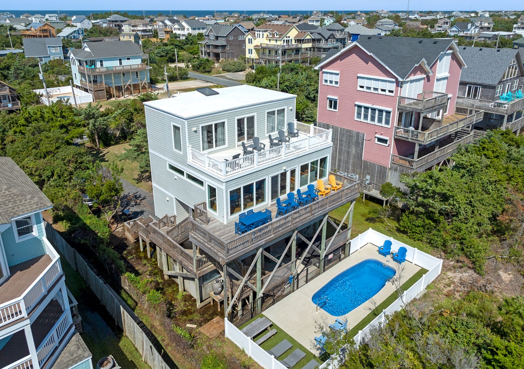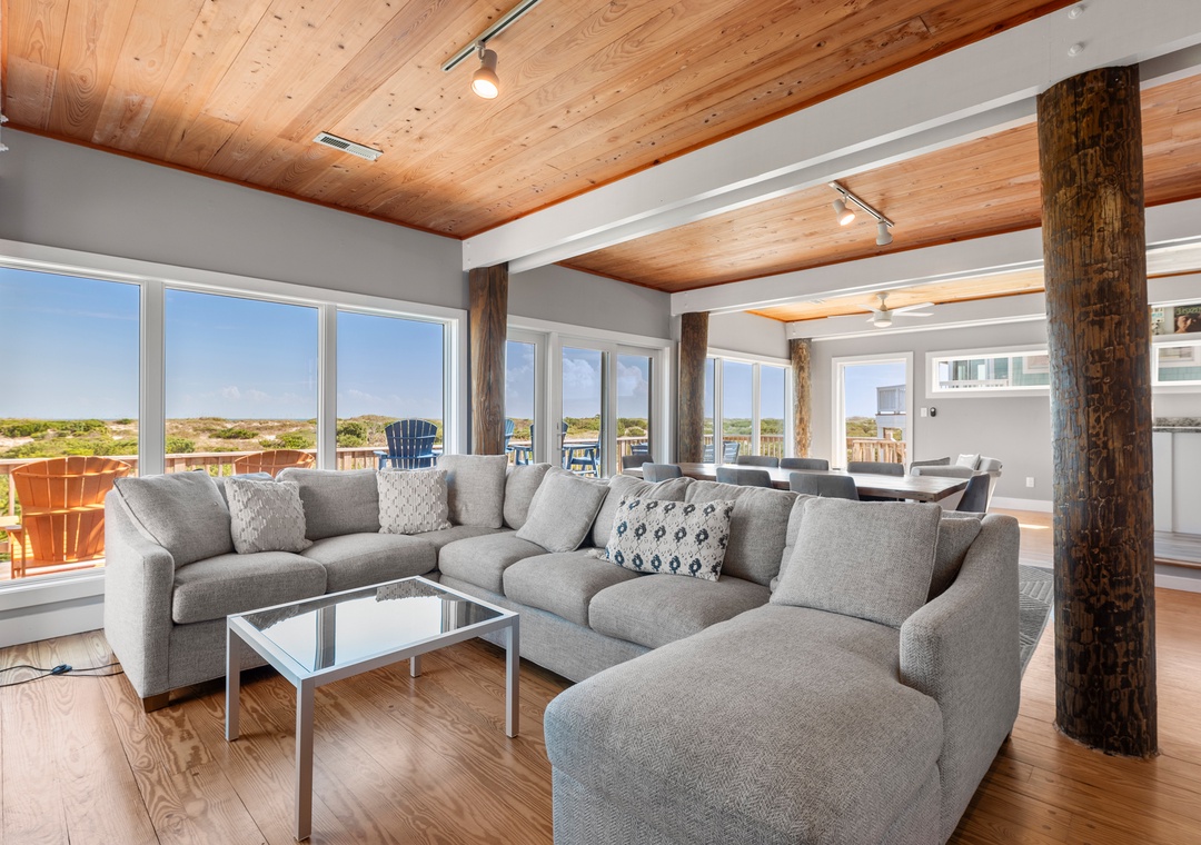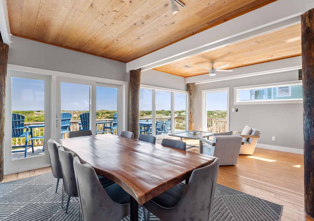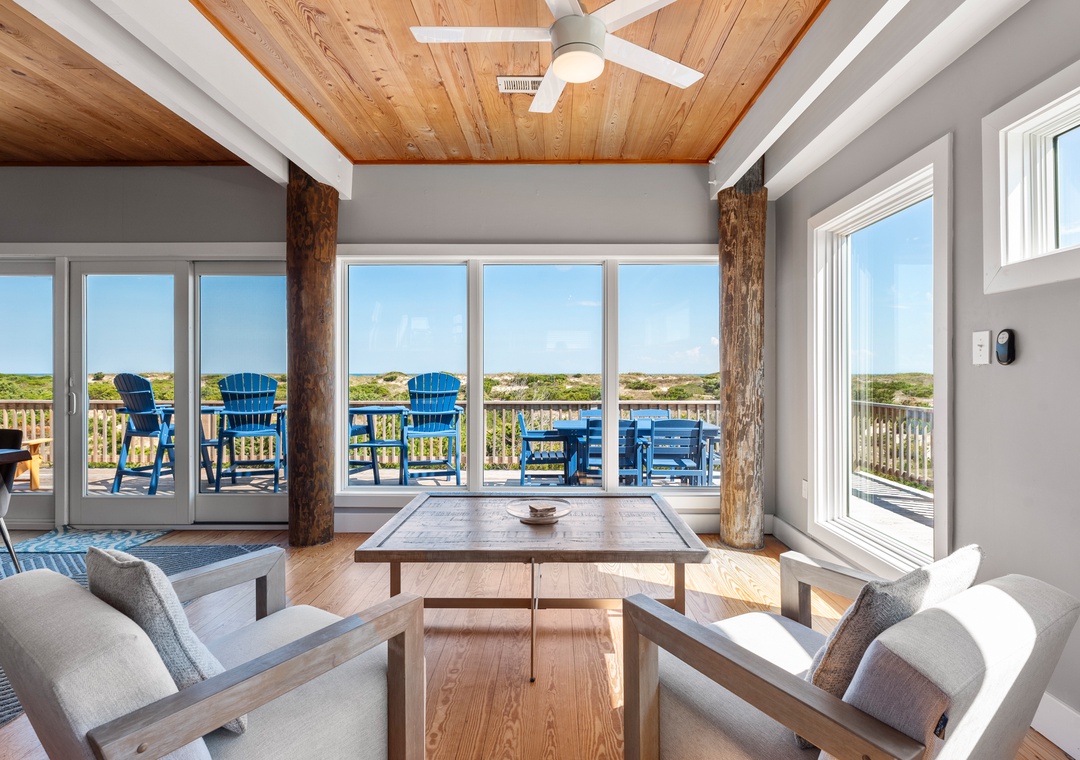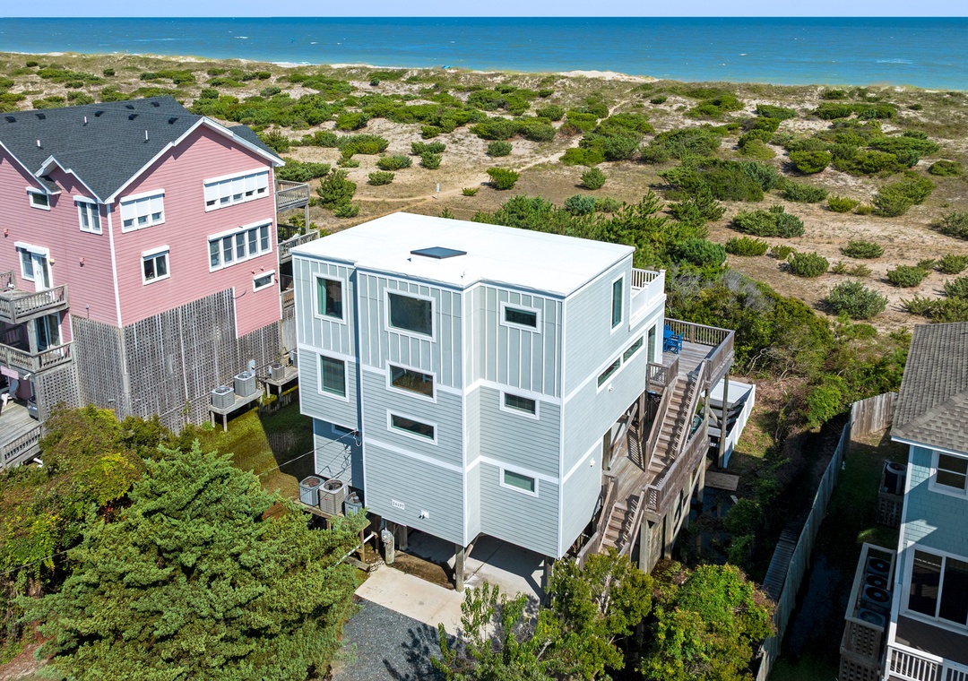 Welcome to 'Crabcake'! Experience the ultimate oceanfront getaway at this stunning four-bedroom property in Salvo. From the moment you step inside, you'll be captivated by the breathtaking wall-to-wall views of the ocean, visible from the middle level all the way to the top floor.