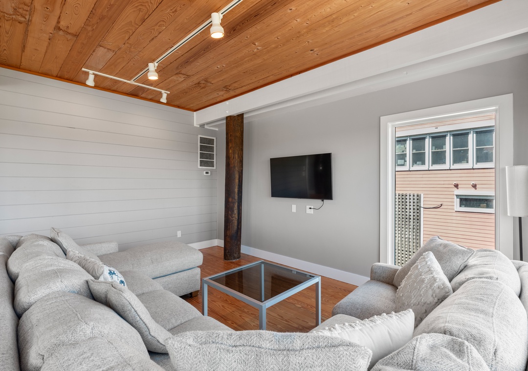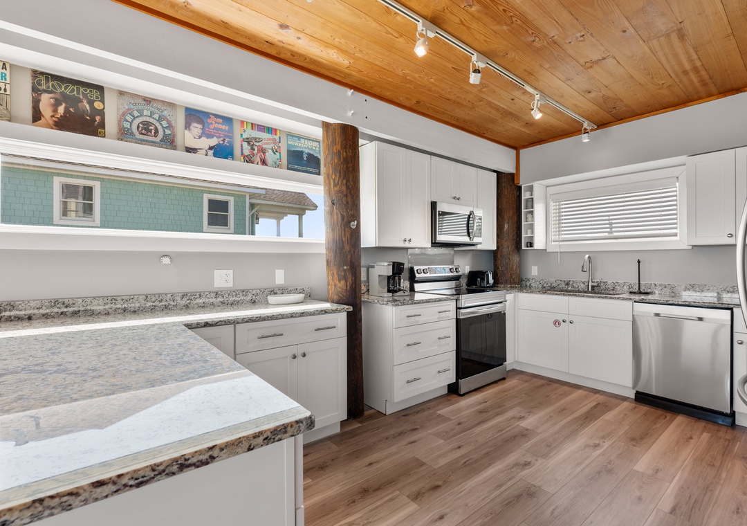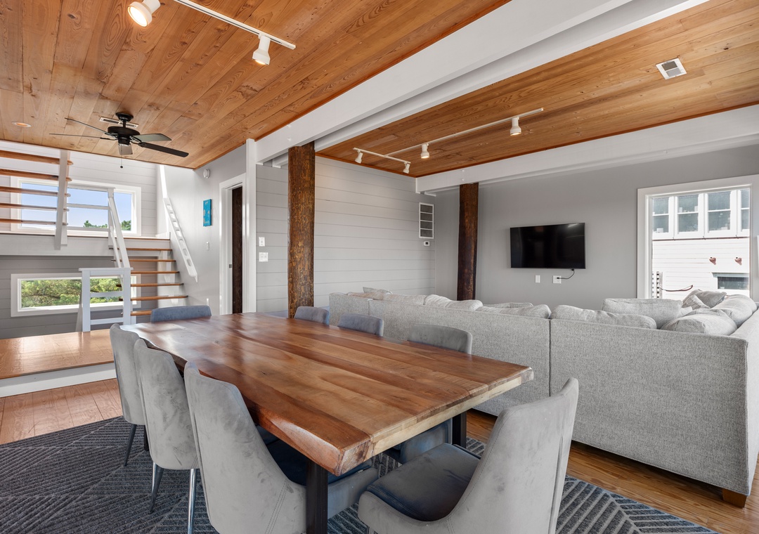 On the mid-level, you'll find an updated kitchen, living room, and dining room, all with ocean views. There's also a media room for puzzles, movies, or simply unwinding, which features a desk for those who need to work from home.