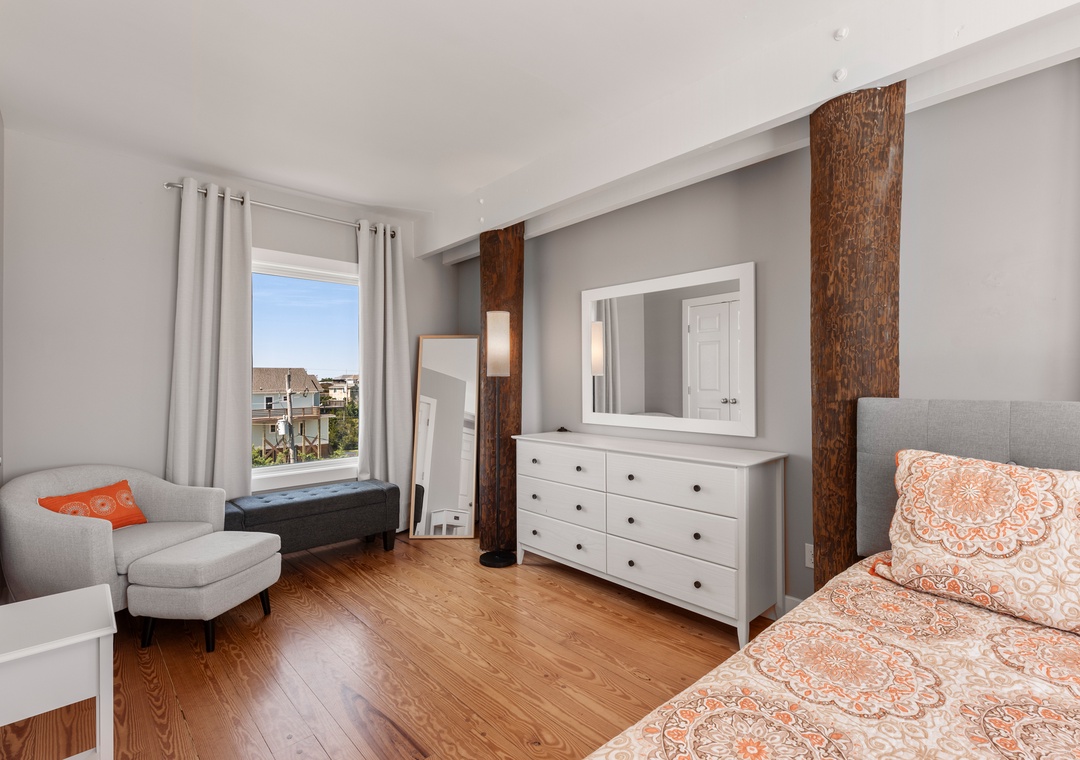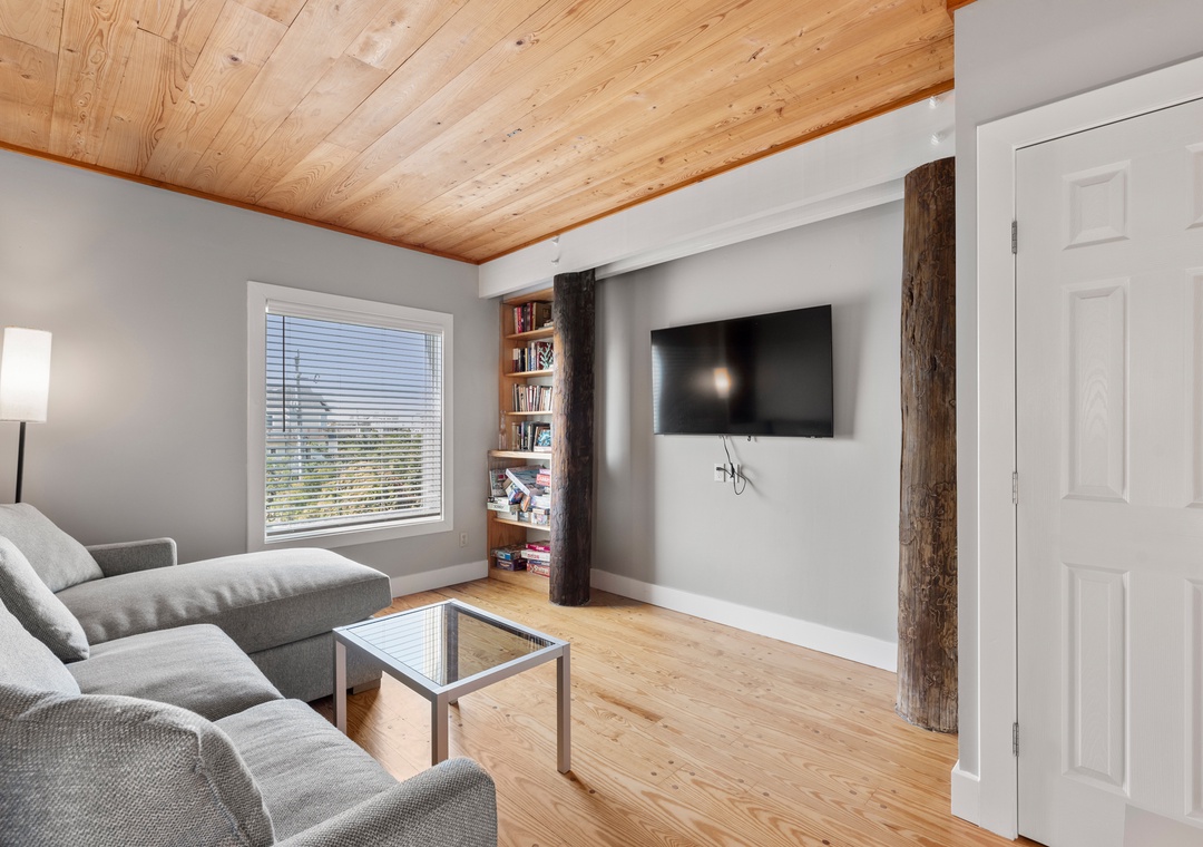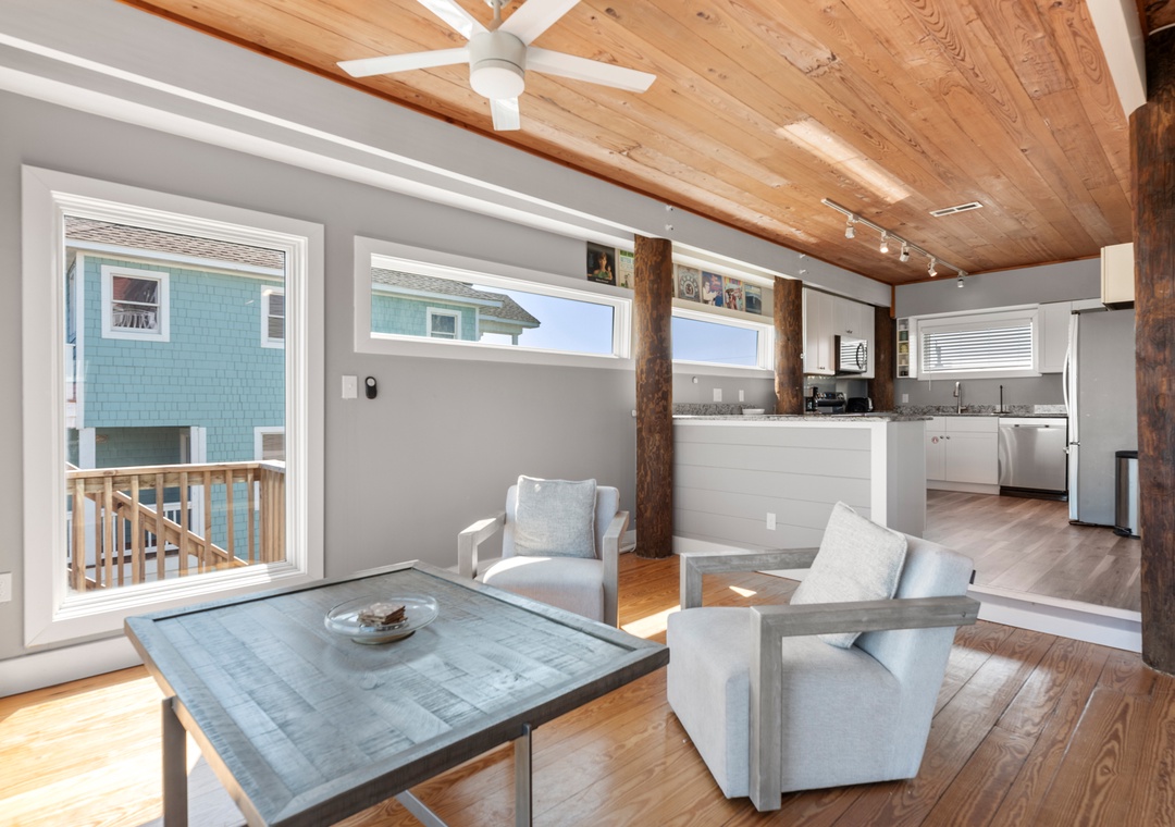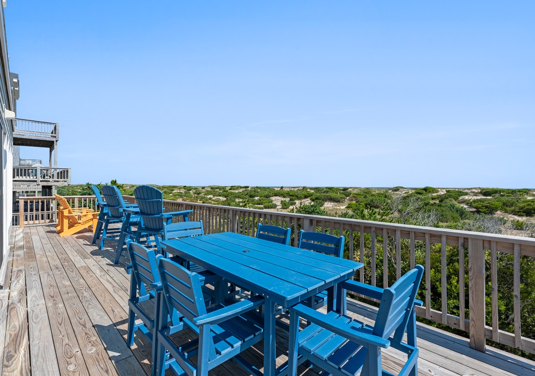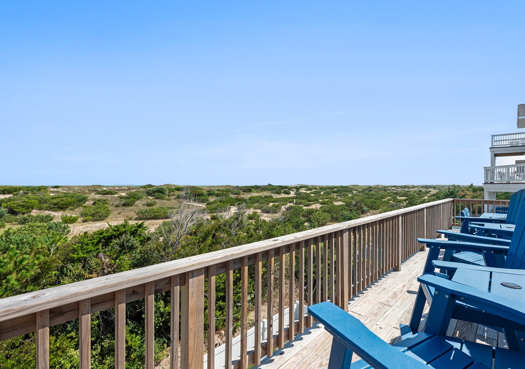 The top level offers a luxurious king bedroom with a private deck overlooking the ocean, a cozy nook with a full-size bed perfect for a peaceful night's sleep, and a bonus sleeping area with spectacular ocean views. A full bath completes this level.