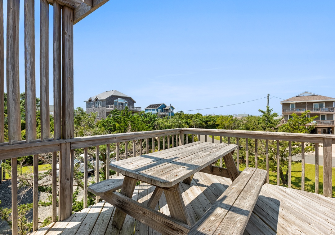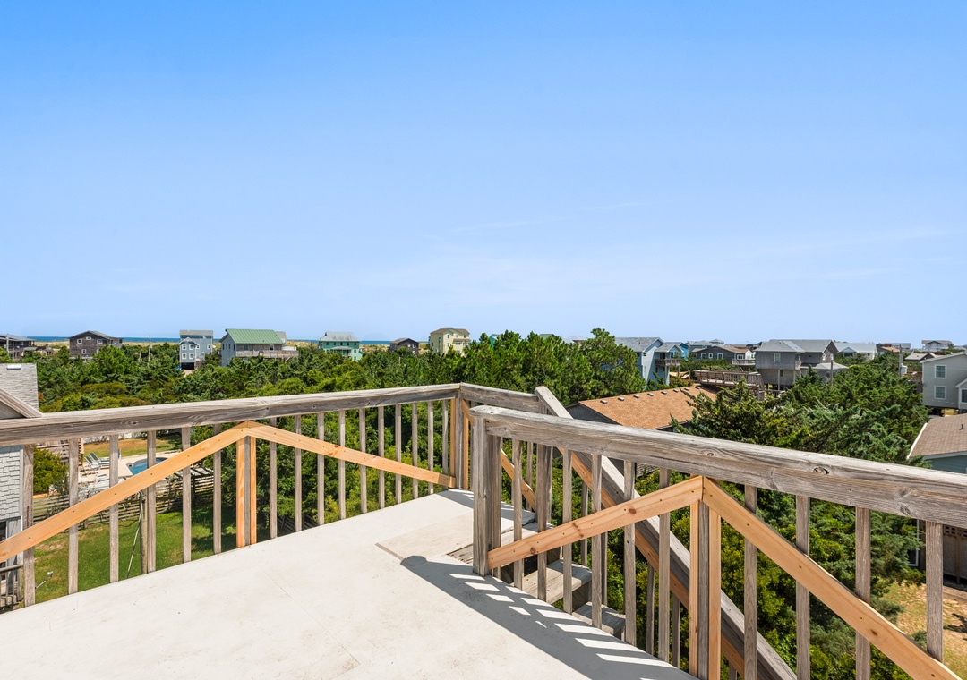 Step outside to the middle level and soak your cares away in your very own hot tub. Whether it’s a morning soak or a starry night dip, it’s always the right time to relax. Enjoy meals or game nights on the screened-in porch, and don’t forget to head up to the rooftop observation deck for sunrise coffee or sunset cocktails with a view.