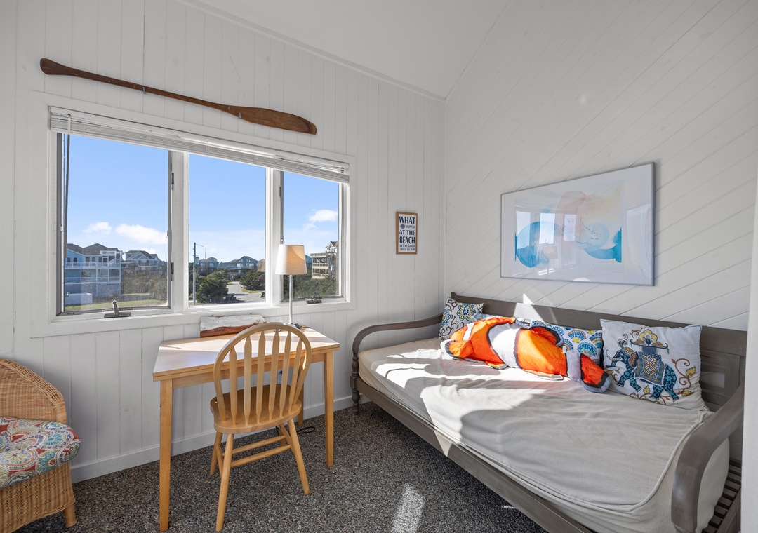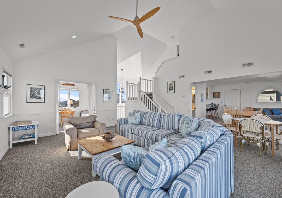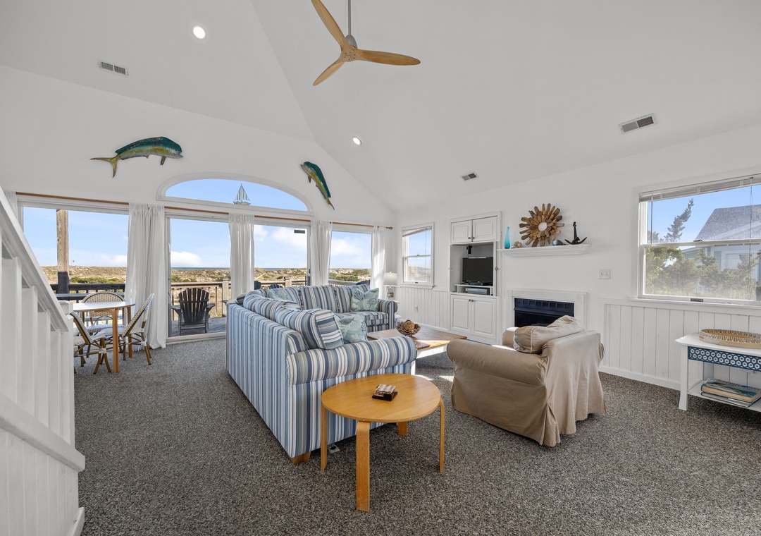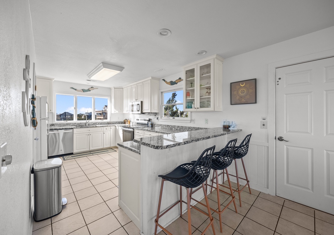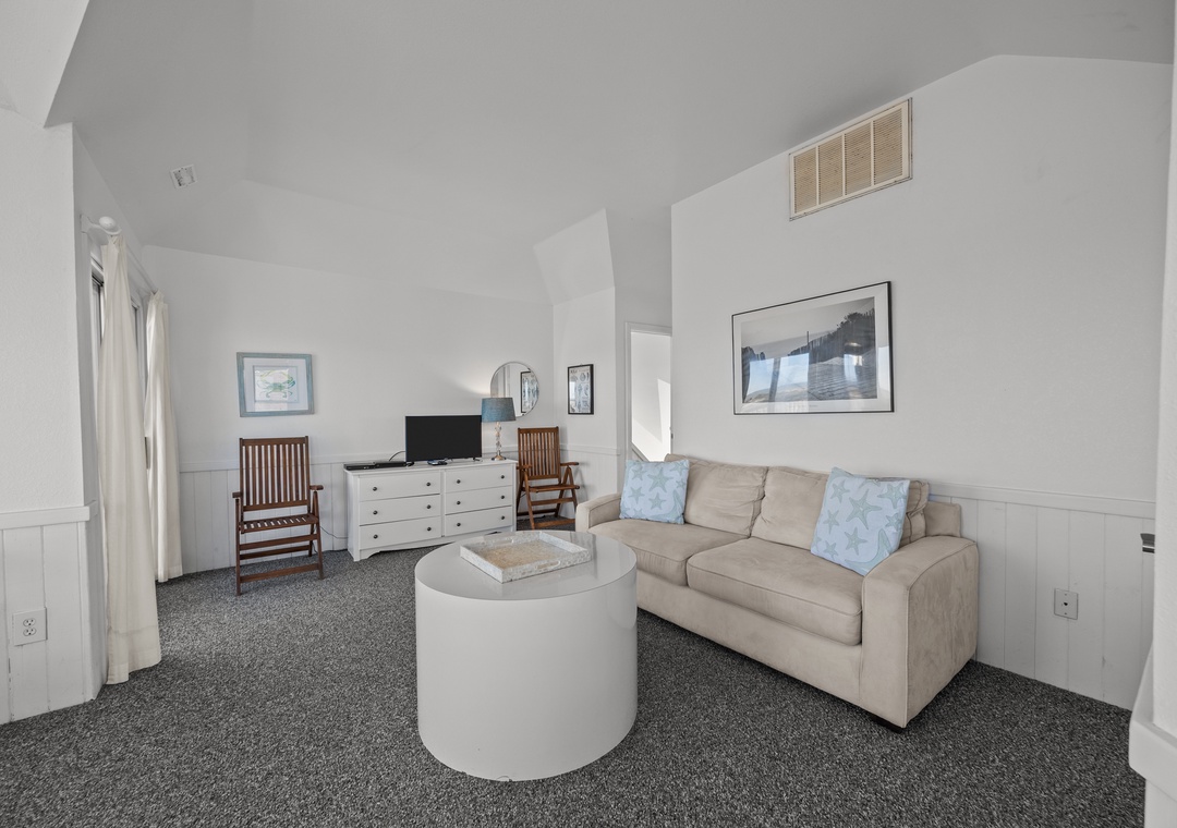 Within the third level hosts the heart of the home, a fully equipped kitchen, a cozy coffee room, a dining area, a living room, a daybed nook, and access to an ocean view deck where you can soak in the surrounding beauty.
