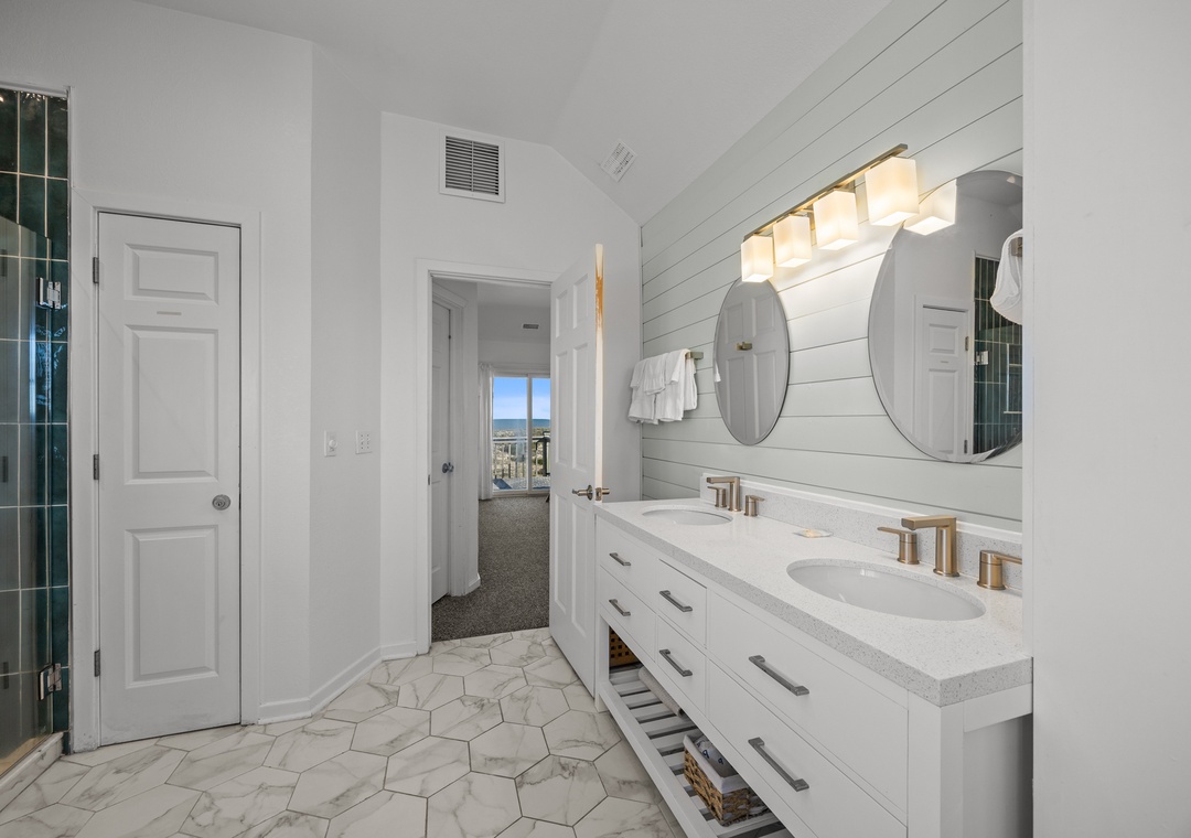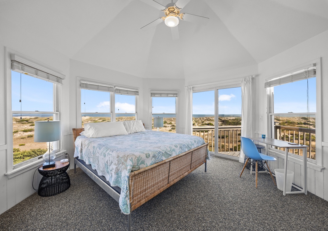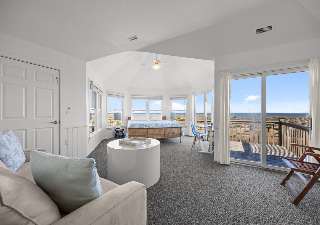 Sneak away to the top level, to find the master bedroom with an ensuite jacuzzi and a private balcony offering sweeping views of the ocean.