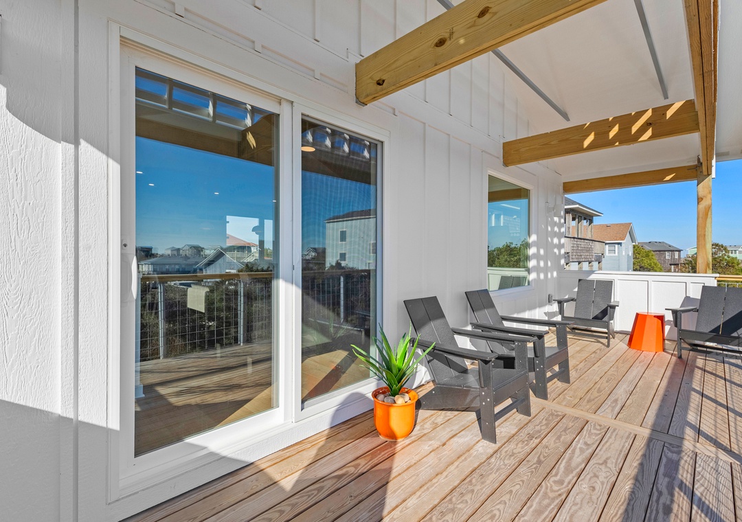 After Waves is mobility‑friendly with an interior stairway chairlift and is ideally located near beach access, allowing quick and easy trips to the shoreline. Guests will also love being within walking distance to the Village Conery ice cream shop, adding a sweet touch to your stay. With ample parking, generous outdoor spaces including a spacious wrap‑around deck, and all the comforts of a brand‑new home, After Waves is the perfect setting for unforgettable Outer Banks memories.