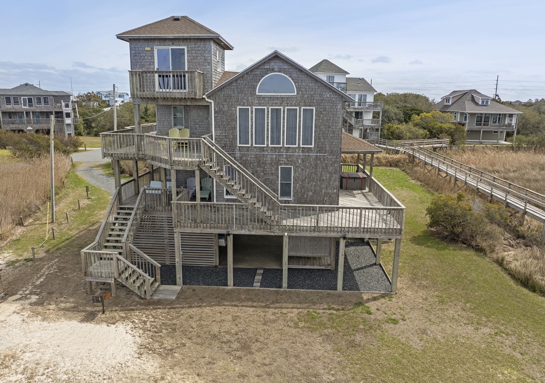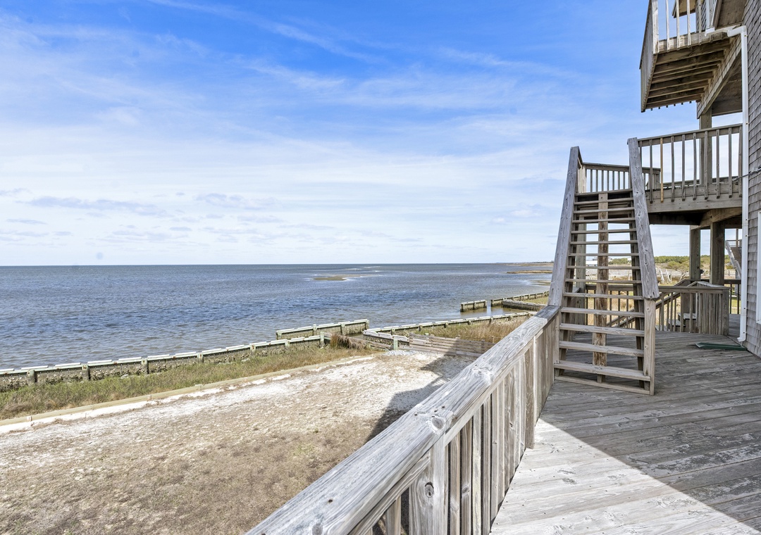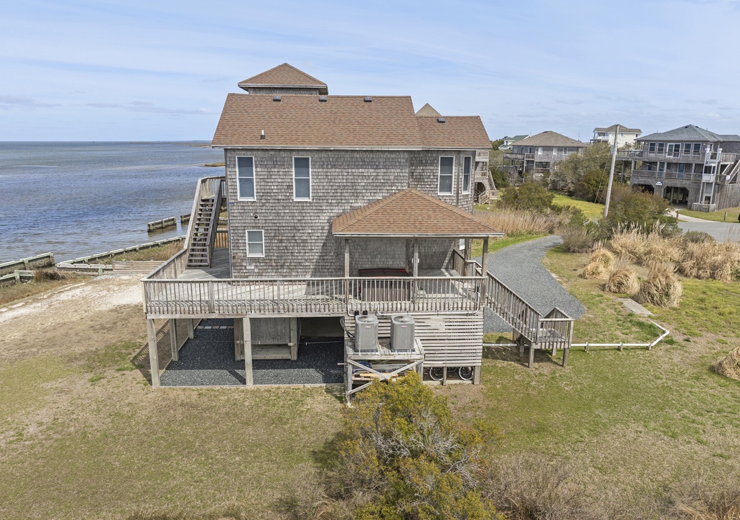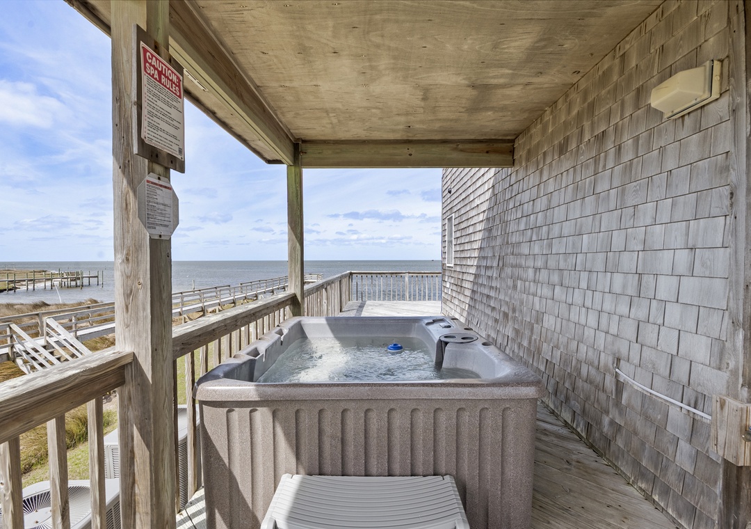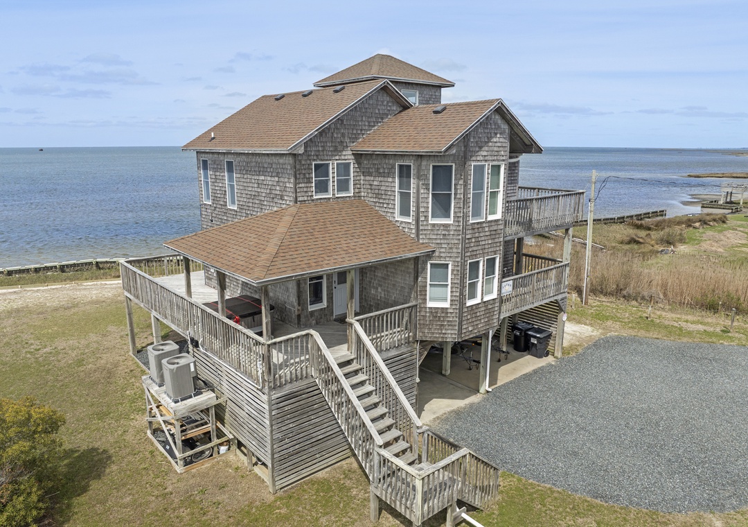 Sound Seclusion is truly a waterman's paradise! This unique waterfront property in Salvo is situated on the Pamlico Sound - perfect for kiting, windsurfing, kayaking and stand-up paddle boarding right from your backyard! Use the shared pier for fishing, crabbing, or clamming. After a day of fun in the sun, come home and unwind with a relaxing soak in the bubbly hot tub. Three levels of expansive decking on both the east and west sides of the house provide plenty of opportunities for soaking up the sun or relaxing in the shade.