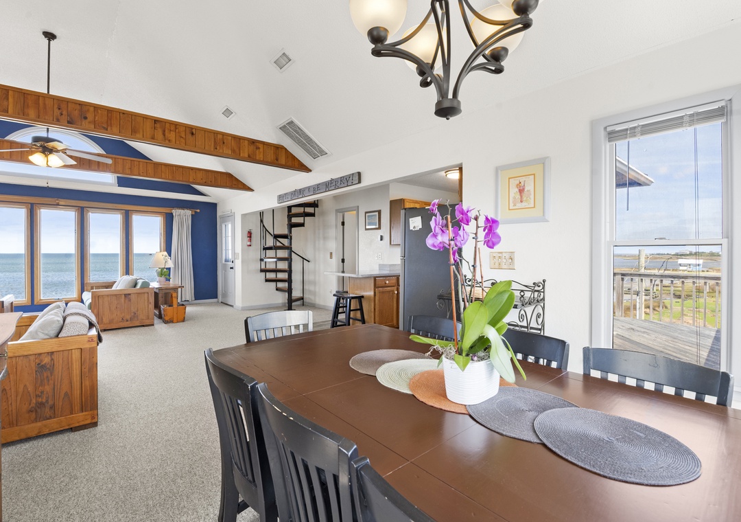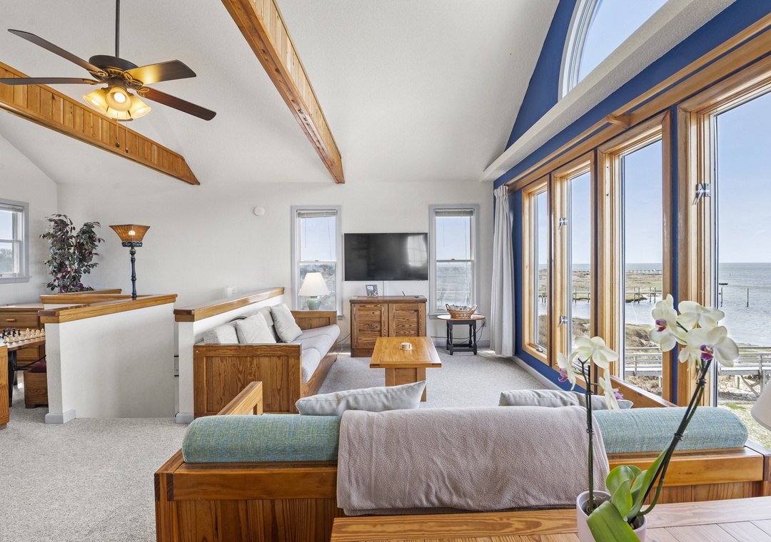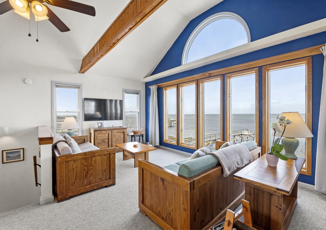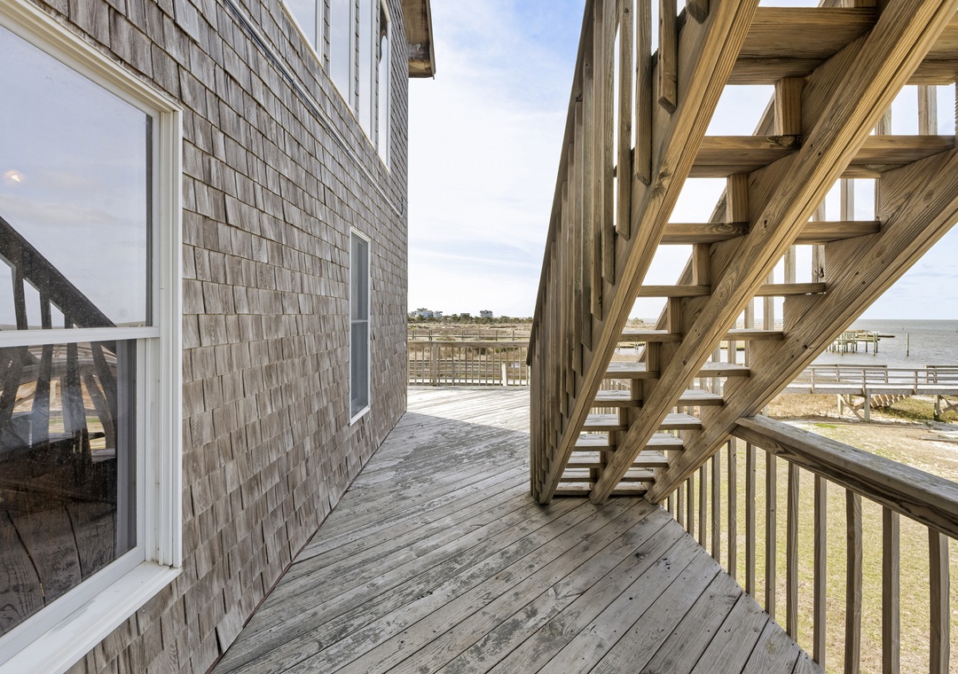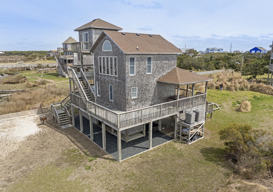 Sound Seclusion is truly a waterman's paradise! This unique waterfront property in Salvo is situated on the Pamlico Sound - perfect for kiting, windsurfing, kayaking and stand-up paddle boarding right from your backyard! Use the shared pier for fishing, crabbing, or clamming. After a day of fun in the sun, come home and unwind with a relaxing soak in the bubbly hot tub. Three levels of expansive decking on both the east and west sides of the house provide plenty of opportunities for soaking up the sun or relaxing in the shade.