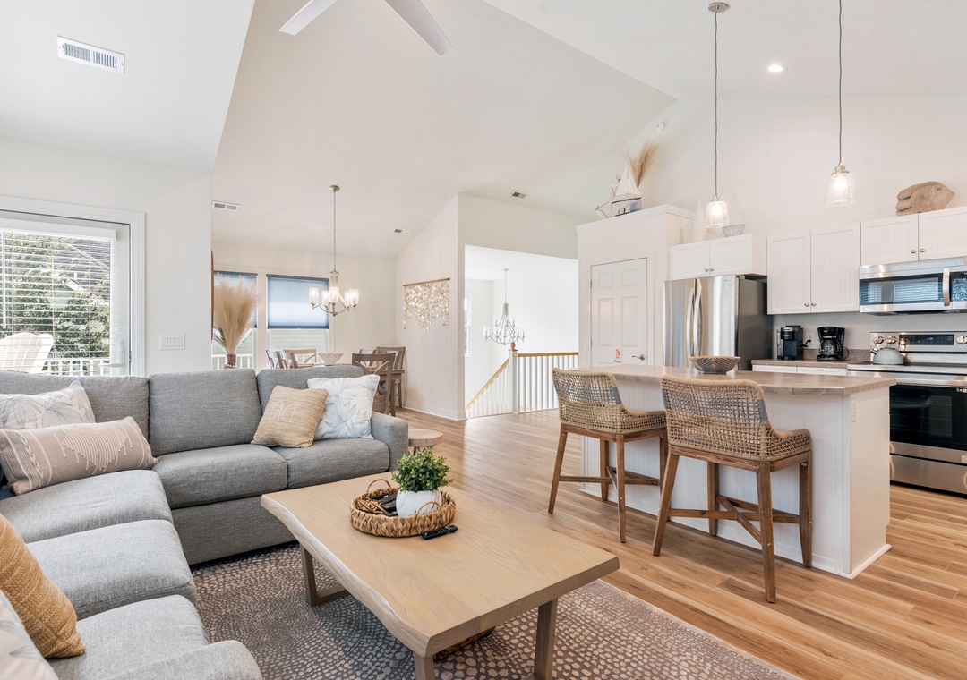 Marsh & Harbor is a well-maintained 4-bedroom home located in the Hammocks neighborhood of the sought-after Currituck Club community. The open-concept layout in the top level living area features vaulted ceilings and an abundance of natural light. There's plenty of room for everyone to help prepare meals in the kitchen, including an island with bar seating the overlooks the great room. Two master suites, one on each level, provide plenty of privacy and retreat. Gorgeous hardwood flooring flows throughout the entire home for a cohesive look. The decks are perfect for outdoor living and overlook a secluded and partially fenced yard. At the end of the day when you get back home, soak in the hot tub while you start planning the next day's adventures.
