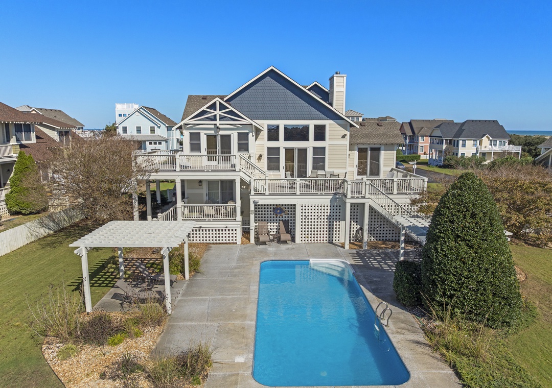 Welcome to Eventide, your Corolla beach retreat! This stunning vacation home in Corolla offers the perfect blend of luxury, comfort, and convenience for your Outer Banks getaway. Spread across three spacious levels, Eventide features multiple living areas, a private pool, hot tub, and access to premium community amenities.