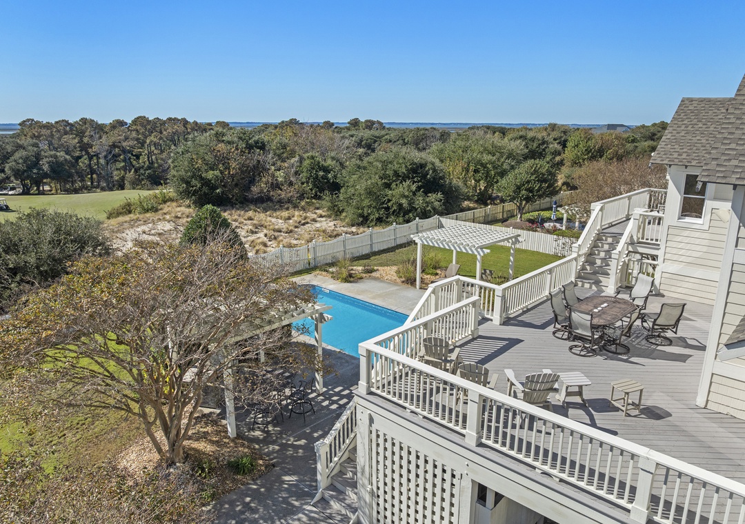 Step outside to your private oasis with a sparkling pool, relaxing hot tub, and plenty of space for lounging. Guests also enjoy access to incredible community amenities, including multiple pools, a fitness center, golf course, pickleball and tennis courts, a trolley to the beach with valet service, and an in-season beach snack bar.