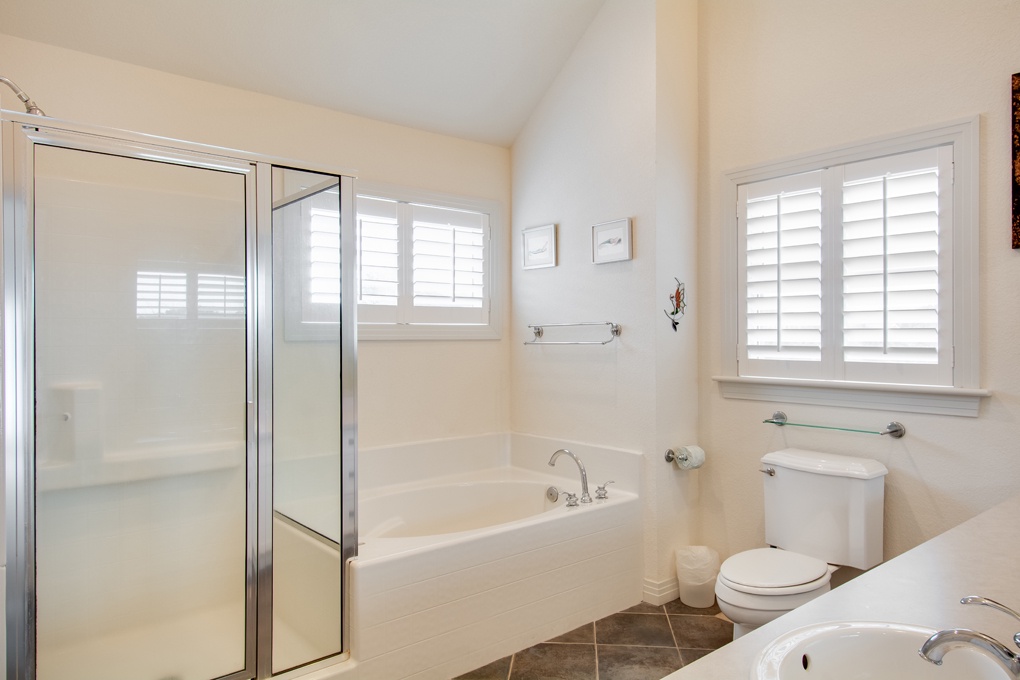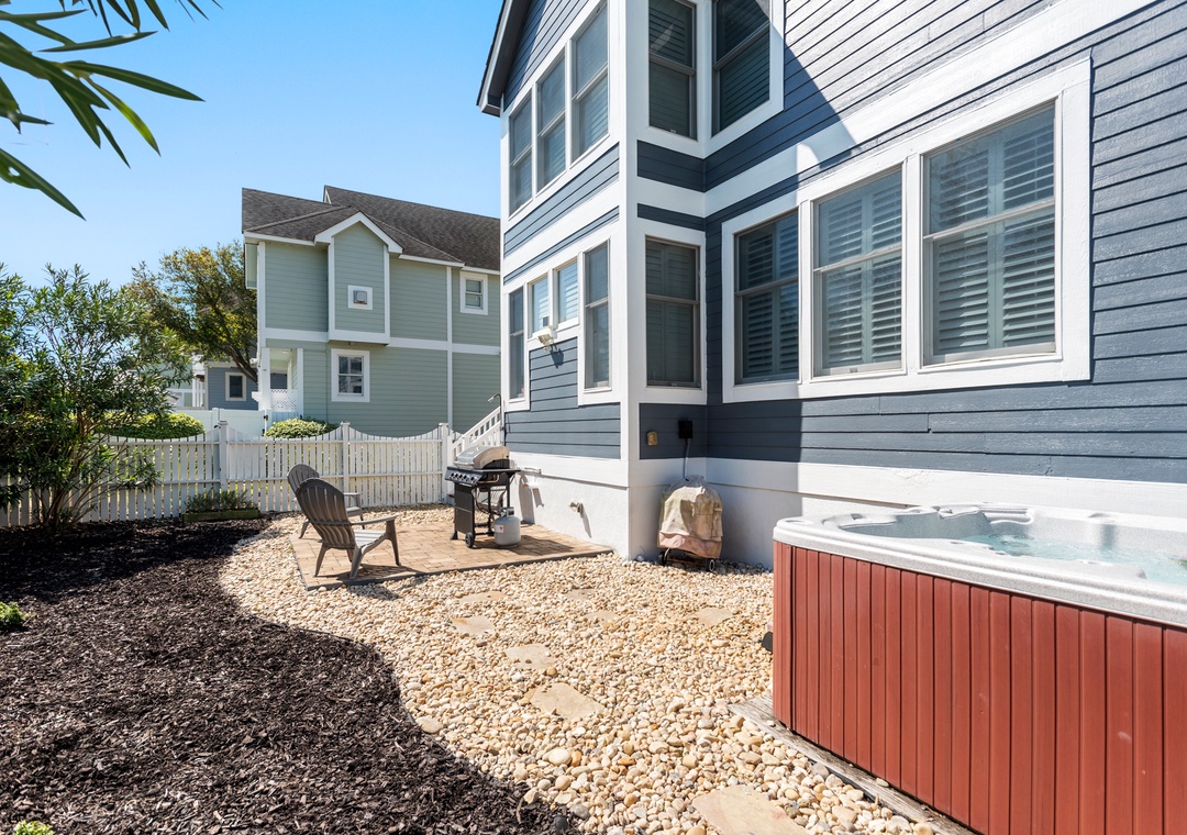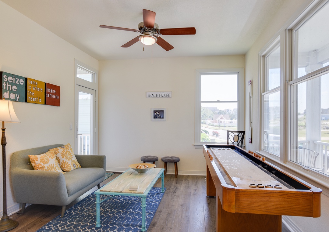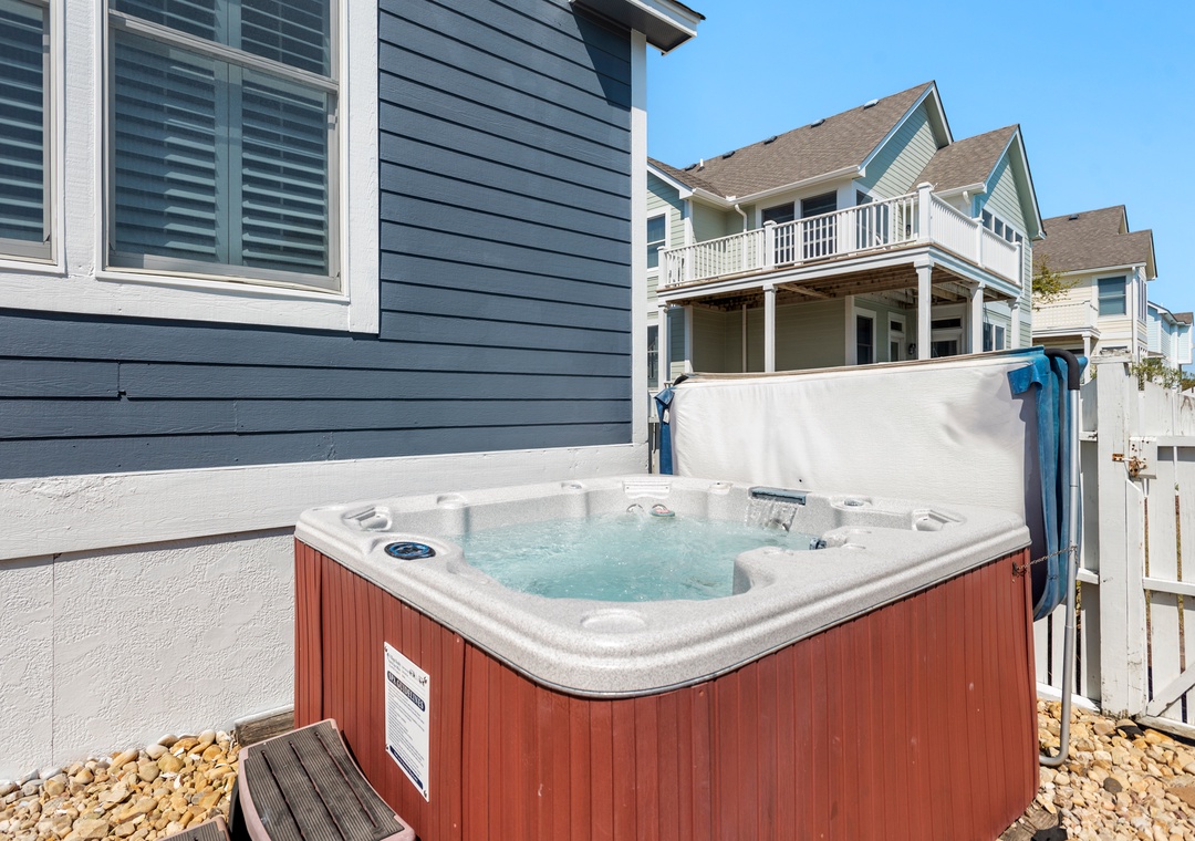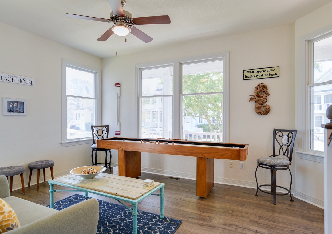 The owners have thoughtfully provided something for everyone including a shuffleboard table. There are two master bedrooms (bath attached) and one of them has a soaking tub. Speaking of tubs, there is also a hot tub which accommodates six people.