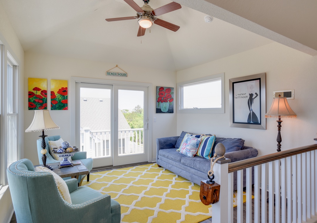 Sound Spirit is very nicely decorated and welcoming. This three bedroom retreat has a Tower Room with ocean views.. The Dining Room table has seating for 6 and additional seating in the Kitchen area with 2 bar stools, perfect for the whole family. All three bedrooms are equipped with Smart TV's for streaming your favorite shows and movies.