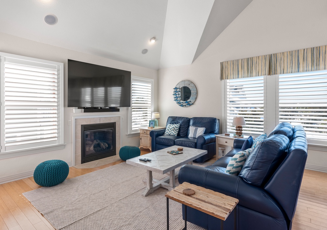 New to the Village Realty program for 2025! Coral Sunset is a well-maintained 4-bedroom home situated in the family-friendly Hammocks neighborhood of the prestigious Currituck Club golf community. Make the most of outdoor living during your stay with two levels of decking and an enclosed backyard with your very own sparkling private pool. Inside, the top-level great room features hardwood floors, a cozy gas fireplace (off-season only), and a wall of east-facing windows for abundant natural light. The open-concept layout is ideal for gathering and socializing, even while cooking in the fully stocked kitchen. Upstairs, the loft area serves as a bonus room and is furnished with a queen bed for alternative sleeping arrangements. At the end of the night, retreat to the spacious primary suite featuring a king bed, deck access, and a private bath with dual vanities and separate soaking tub. Downstairs, you'll find a second king ensuite along with two additional bedrooms that share a bathroom. Please note that there is an additional trundle bed located under the day bed for additional sleeping arrangements.