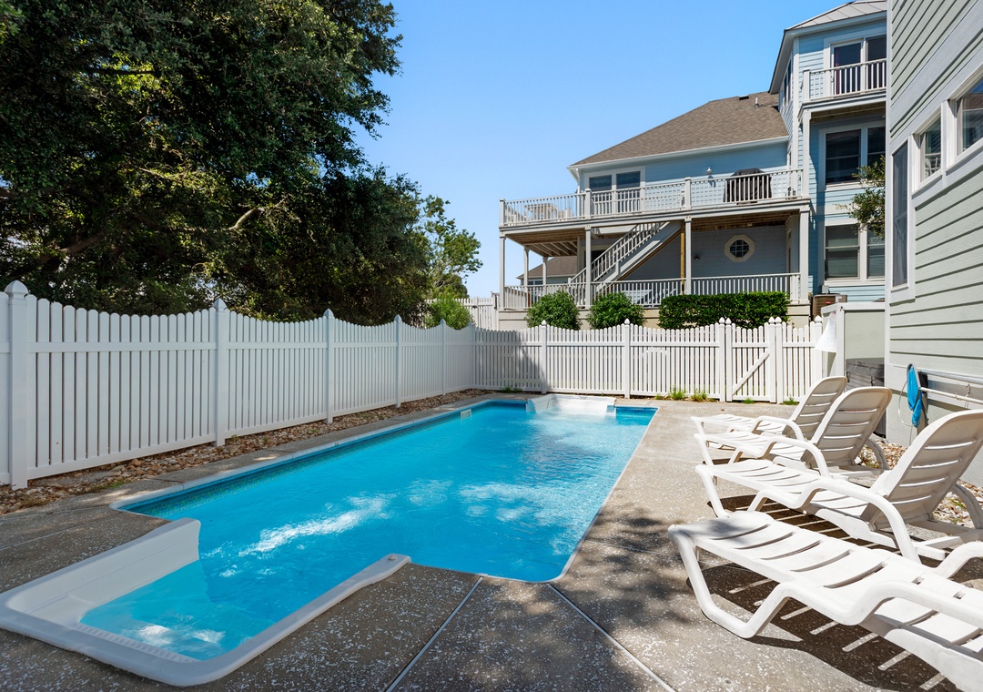 Welcome to this beautifully decorated home with a private pool, soothing hot tub, rec room with a pool table, well-equipped kitchen and an easy flowing floorplan with stylish coastal charm. This home is nestled in the Hammocks neighborhood within the award-winning and gated Currituck Club community.