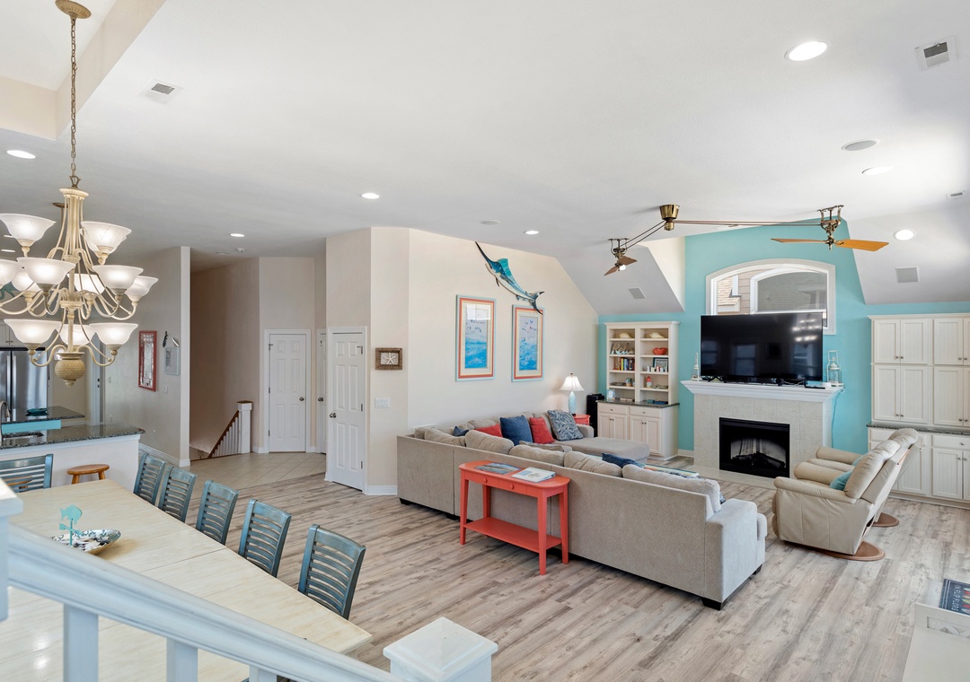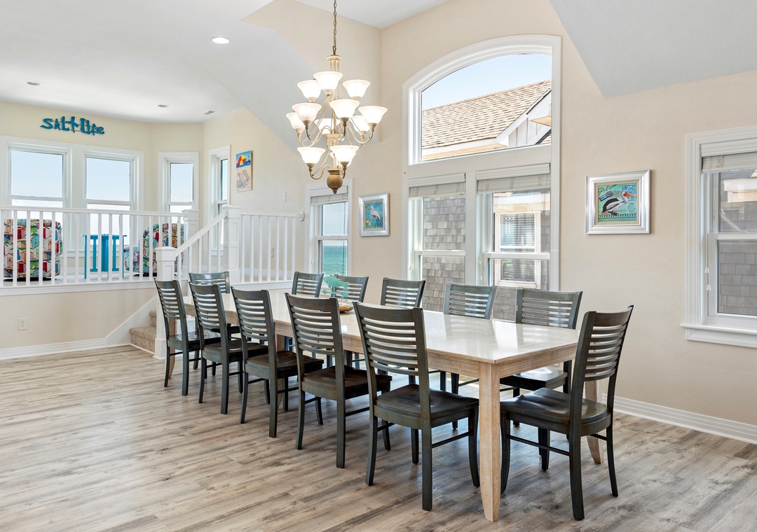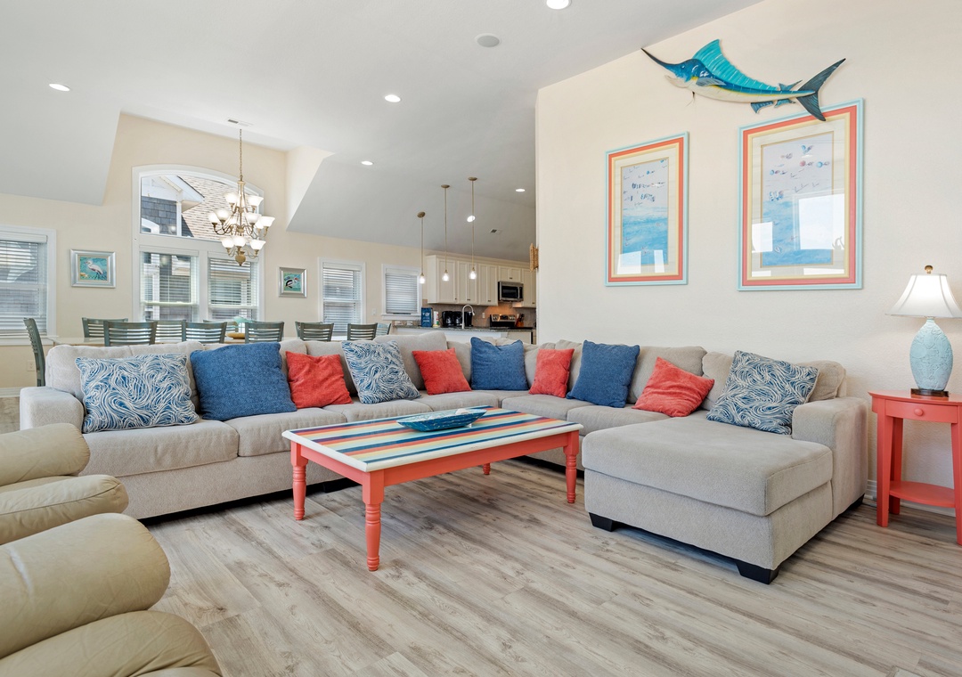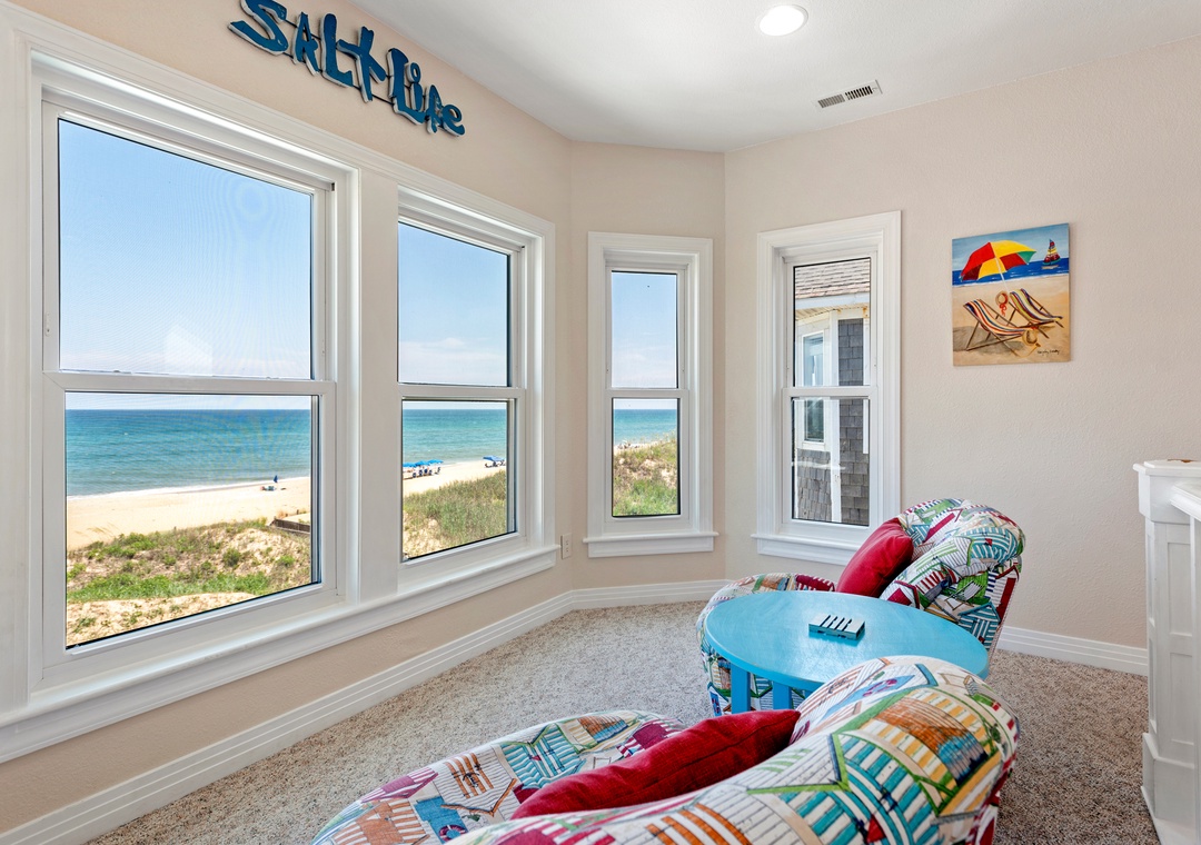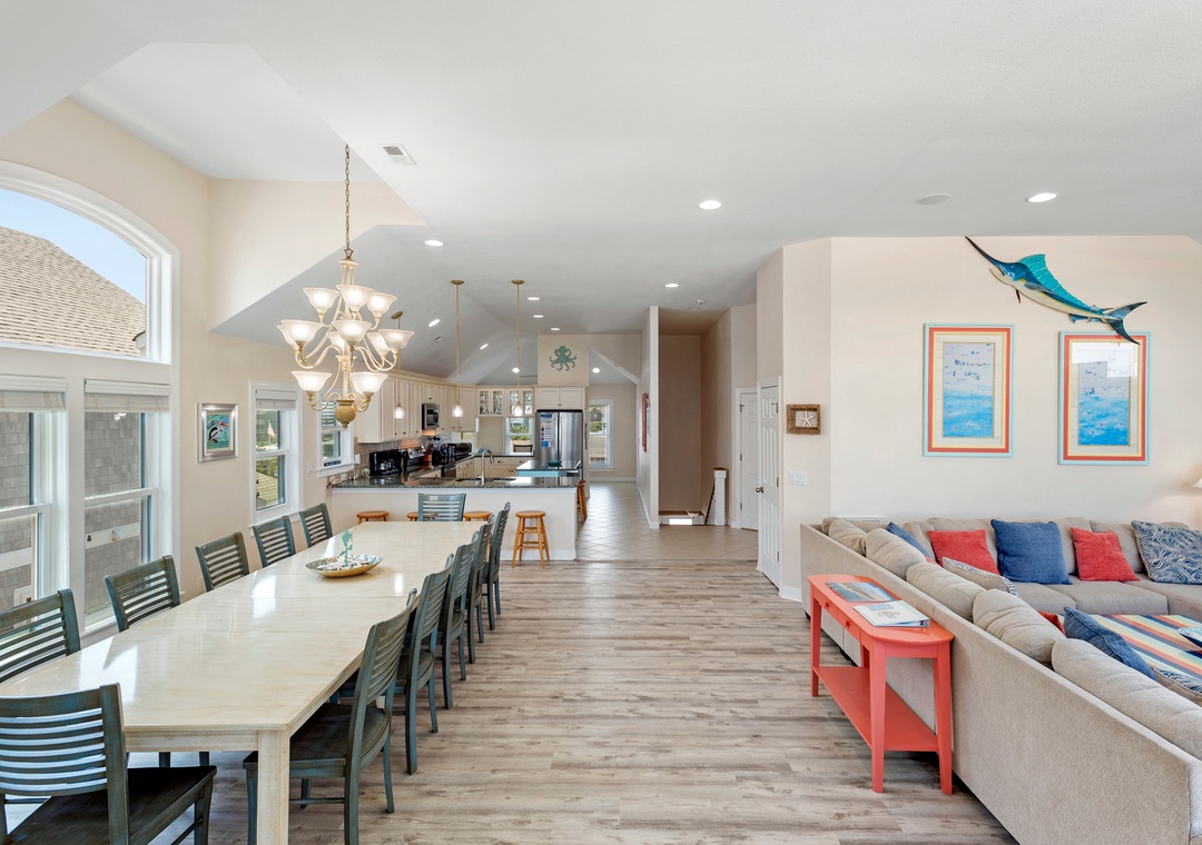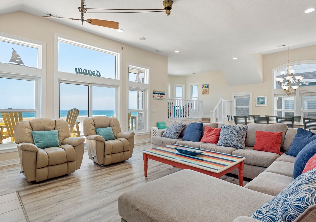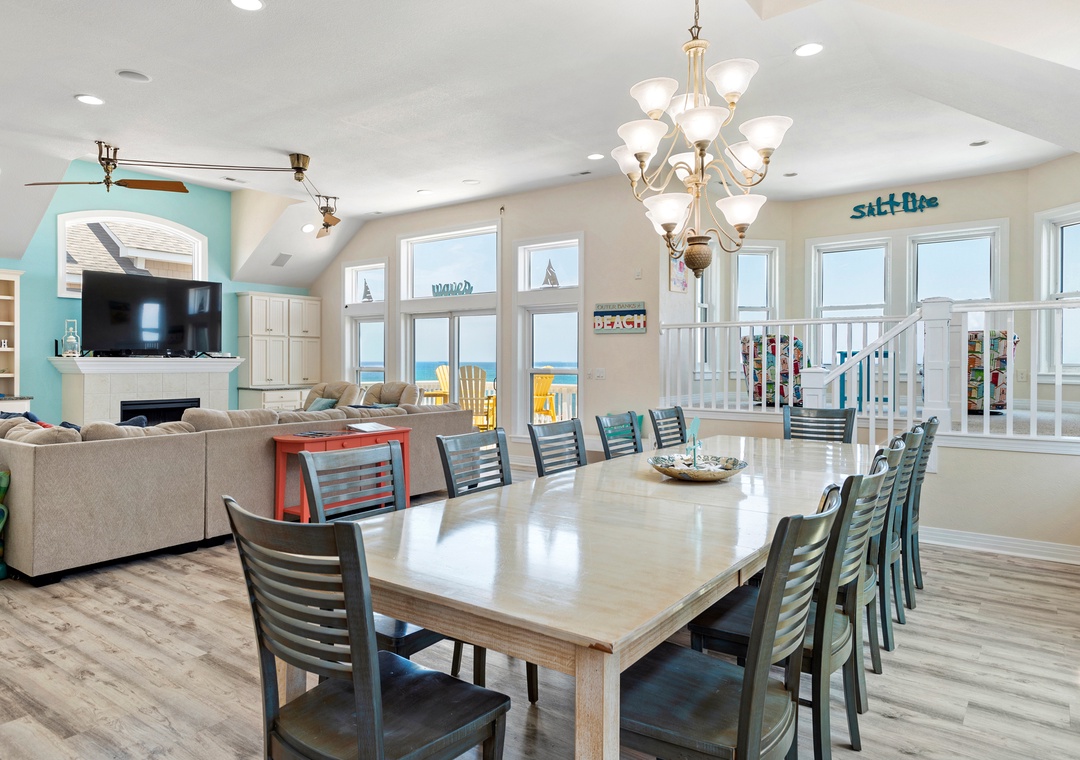 The spacious top-level great room not only offers ample space for family gatherings but also boasts spectacular ocean views that enhance the ambiance. Plus, with a rec room featuring a pool table and foosball, there’s plenty of entertainment for everyone.