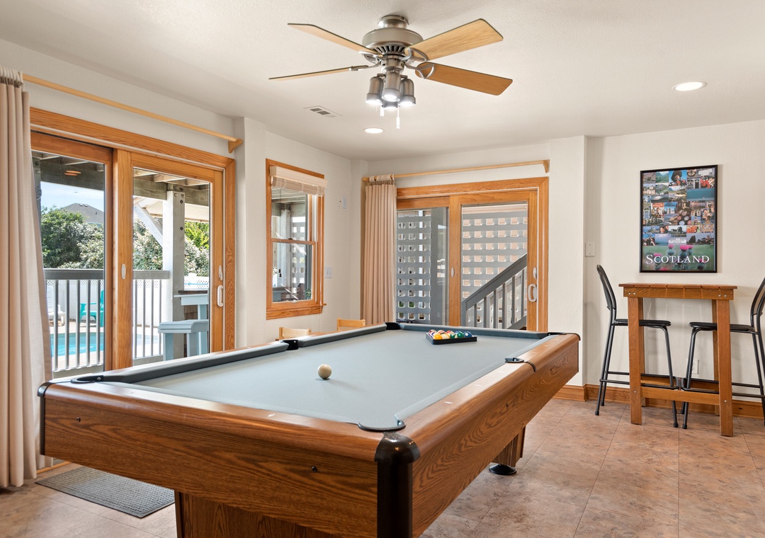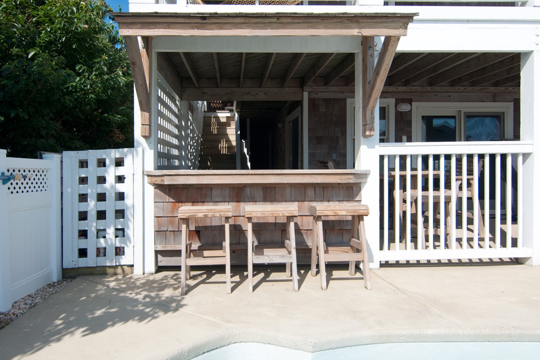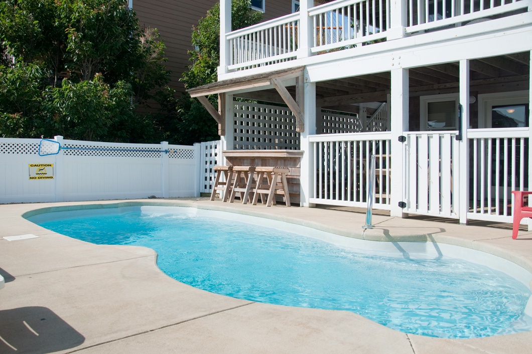 You can truly be "On Holiday" at this beautiful home located in Old Nags Head Place. The outdoor entertaining has so much to offer, from your very own private saltwater pool and hot tub, to the tiki bar, outdoor ping pong table and corn hole game. Inside you can enjoy the rec room with a pool table and wet bar with full-size refrigerator and microwave. Gather in the great room for movies or great dinners in the well-equipped kitchen. Take in the beautiful sunrises from the top-level sun deck and catch a view of the ocean.