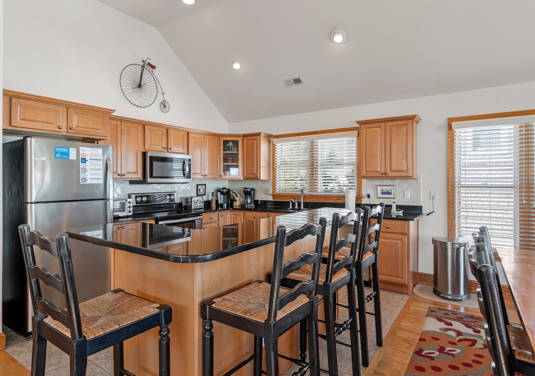 On Holiday is a very lovely home. I agree w other reviewer that kitchen could use updating, but thats primarily a matter of aesthetics, as the kitchen was just fine for us. It is also well equipped with high quality small appliances cooking equipment and utensils. In addition, the entire home has finishes and decor which put it a step above your typical beach rental. It was very clean and well maintained and plenty large enough for our party of 8. It would be awesome to have direct beach access out the back, but I dont know if thats possible given the property lines. The house has multiple porches and decks and durable outdoor furniture for relaxing on cool nights. On Holiday was a great place to stay and well worth the price.- Reviewed On: 7/11/2023