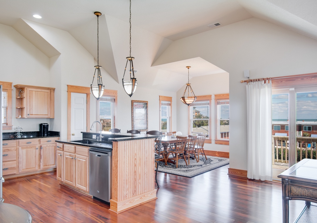 Ocean views and breezes are the perfect prescription for rest and rejuvenation, Saltrock can provide all of that and more. The list of home amenities will fill your vacation days with joy. The well thought out floor plan provides guest with a central elevator to all floors, a large great room and gourmet kitchen and dining space for everyone. The expansive outdoor pool and hot tub area and yard will be the place to hang out and have fun and your four legged furry friends will absolutely love the large dog play area.