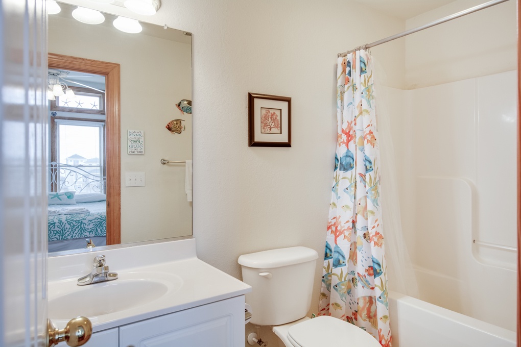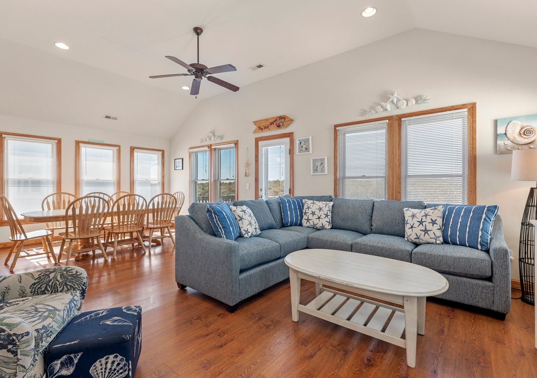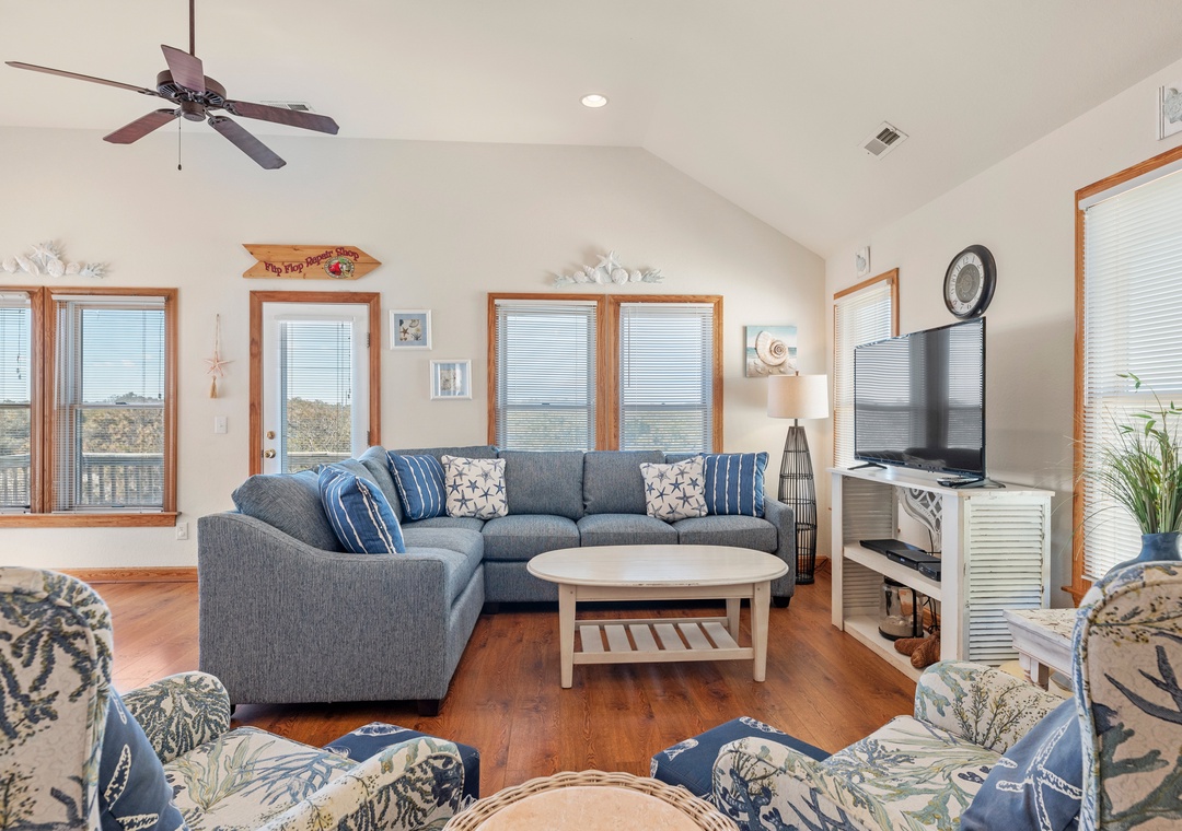 We were first timers in the OBX and were not disappointed. What a great first beach house this was. The location was great the weather was cool but fair. On the too cool for the beach days we traveled to the aquarium and local shops. The aquarium was quaint and perfect we loved the turtle rehab and rescue center!! The teens rented bikes to travel independently to shops and cafes etc. The store next door and austins seafood were an added convenience and saw someone from my family almost daily. The wind took a bit of getting used to. Village realty was perfect starting with an arrival tex And ending with checking out via the mobile app. Any staff i encountered were friendly and helpful! We found the OBX locals to be extremely friendly and great to chat with to learn about the area and beach life!! Thanks for the great visit and adorable beach house!! See you next year!!- Reviewed On: 3/28/2015