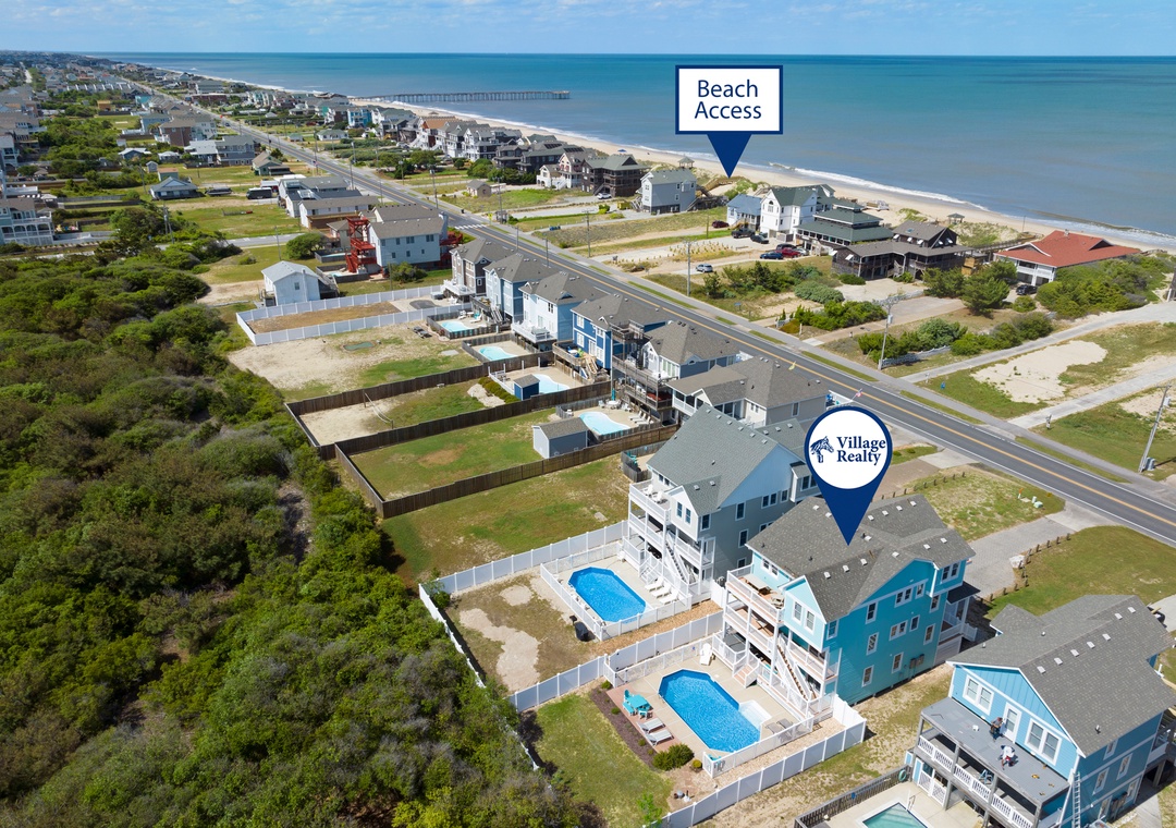 'Sea & Sons' fronts the Beach Road (guests will cross the two-lane Beach Road to access the beach). The walk to beach access is approximately 100 yards.
