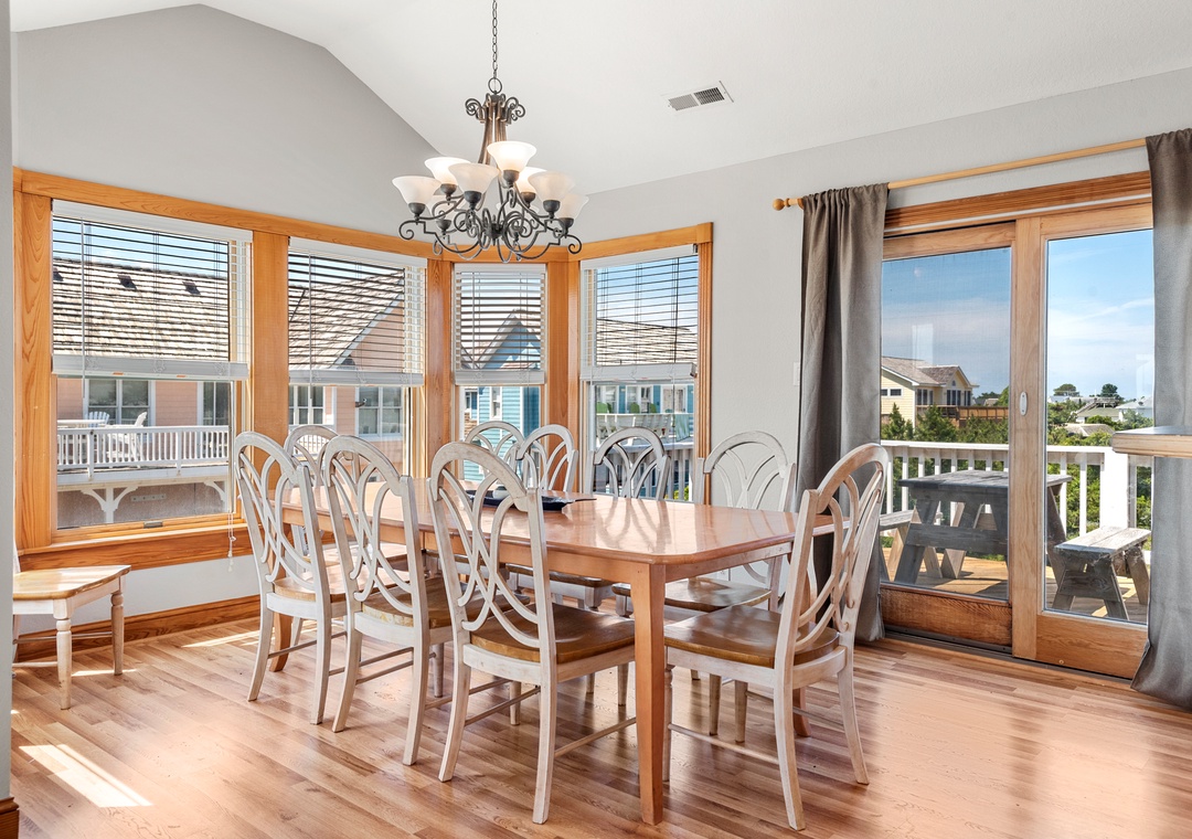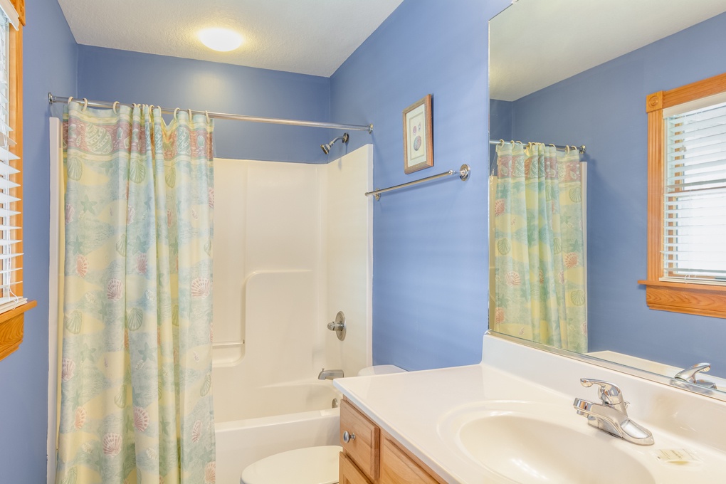 The house is literally RIGHT across the street from public beach access, so it couldn't have been more convenient. From the decks on the front of the house, you can look out and see (and hear) the ocean. The street that it is on, South Virginia Dare Trail (SR-12) is one of the main thoroughfares, but it's not SO busy that you would have to really worry about kids or pets with the traffic. However, there were a couple of mornings that loud vehicles driving down the road woke us up (the weather was perfect weather to have the windows open). Overall, the house is in very good condition. On the ground floor is a rec room with a big screen TV and pool table, that we were not aware was in the house. The pool wasn't open while we were there, so I can't comment about it. The hot tub worked well...I wish it was in a location closer to the house, but it was still nice. Village Realty was great to work with, they were very professional, and their app for use with your smartphone was a very nice touch that I was not expecting. There was no need to go to the rental office, as there's a keyless lock, and they provide your code in the app a couple of days prior to your arrival. For the price, it was hard to beat for an 8 BR / 8.5 BA house that is essentially right on the beach. We may stay i a different town the next time we're in Nag's Head just to try something different, but we would go back to this house, and rent from Village Realty, again in a heartbeat.- Reviewed On: 5/18/2017