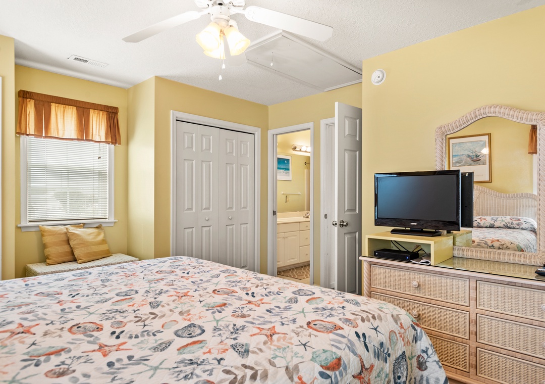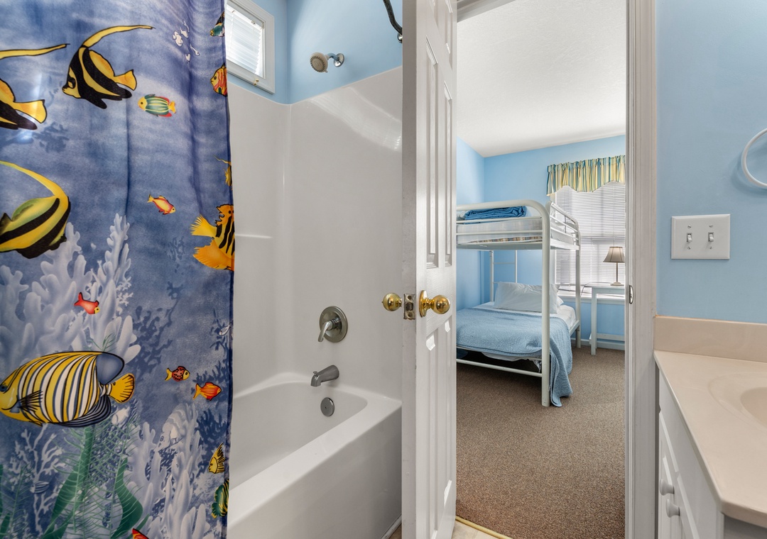 Overall, this location is great. Very close to beach access (cross the road then 3 houses down to beach access). Several restaurants nearby, food lion and harris teeter also very close. All of the bedrooms were of great size (all of them were big enough to have our luggage and a pack-n-play for a 1 year old). The pool and hot tub were great. At first glance we thought the pool was small, but we compared it with the neighbors and it was the same size. A suggestion is to have an outside clock so you can see what time it is. Beds were comfortable, pillows could be better as they were very flat. Suggestion is to have hand towels by the kitchen sink as we had to use the towels that were supposed to be for the bathroom. The kitchen cookware needs updating as some had burnt spots on the pans. The carpets and tile needs to be deep cleaned as walking around in socks they became very dirty/black at the end of the day. There were some items that needed to be fixed as they were broken upon arrival. The door frame to the game room is cracked in multiple places and I think this is due to the door knob turning mechanism not properly working (door knob would be unlocked, but you could not turn to open the door). In the shared bathroom (blue colored bathroom) the toilet paper rod was missing. The sliding door on the outside the door handle was broken and on the ground. The sliding door tracks on the bottom had mold and water in them (as it has been raining there during our stay). The 2nd floor deck gate hinges appeared to be rusted and the gate was not attached. These were all very minor things that needed to be fixed or suggestions to make this place even better! We enjoyed our time and would stay here again in the future.- Reviewed On: 5/1/2023
