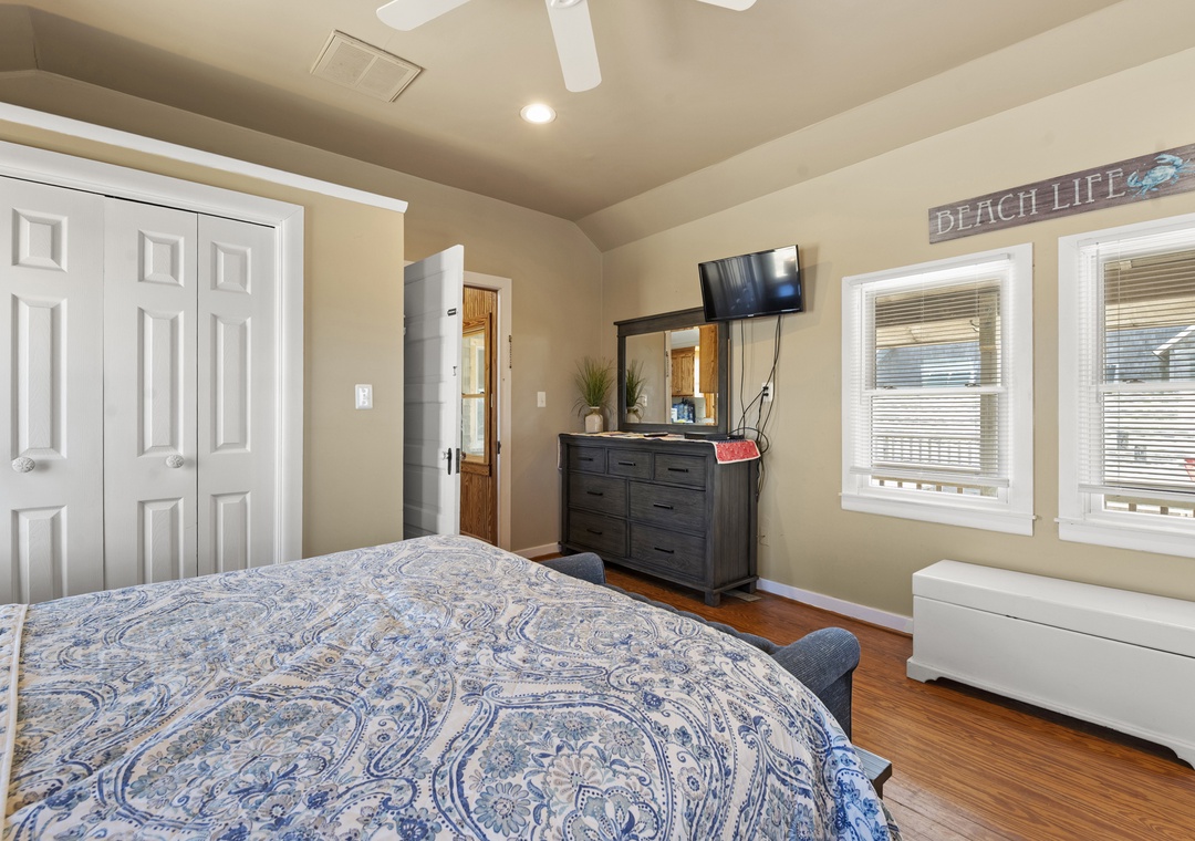 It's Beach Time—those are the words you've been waiting to hear! This beautiful, historic home located in the Historic Loop of Nags Head has all the old charm of days gone by, paired with all the modern conveniences of today. Enjoy wide porches and decks complete with rocking chairs, along with your own private walkway to the beach. If work calls while you are here, imagine sitting in your little office by the sea with your laptop, gazing at the ocean and beach. Life doesn't get much better than that! There’s plenty of room for everyone to gather for delicious meals, movie nights, or simply chatting and creating those unforgettable OBX memories.