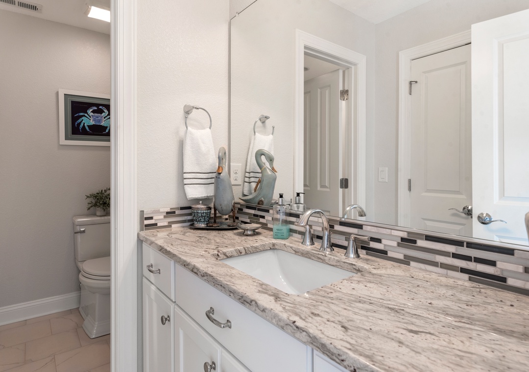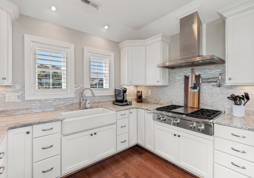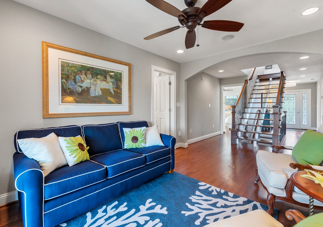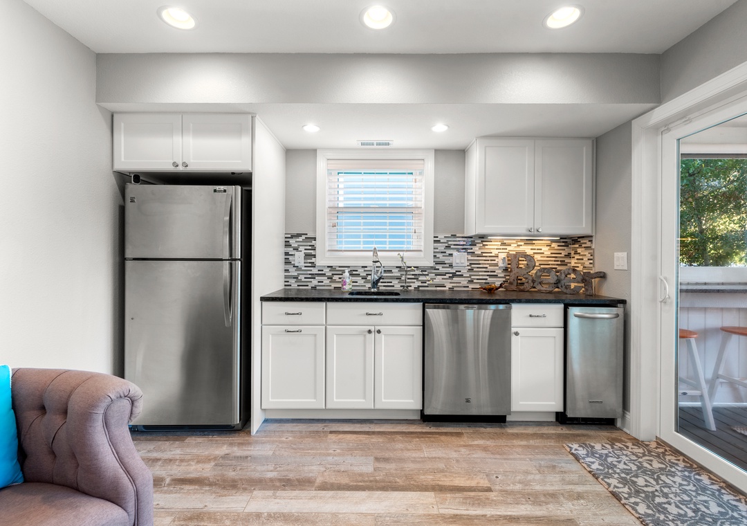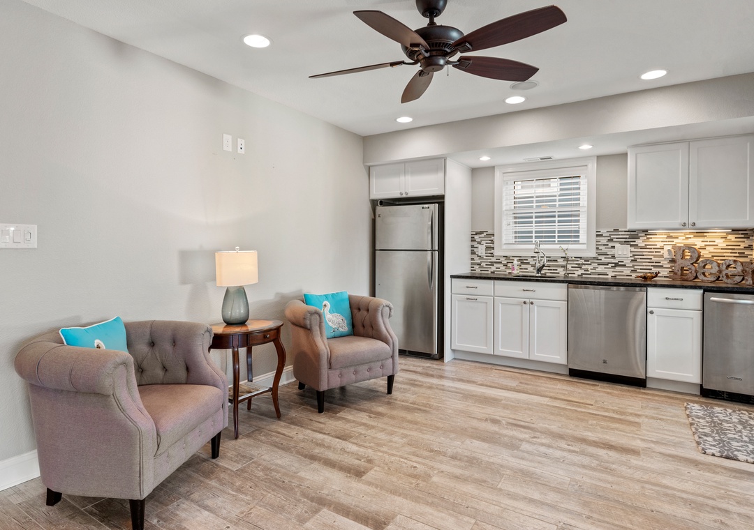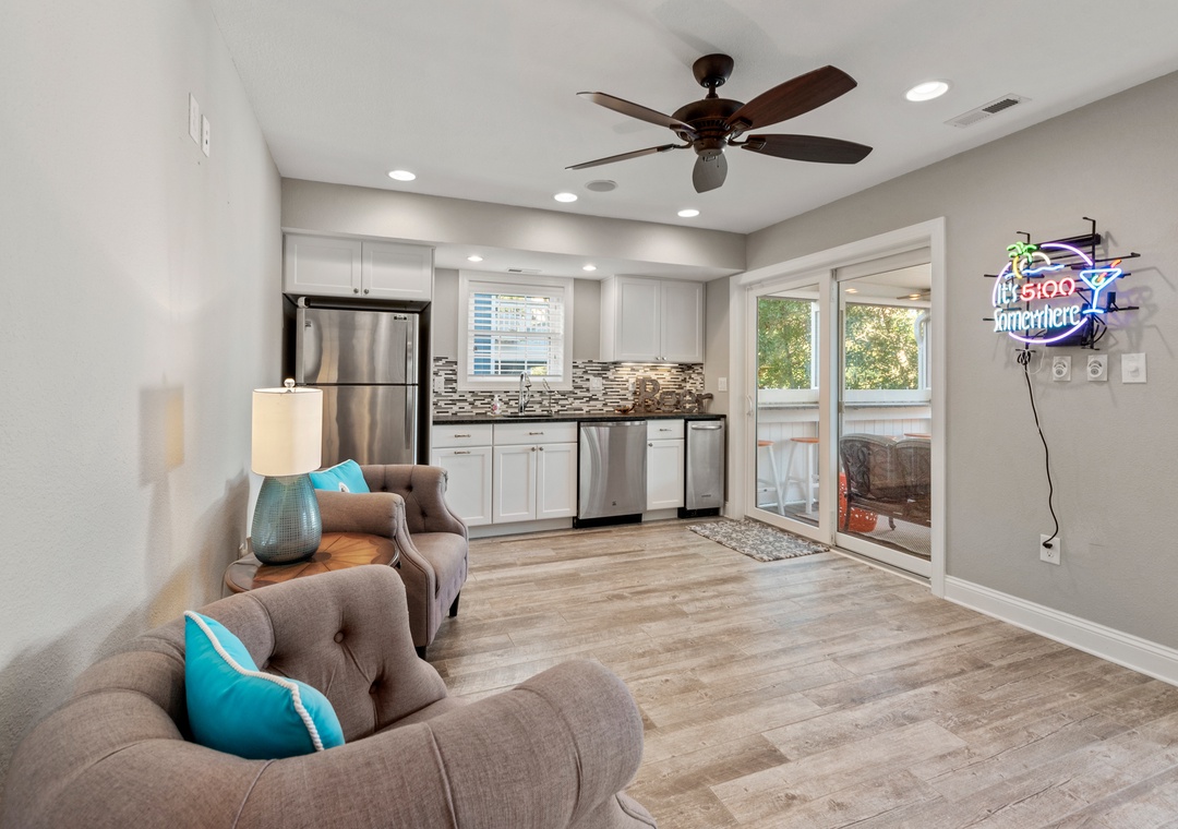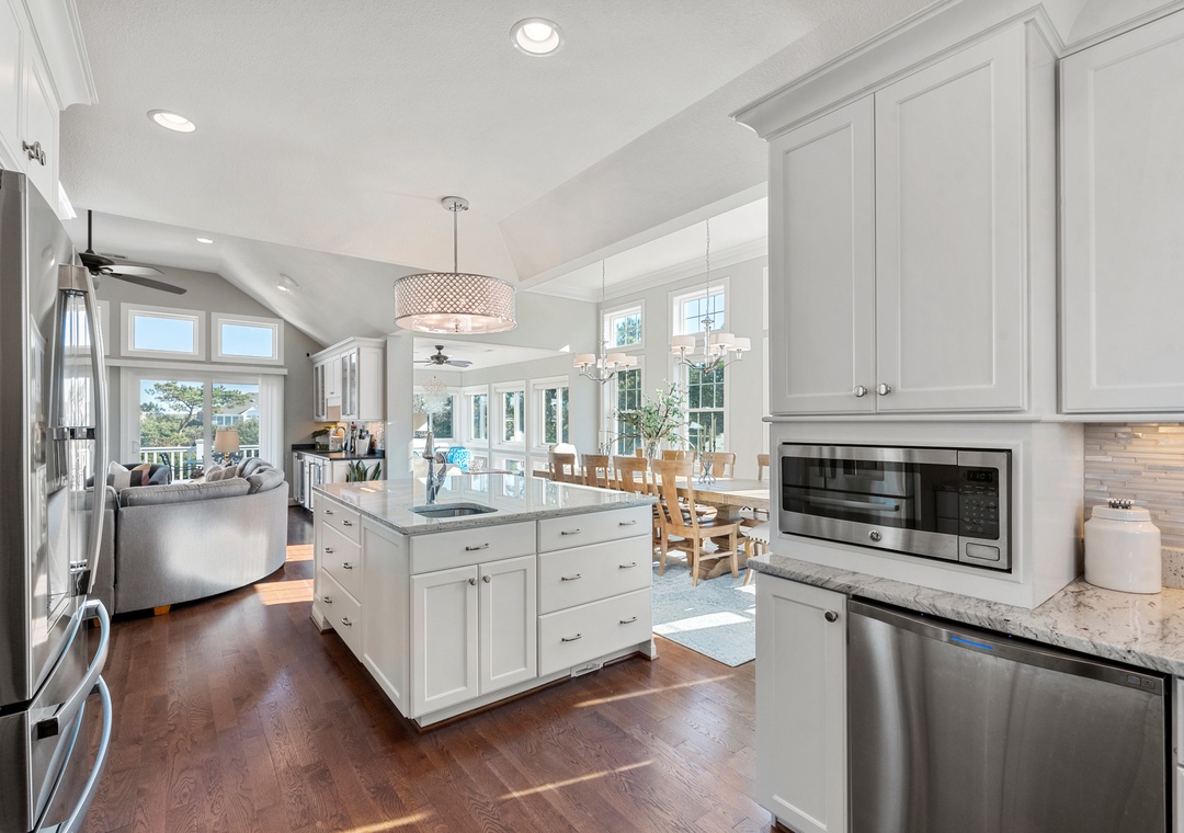 From the central location and proximity to the beach, to the chef's kitchen and the backyard oasis, Beach Haven will take your vacation experience to the next level. Built in 2015 and meticulously maintained, this luxurious home looks and feels like a new construction. You'll find upscale finishes everywhere you turn, including gorgeous hardwood floors and LVP throughout - no carpet in this house! After a day at the beach, come home and gather in the open-concept great room while getting dinner started in the kitchen that has it all. Meal prep has never been easier with a double wall oven (one of which is a steam oven), gas cooktop, and even a warming drawer. For your morning cup of joe, use the Keurig or brew an entire pot with the standard coffee maker. The granite countertops, farmhouse sink and large island with bar seating check all the remaining boxes on your dream kitchen wish list. The wow-factor continues outside to the beautifully landscaped and fenced-in yard. Take a refreshing dip in the saltwater pool or a relaxing soak in the hot tub - or both! There's also a tiki bar with refrigerator, because you're on vacation and it's 5 o'clock somewhere.