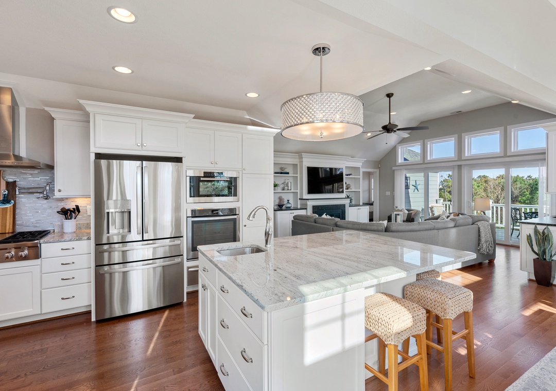 Our family LOVED this house. Well appointed kitchen, beautifully landscaped, very tasteful interior decorating all combined to make this one of the most beautiful OBX homes we have ever rented. We loved that it was 4 King master bedrooms because our family has a lot of couples who need their own space. We always love returning to this neighborhood due to its convenience and charm. This home is the loveliest home we have found in this development. Kids and adults could walk to the beach, and it was also easy to find parking most days. If you cannot find beach parking you can drop off all the boards and coolers at the beach, return the vehicle to the driveway at the house and then quickly walk to join everyone at the beach. The pool and hot tub and back yard were very beautiful and the kids had daily pool parties before and after the beach. The adults loved sitting out by the Tiki Bar in the evening and enjoying each others company. The kitchen was very well equipped and we prepared a bunch of wonderful family dinners during our stay. This home is meticulously kept up by the owners. Village Realty is always very responsive if we have issues, but this year we didn’t need to reach out to them at all because the house was so perfect!- Reviewed On: 9/1/2023