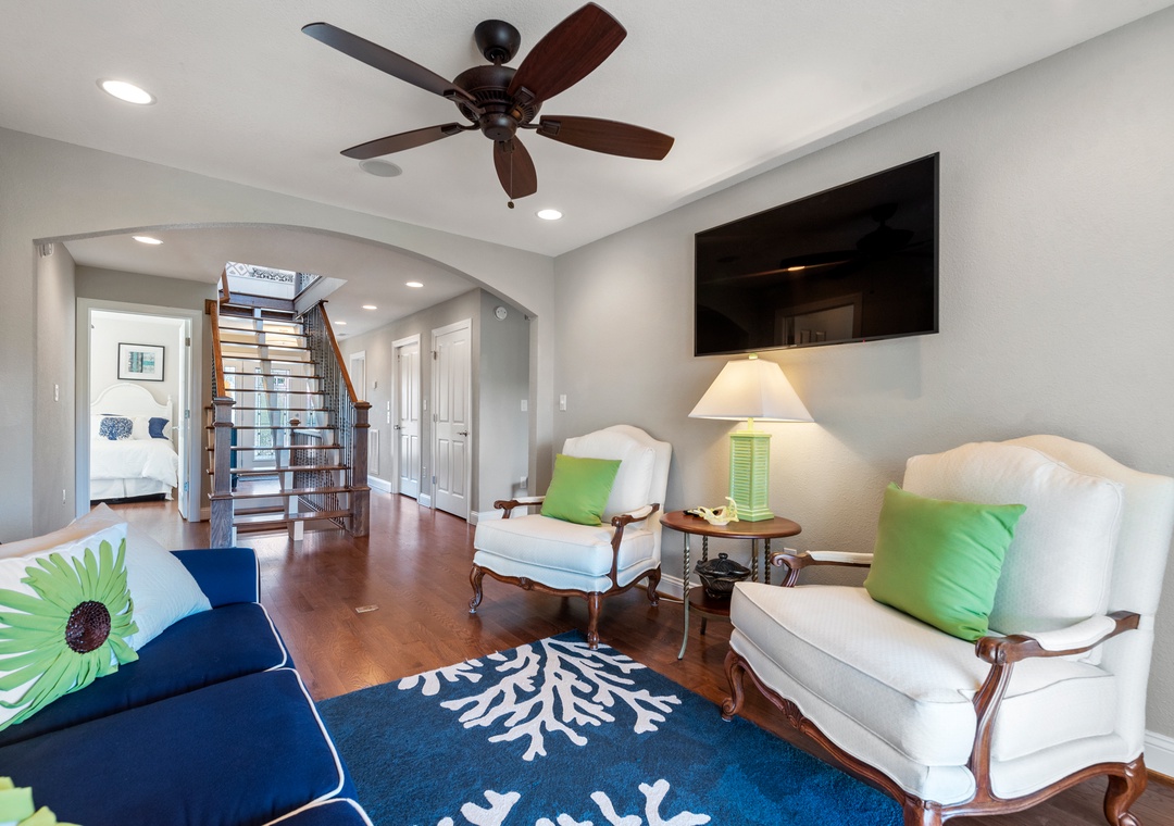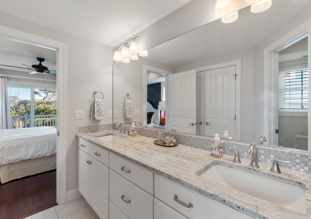 With over 3,600 square feet of living space, Beach Haven can easily accommodate multiple or extended families. All five bedrooms include ensuite baths for plenty of privacy. Between the main living area, den and rec room, there's no shortage of space to hang out and make memories. A kitchenette on the ground level is perfect for convenient drinks and snacks without having to go upstairs, and includes a second full-size refrigerator. Beach Haven is equipped with an elevator, ideal for guests with mobility issues. Skip the stairs and use it to send luggage and groceries to the upper levels.