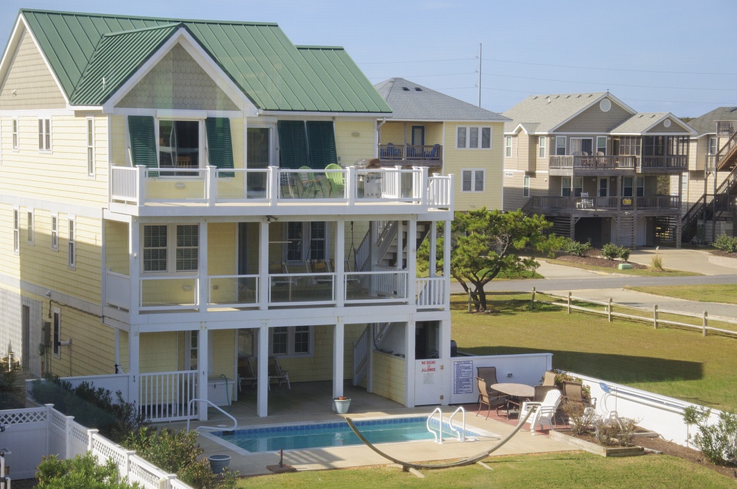 If you're ready to put your Heels In The Sand then look no further! This beautiful four bedroom home located on the oceanside has all the amenities for you to relax and unwind. Your own private pool, rec room with a foosball table and an elevator. Plenty of room for everyone to make those great OBX memories. Close to great restaurants, shopping, and many family-friendly activities and just a quick walk to the beach.