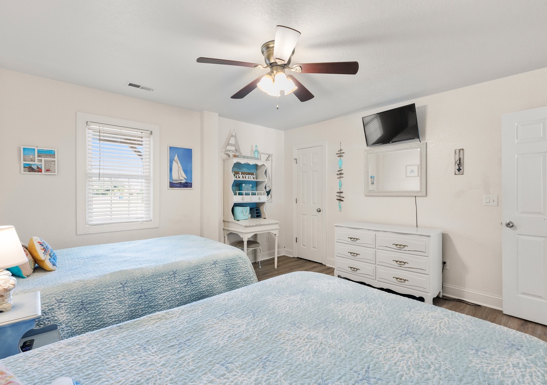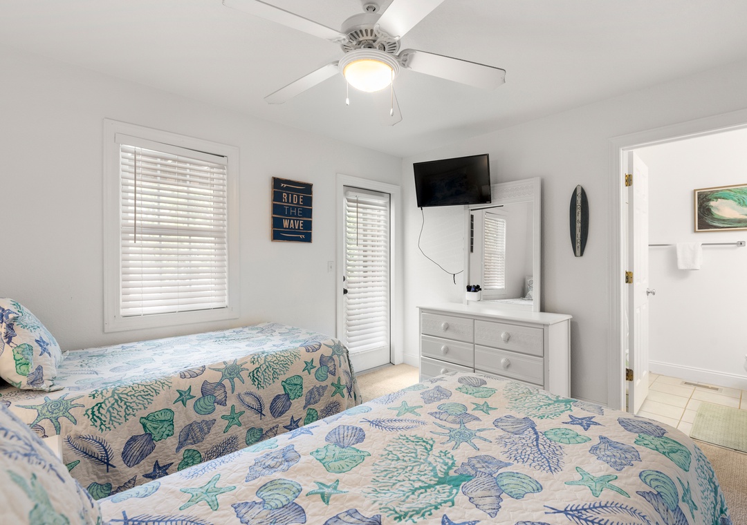 As you make your way onto the middle level, you'll find a delightful array of accommodations designed for comfort and relaxation that include 2 king ensuite bedrooms, queen ensuite bedroom and an ensuite bedroom with 2 twin beds. All these rooms feature a TV for your entertainment, and direct access to the deck, where you can enjoy the fresh ocean breeze.