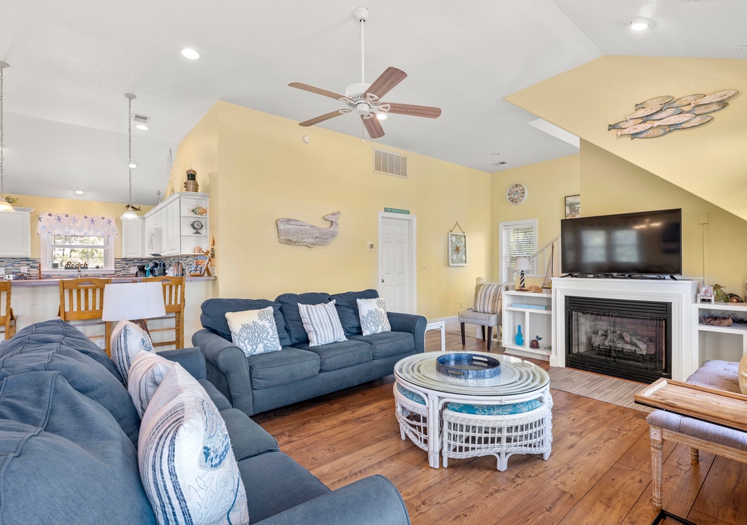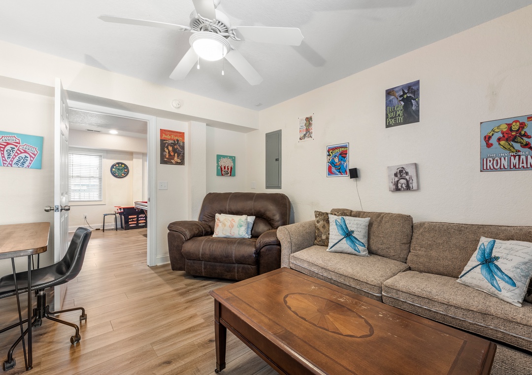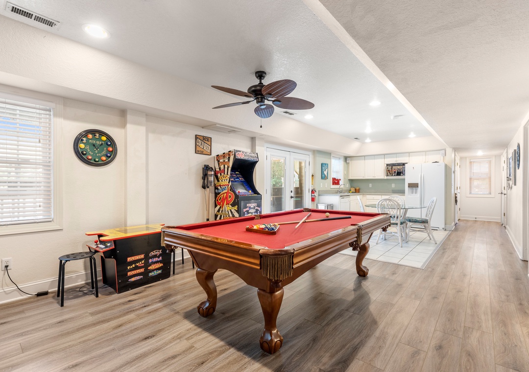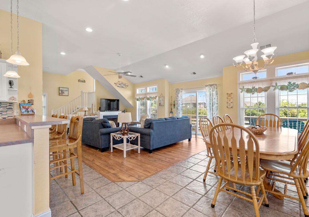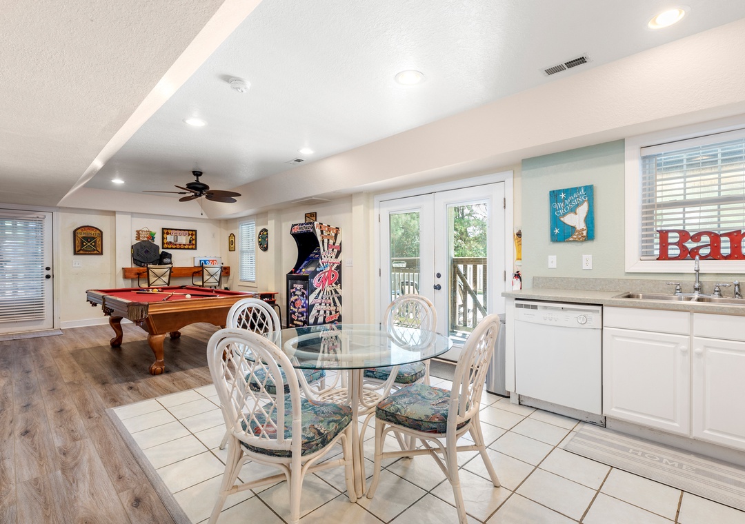 Let's not forget the outdoor area! Take a refreshing dip in your own private pool, perfect for cooling off on warm days, or unwind and relax in the hot tub, letting the soothing bubbles melt your stress away. The ground level of 'Livin' the Dream' is designed to keep everyone entertained and comfortable, making it the perfect spot for creating lasting vacation memories.