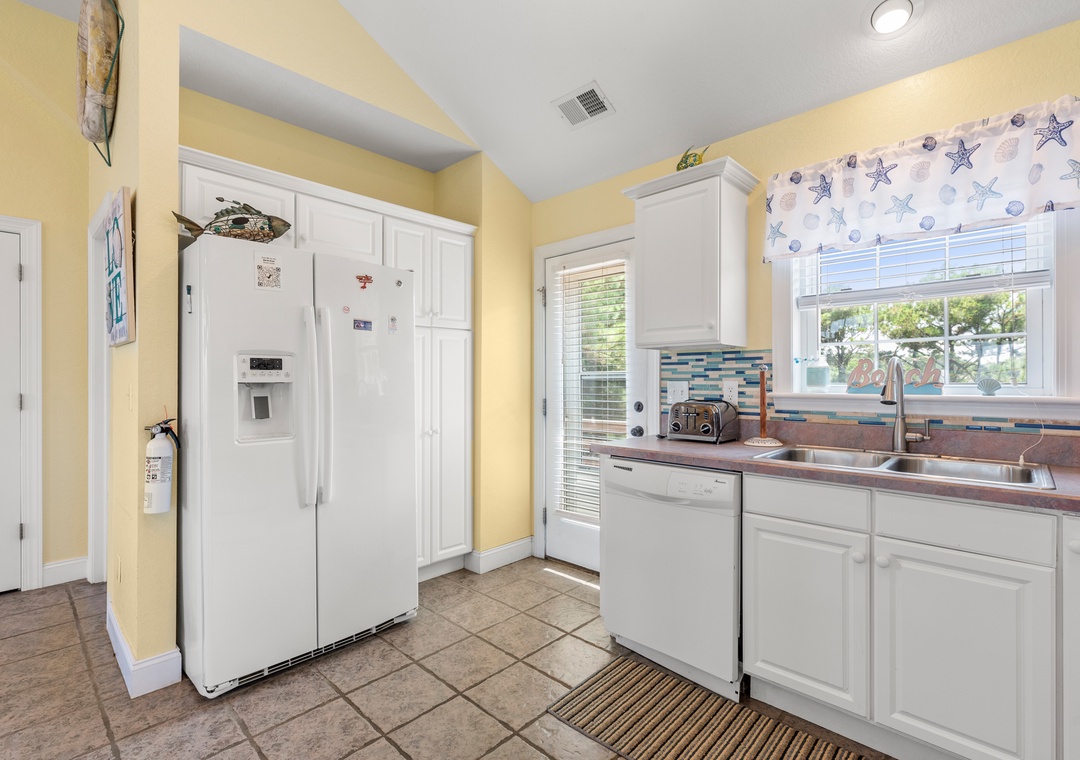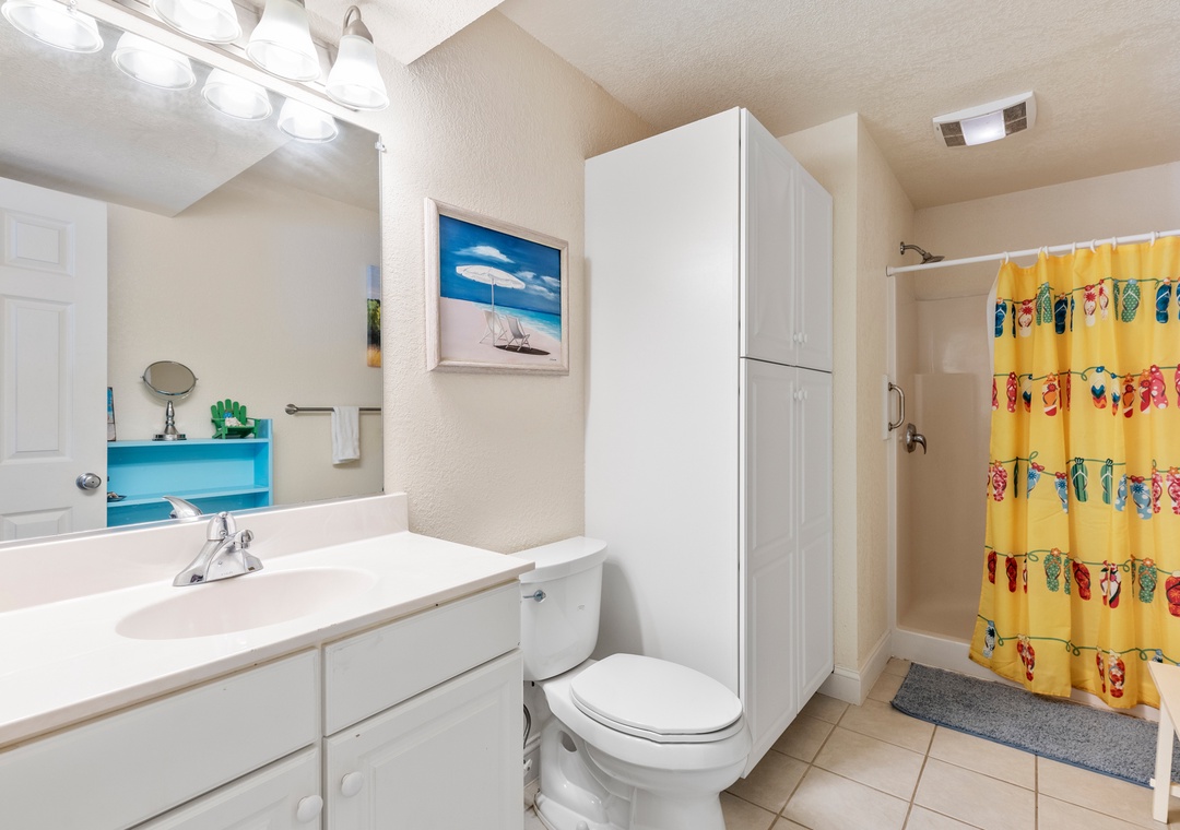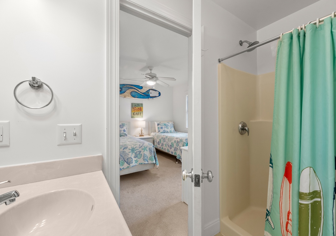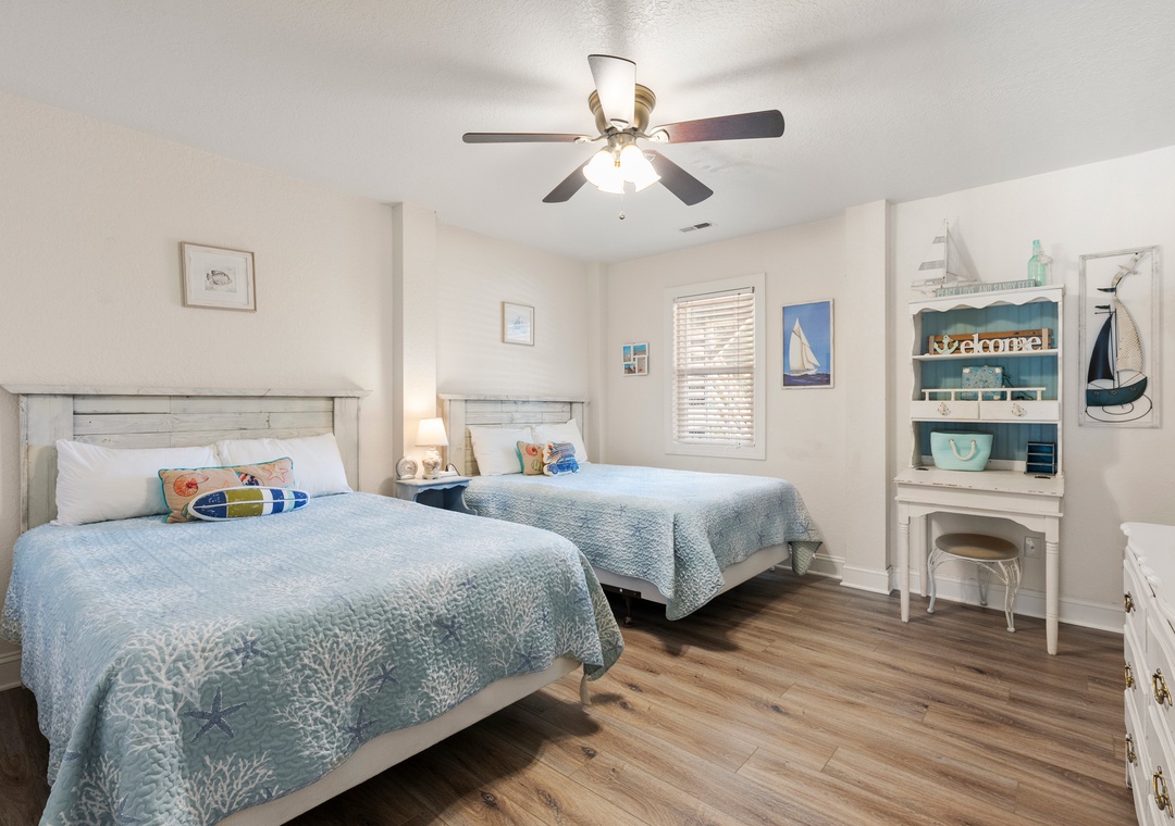Conveniently located on this level, the full kitchen is equipped for preparing snacks and meals without having to go upstairs. Make use of the bedroom with two double beds, providing ample sleeping space, and a full hall bath for added convenience.