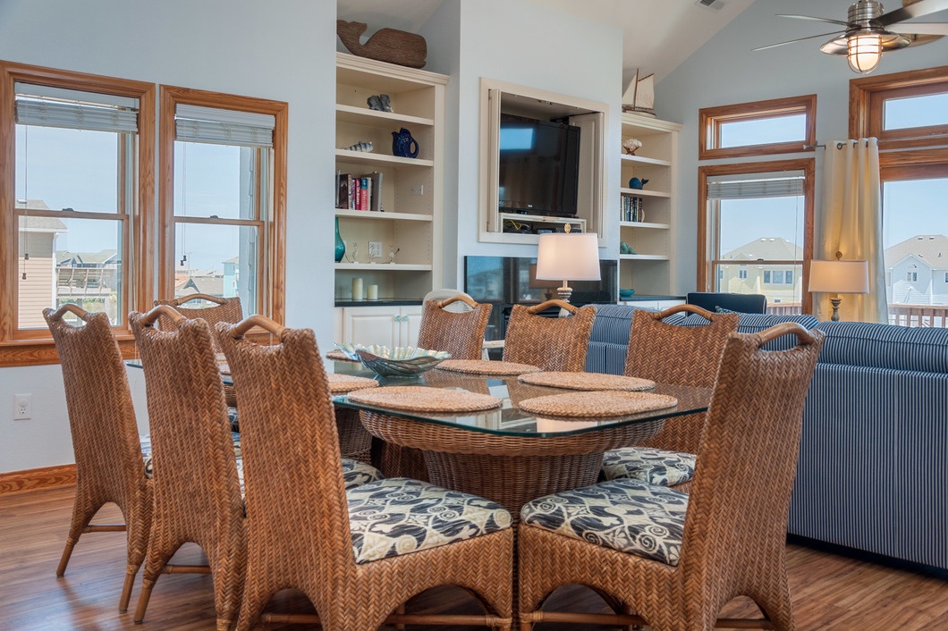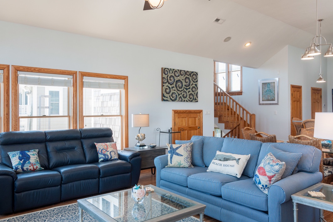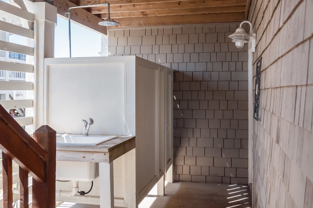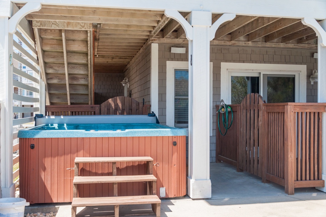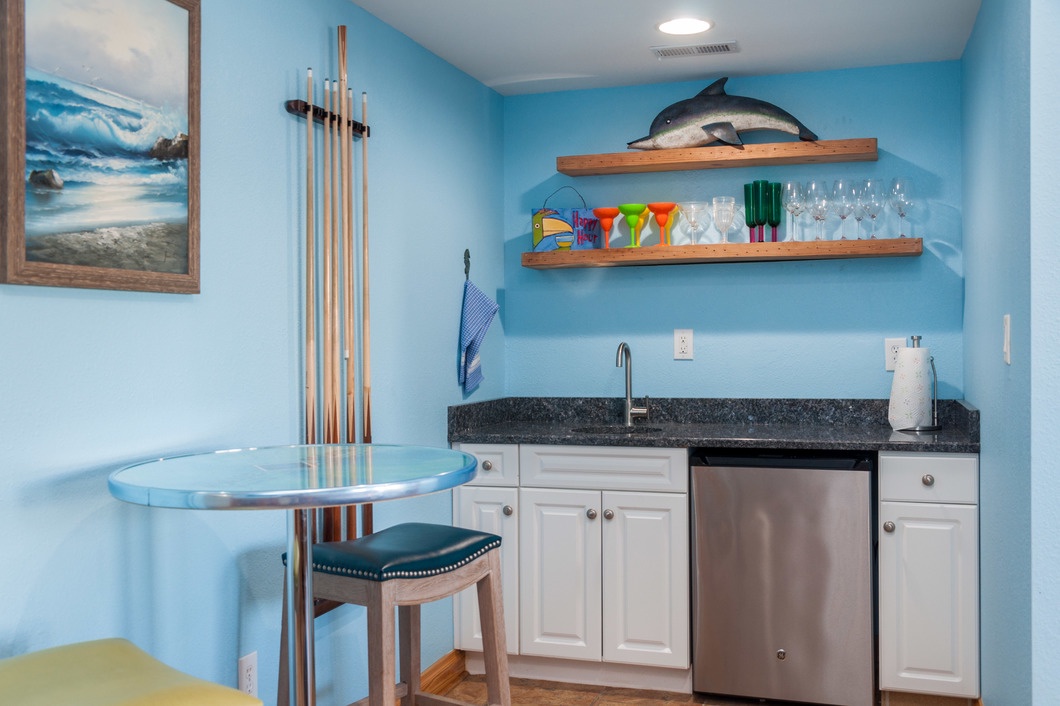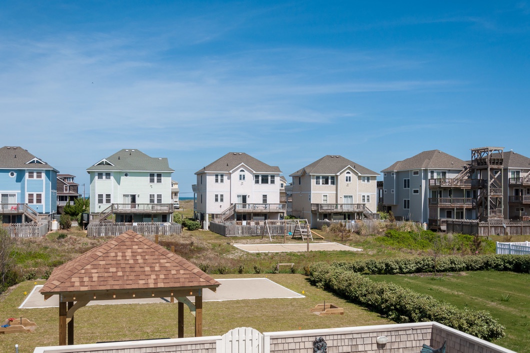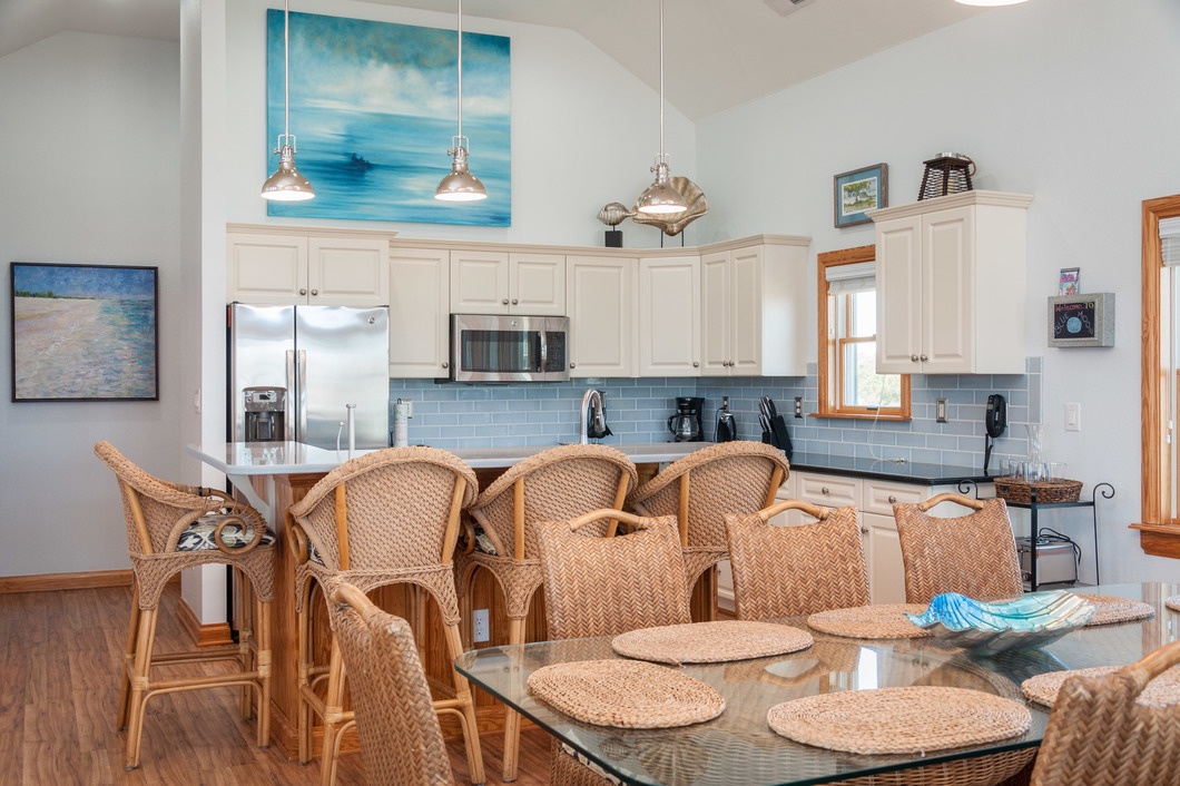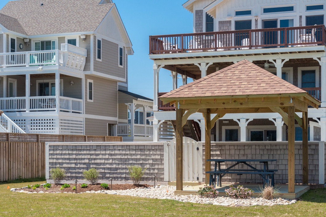 Don't pack your car with all those odds and ends! Other extras include a high chair, fish cleaning table, grill, outdoor shower, plenty of seating around the pool, and many others. Kids and adults will love all the amenities in this house. This home is between the roads and guests will cross the 2-lane Beach Road to access the ocean.
