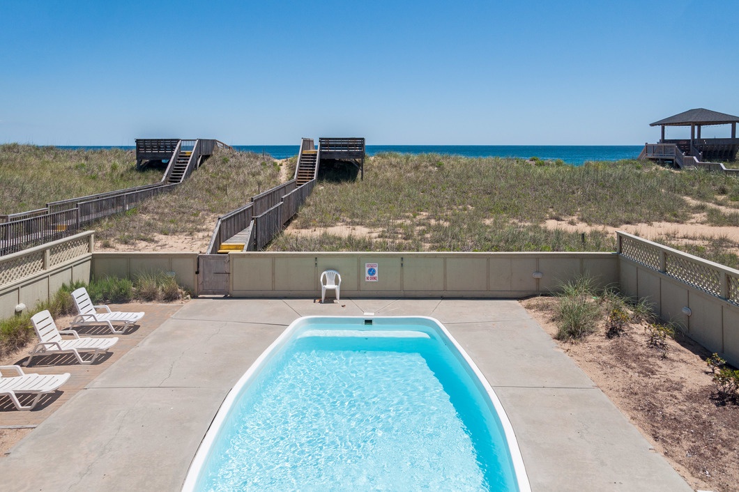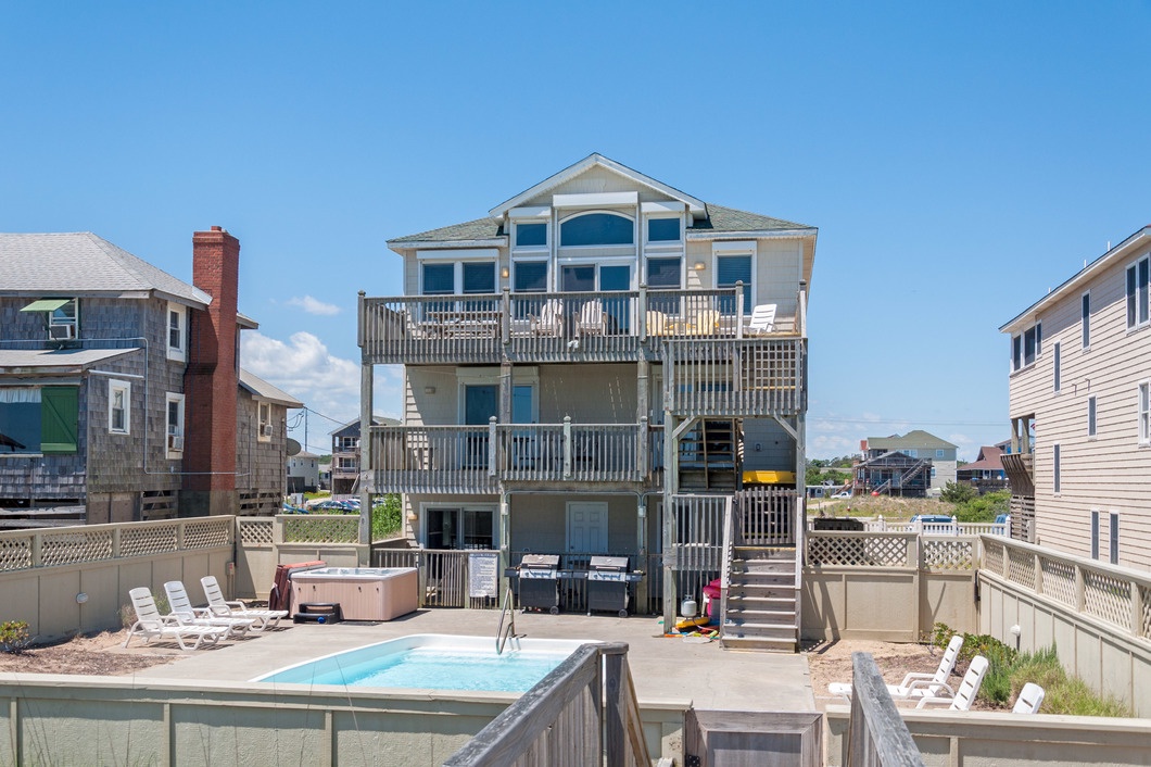 For days best spent indoors, the game room invites hours of fun with a pool table, foosball table and shuffleboard. Just beyond the game room, the theater room offers eating for cozy movie nights with your favorite films. When morning arrives, start your day with coffee on the upper deck as the sun rises over the waves. In the afternoon, lounge by the private pool or stroll down your boardwalk to the beach for a splash in the surf. After a sun-soaked day, rinse off in the outdoor shower and wind down with a soak in the hot tub under the stars.