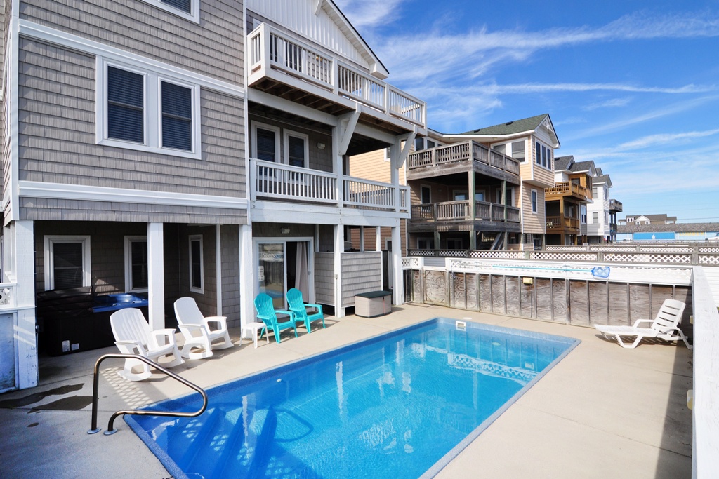 Oceanside in Kill Devil Hills with private pool, hot tub, recreation room, four bedrooms and five and a half baths, Sweet Home Carolina is a spacious three-story home just perfect for your next Outer Banks vacation!